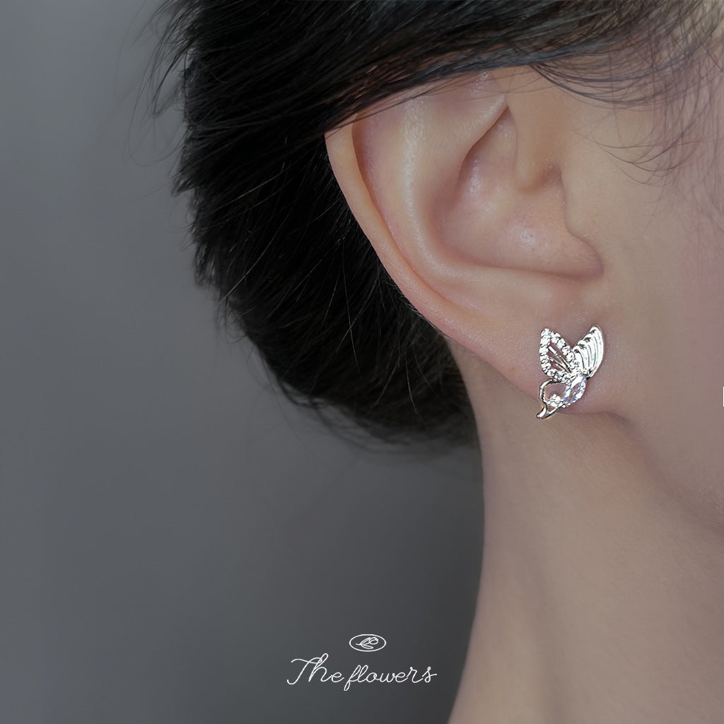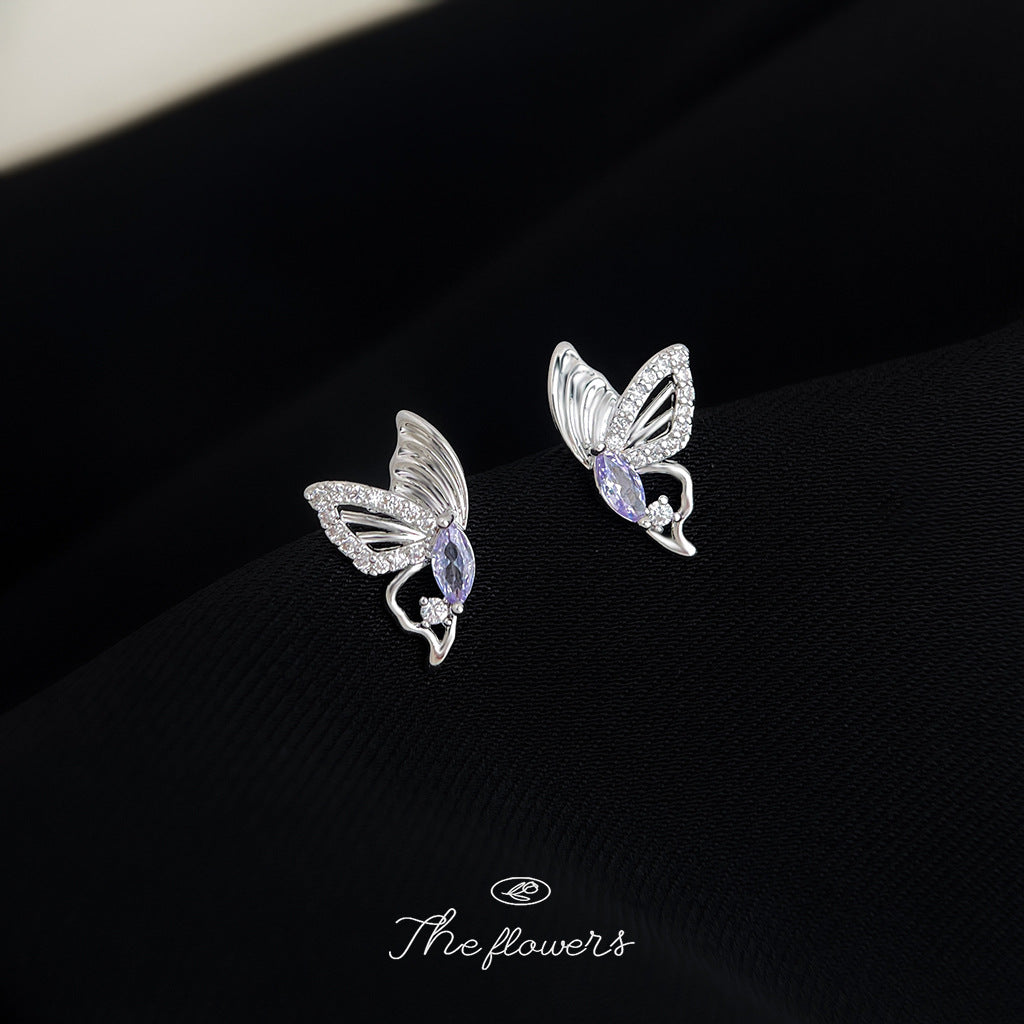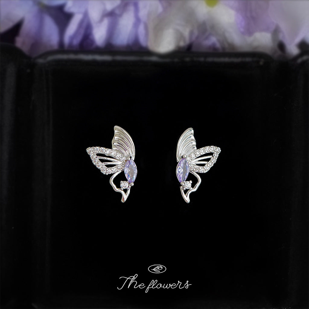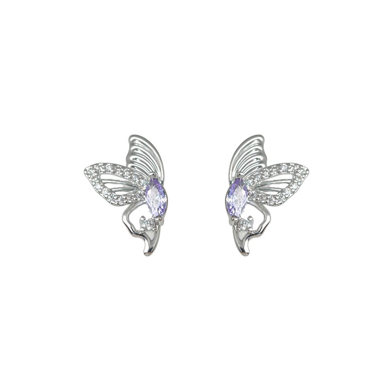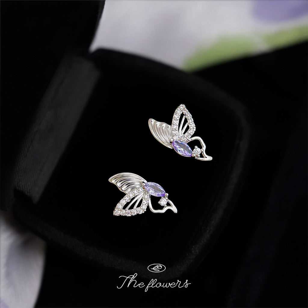 C廠【6809】蝴蝶~原創設計微鑲鋯石925銀針紫色甜美簡約高級感氣質優雅耳飾耳環 25.09-3