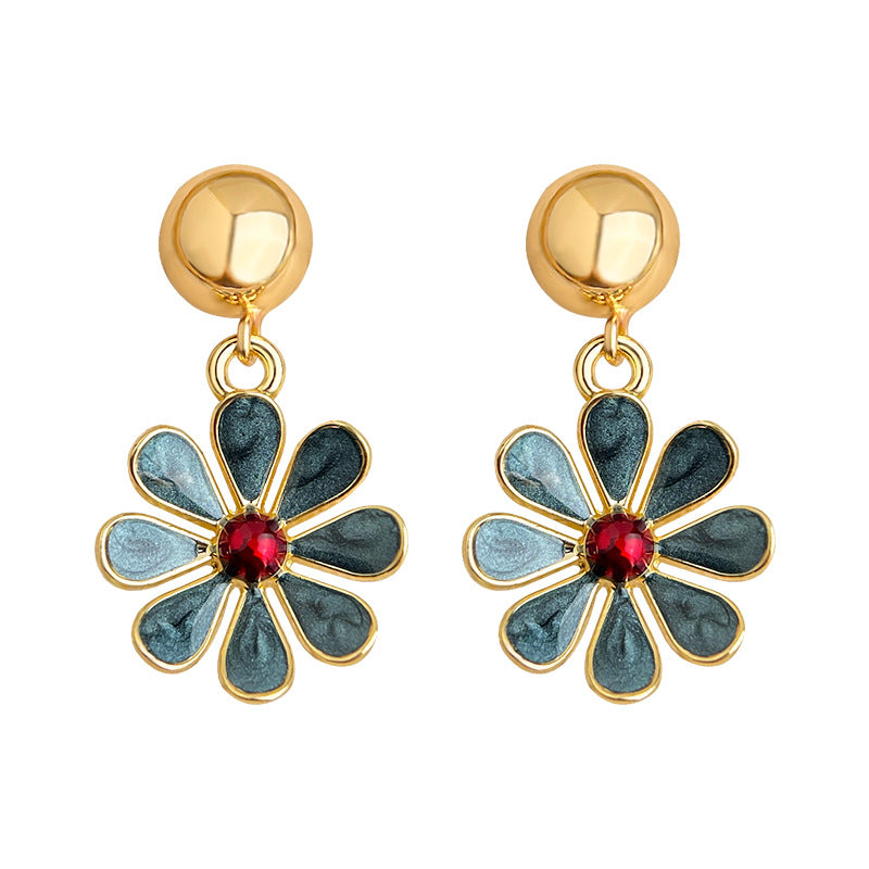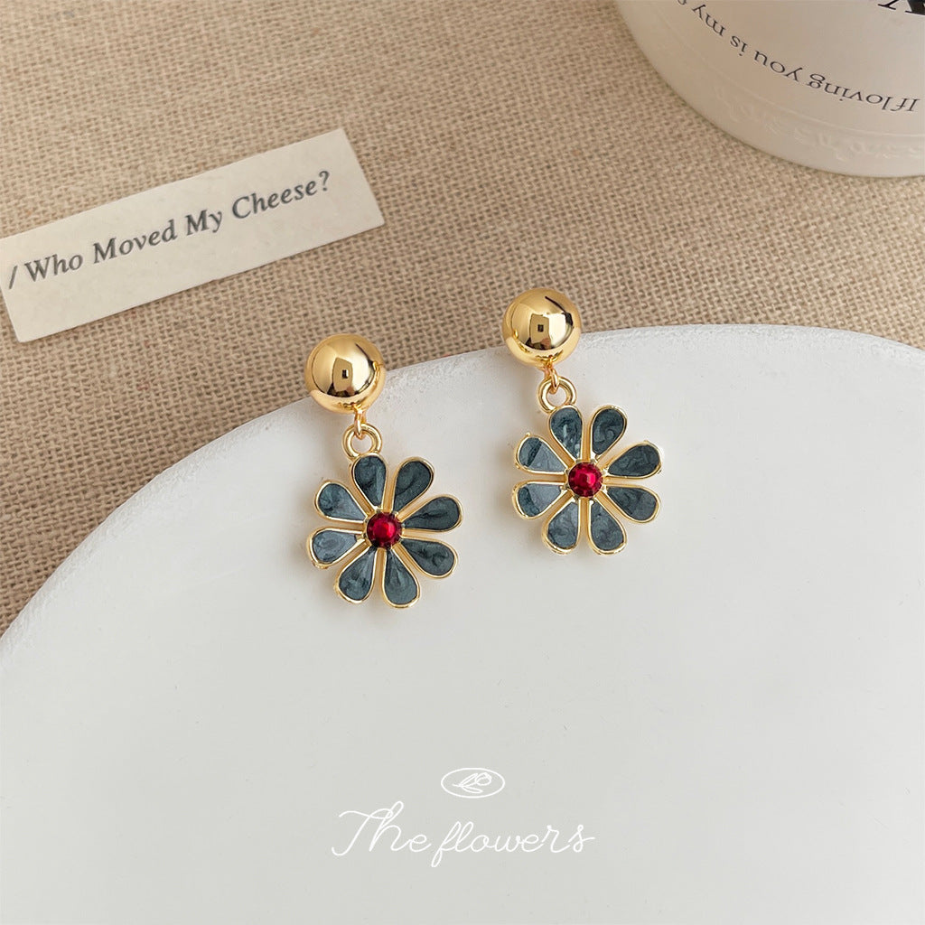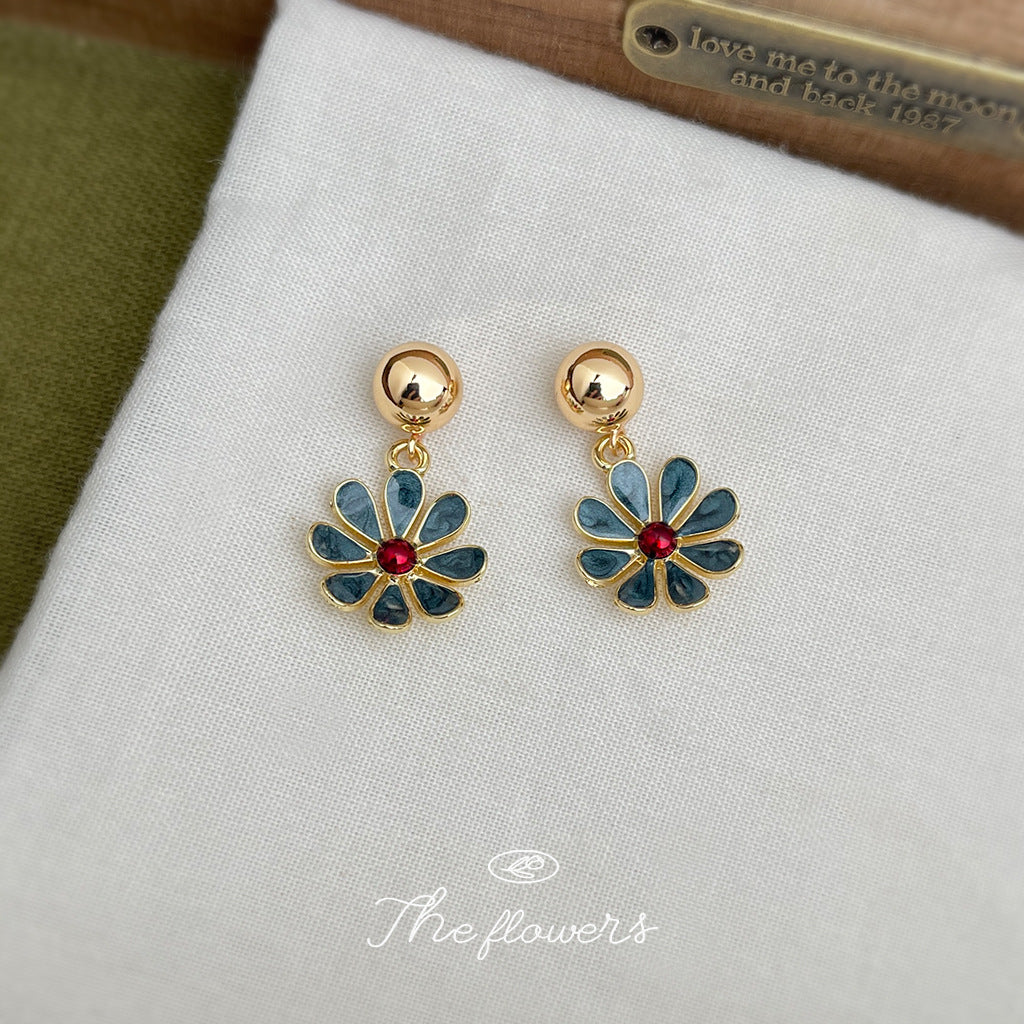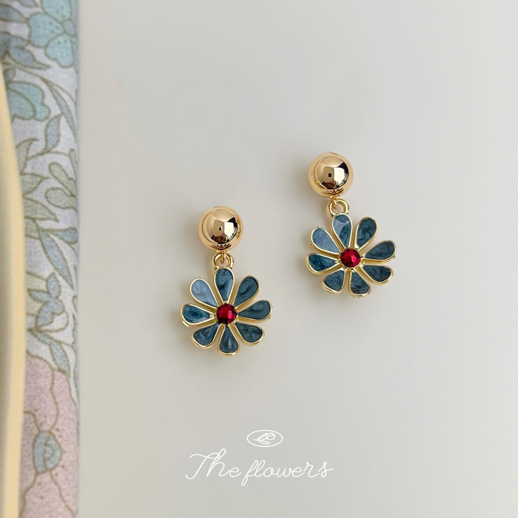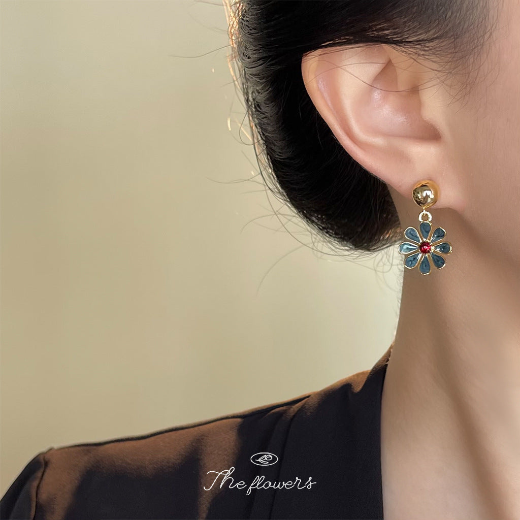 C廠【6815】秋冬款霧霾藍氣質簡約高級感花耳環時尚通勤彩繪滴釉花瓣耳環女 25.09-4