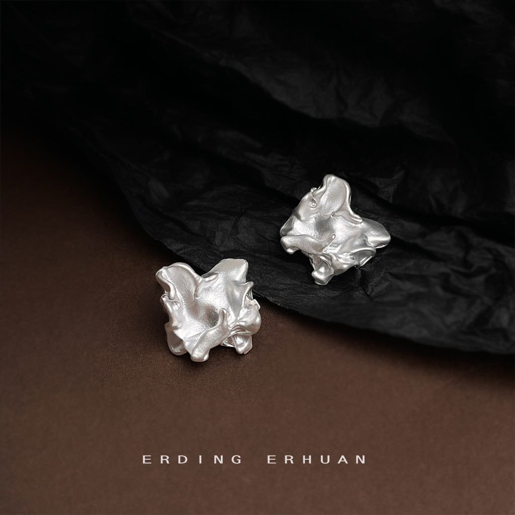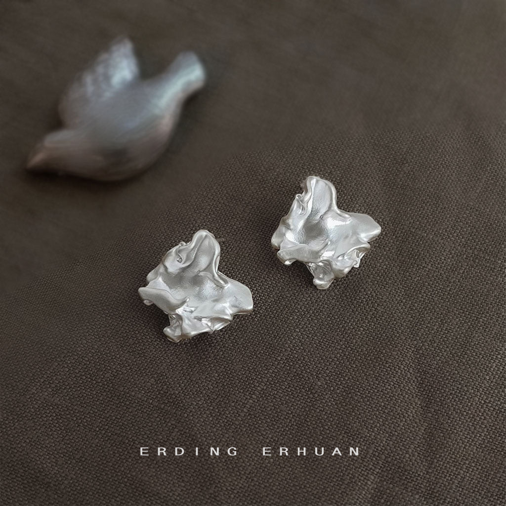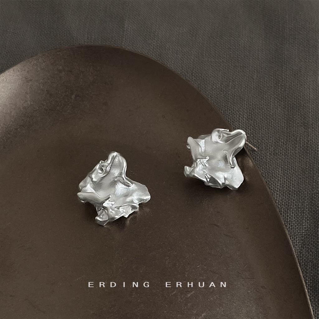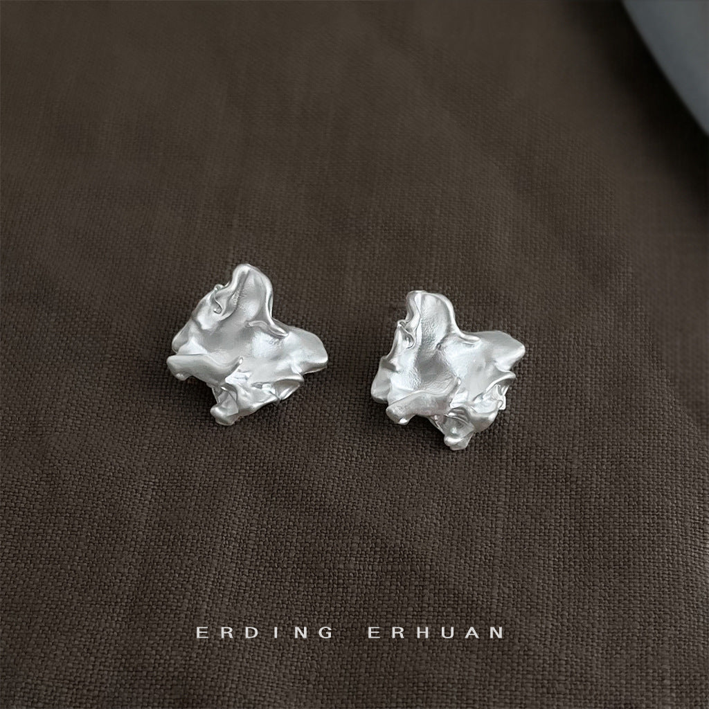 C廠【6832】不規則異形霧面氣質時尚高級感銀針幾何液態耳飾新款銀針耳環 25.09-4