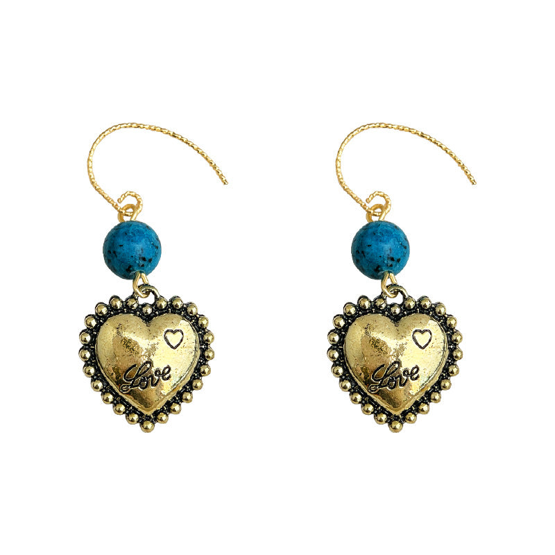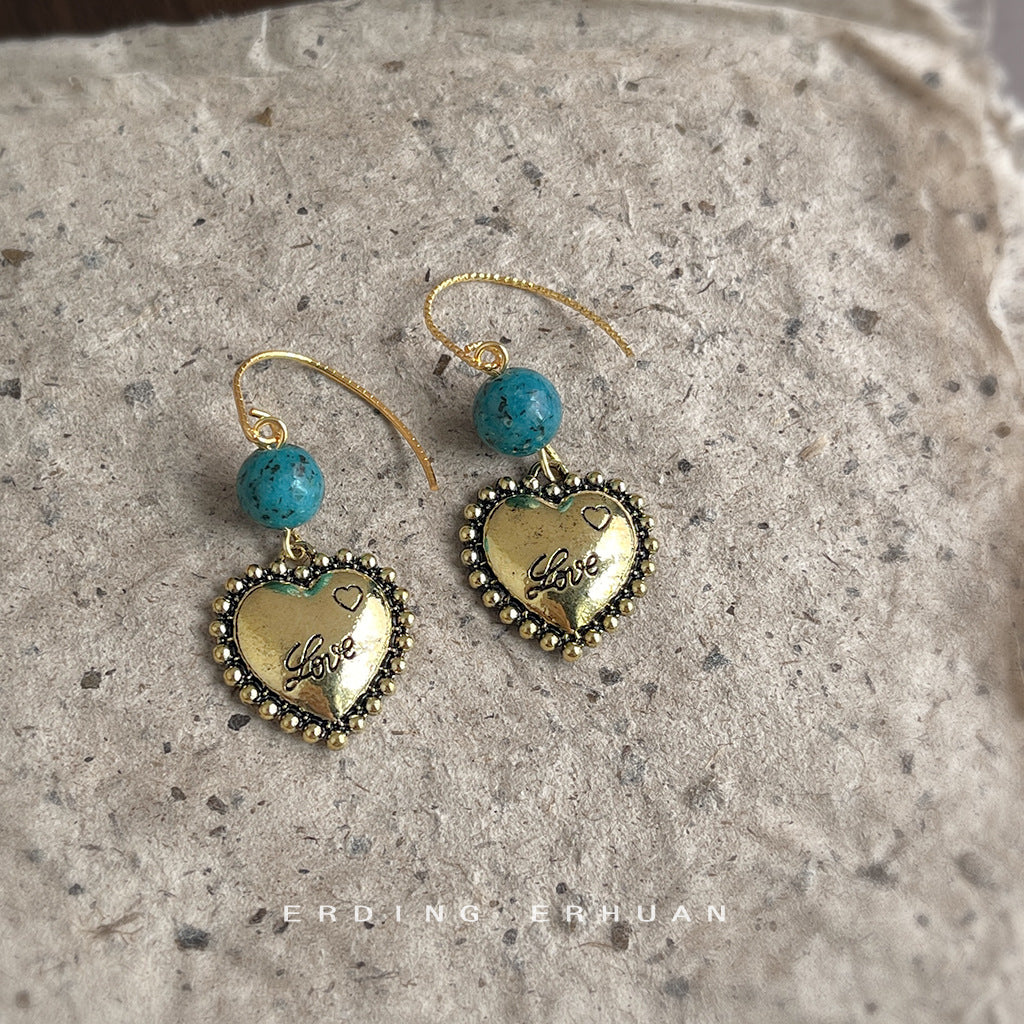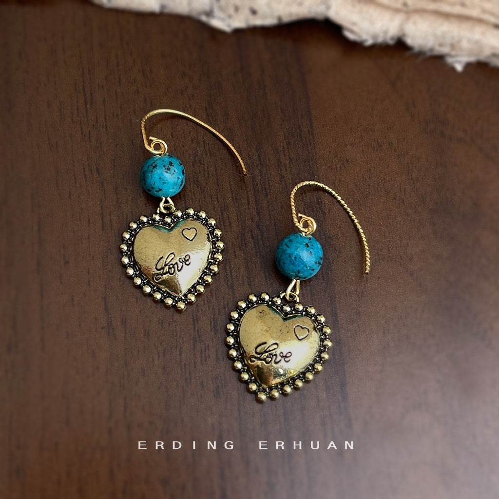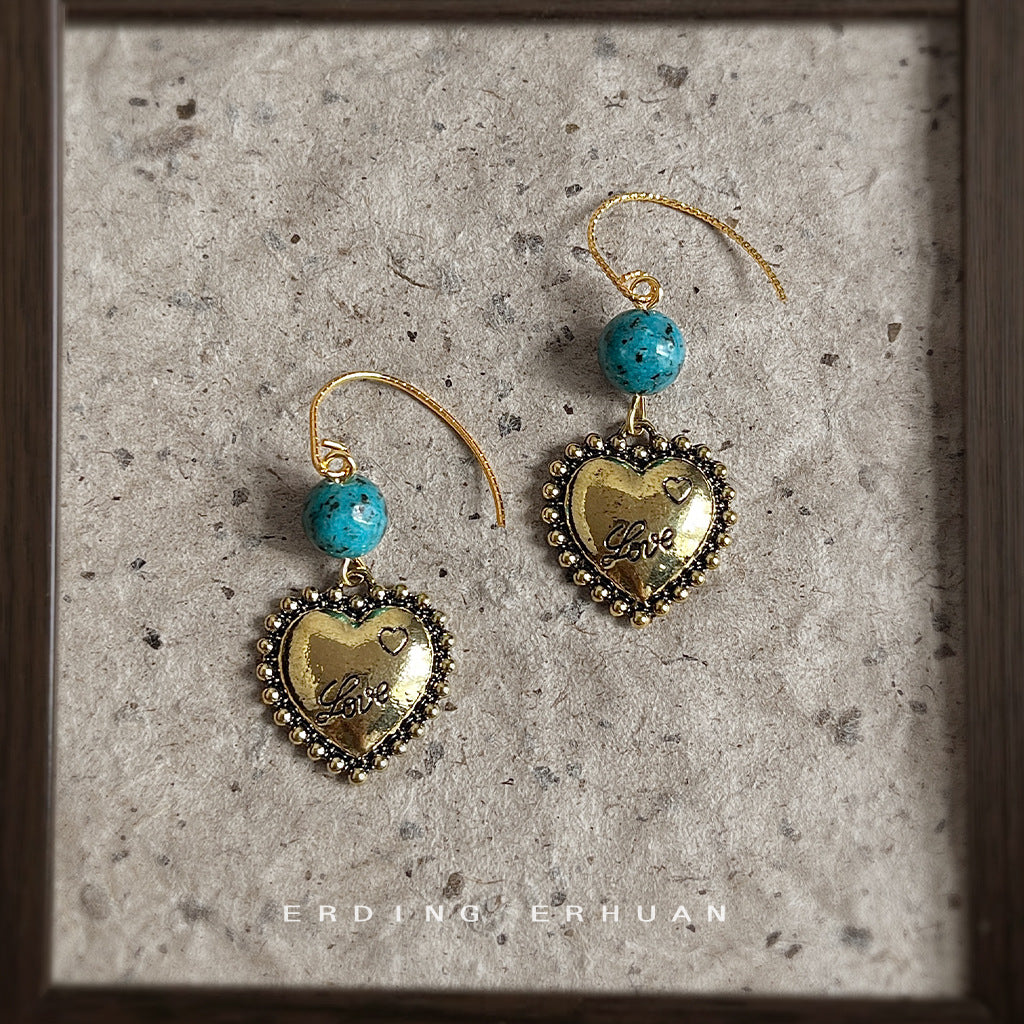 C廠【6838】文藝復古民族風手工藝設計感抹黑電鍍手工愛心耳環新中式耳飾女 25.09-4