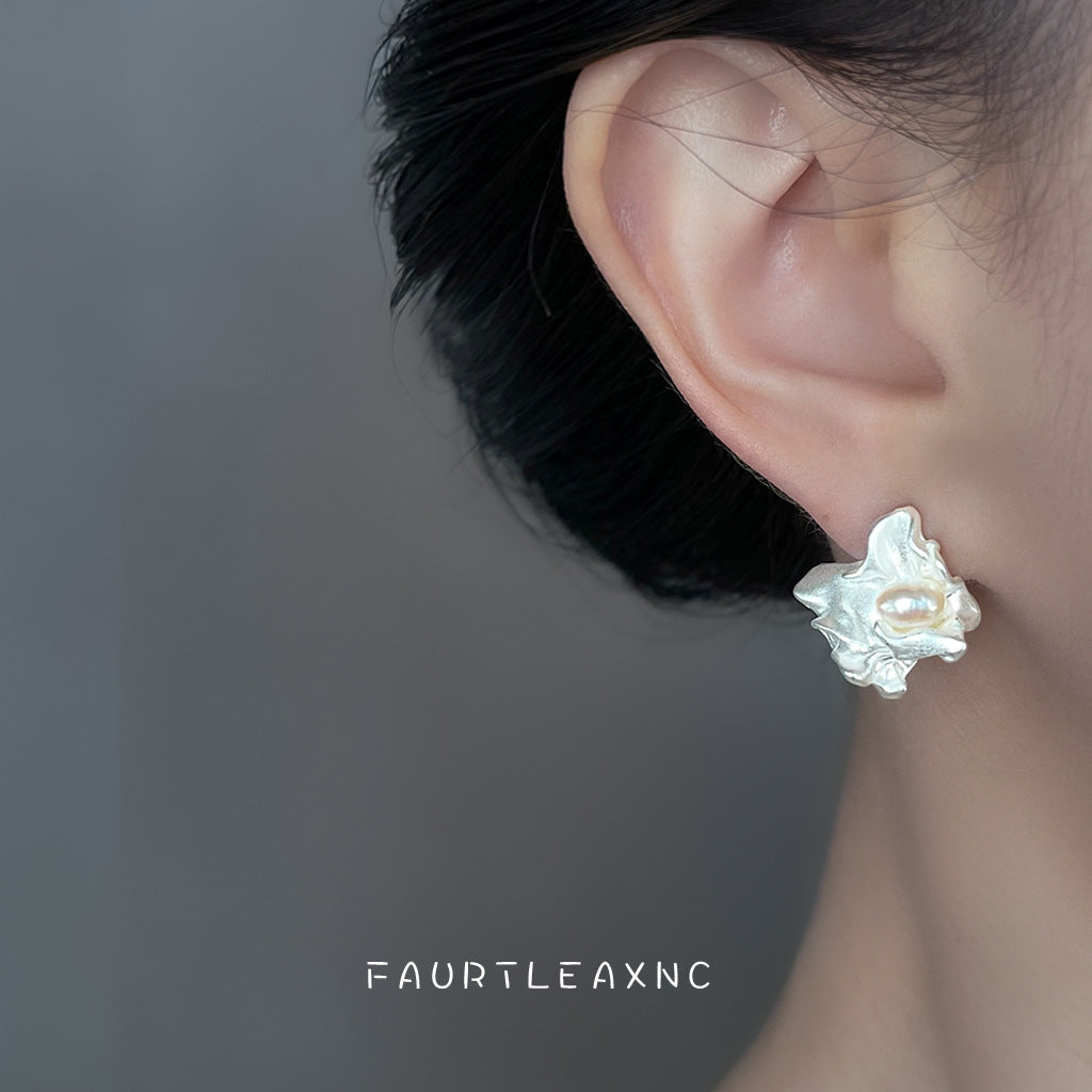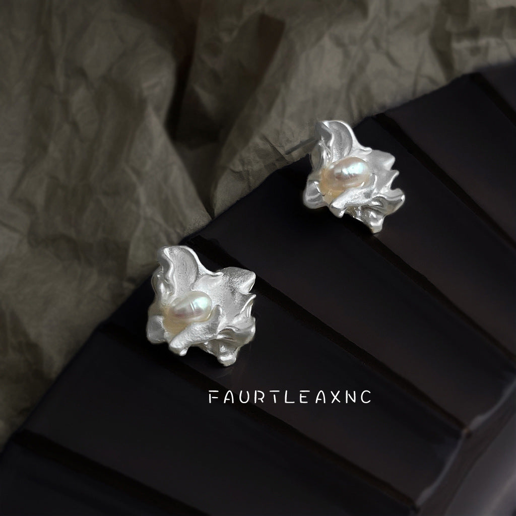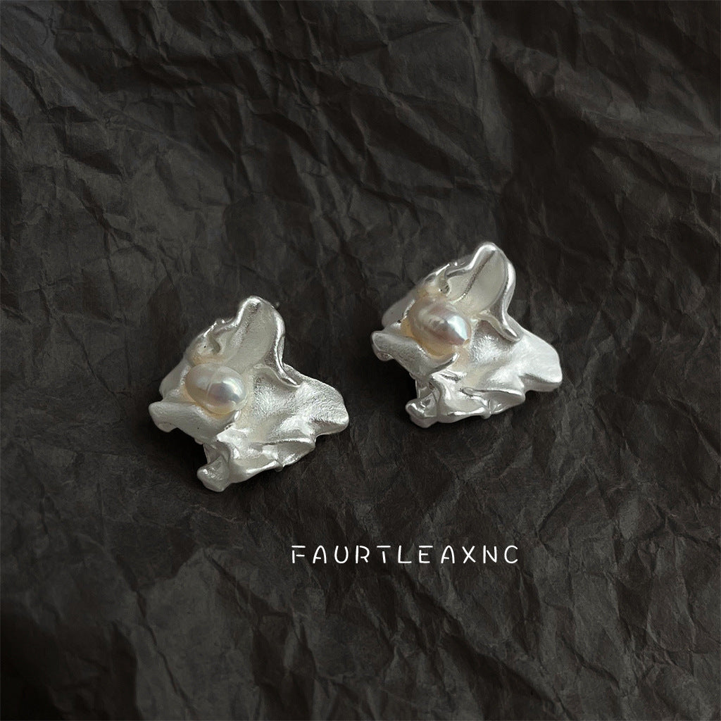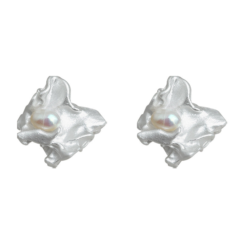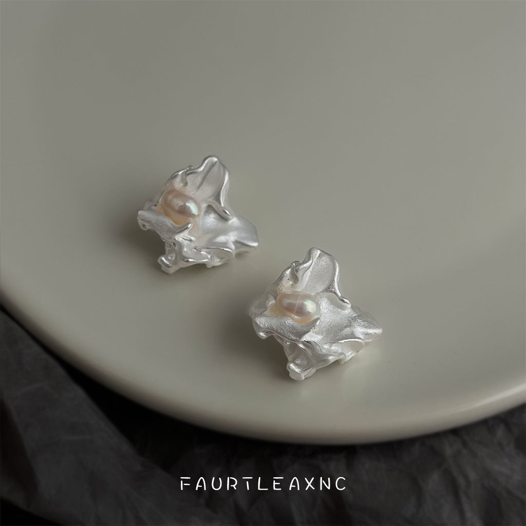 C廠【6852】煙雨小眾設計誇張不規則淡水珍珠液態銀色個性新款耳環耳環女 25.10-3
