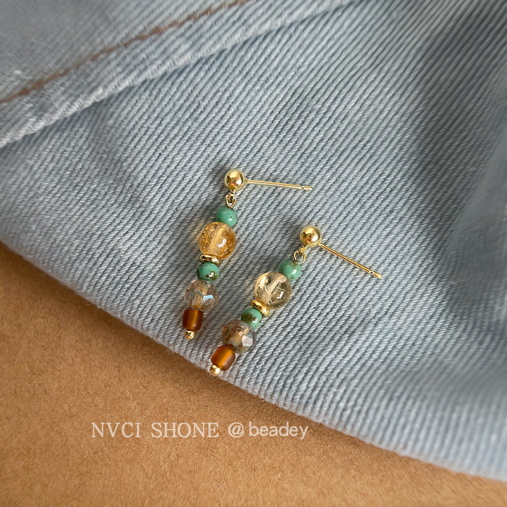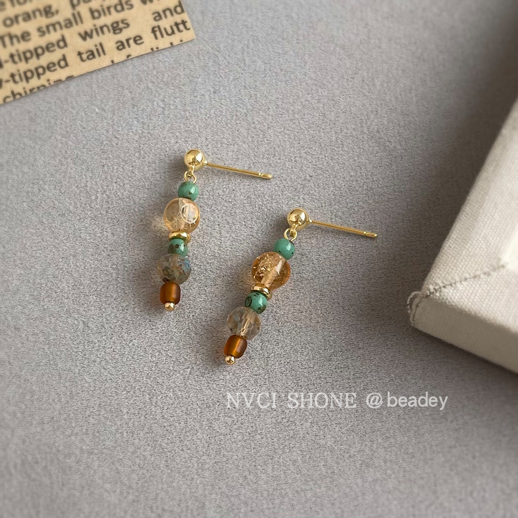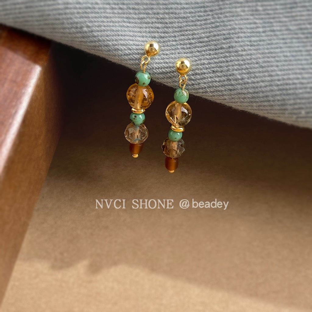 C廠【6858】秋冬色系文藝復古原創設計手工天然石新款耳環美拉德風耳環女 25.10-1