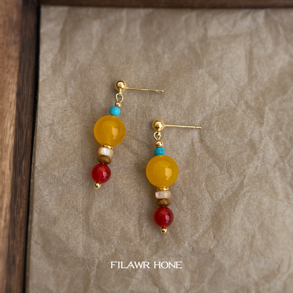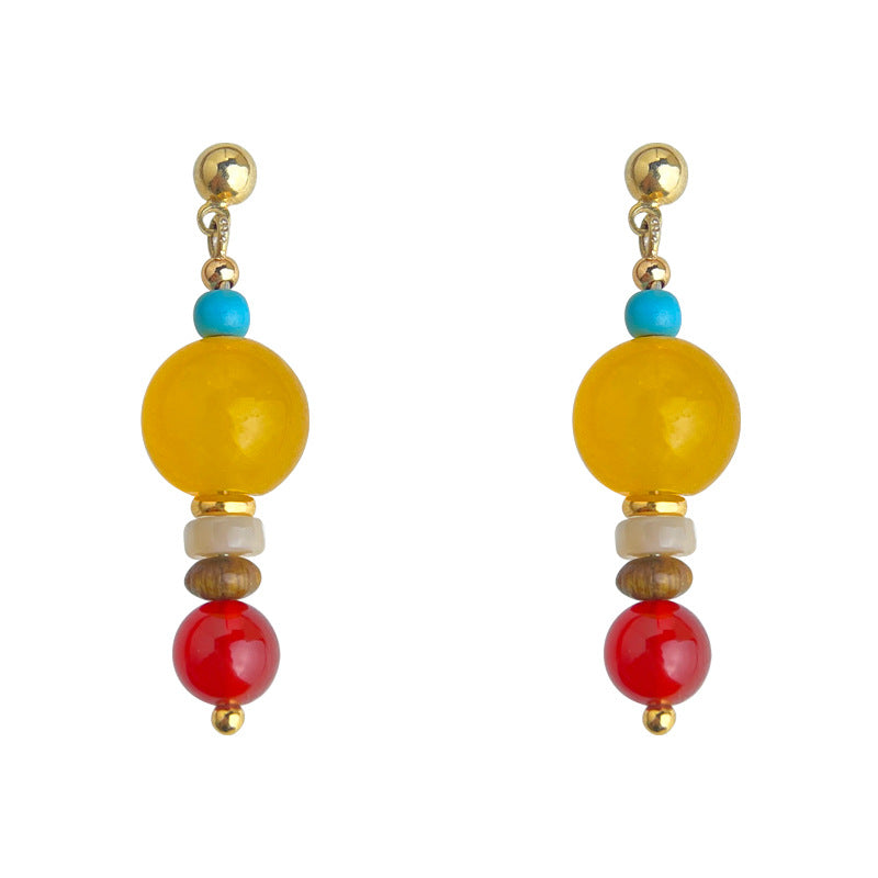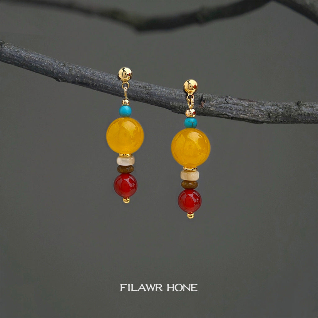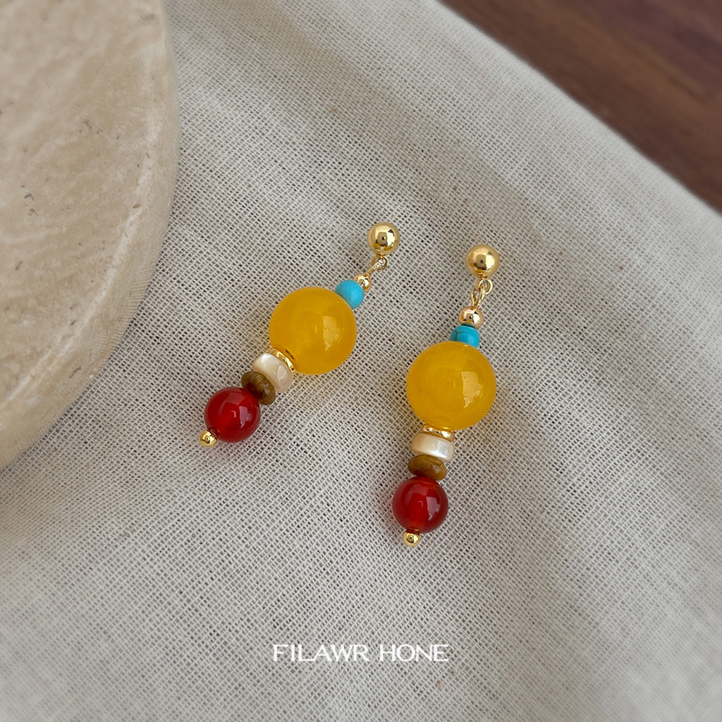C廠【6860】設計師款國潮民族風天然石黃玉紅瑪瑙新款耳環耳環 25.10-1