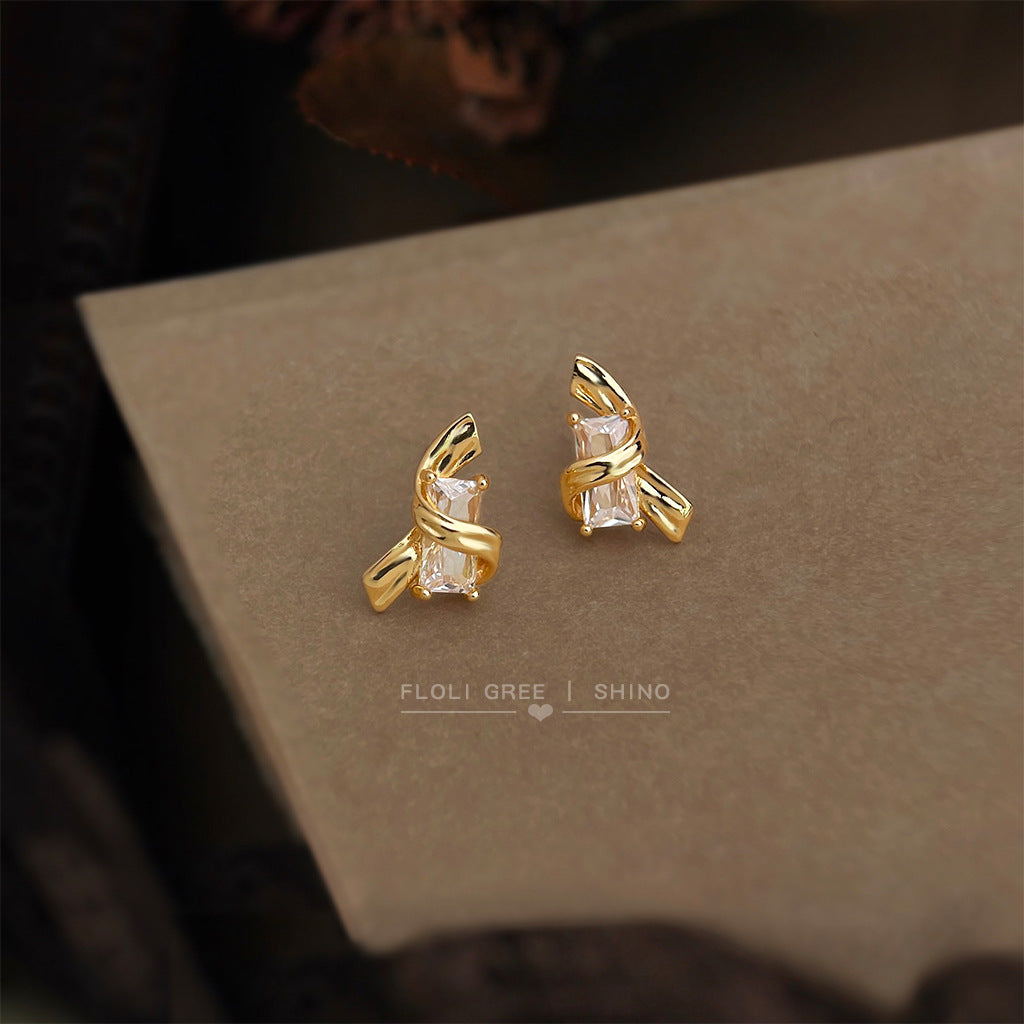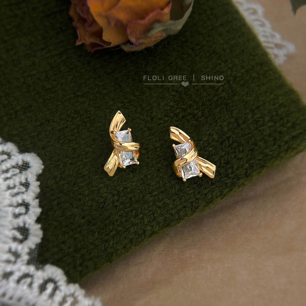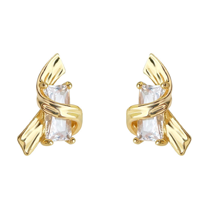 C廠【6866】飄帶~原創設計微鑲鋯石S925銀針鍍14K時尚高級感輕奢風耳環耳飾女 25.10-1