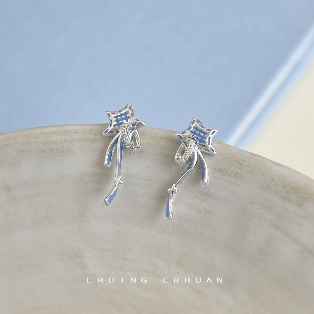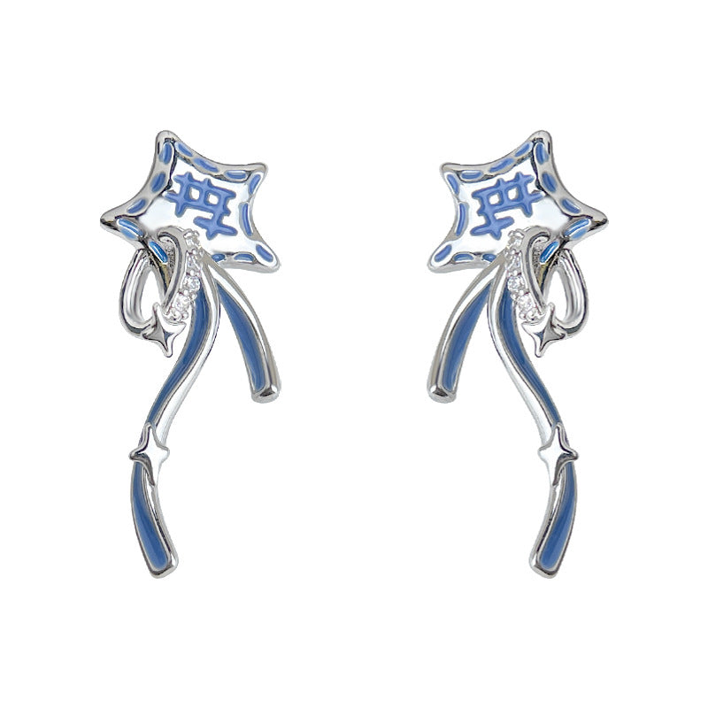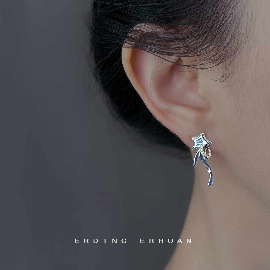 C廠【6868】原創個性許願星甜酷風新款925銀針微鑲鋯石彩繪藍色耳環 25.10-1