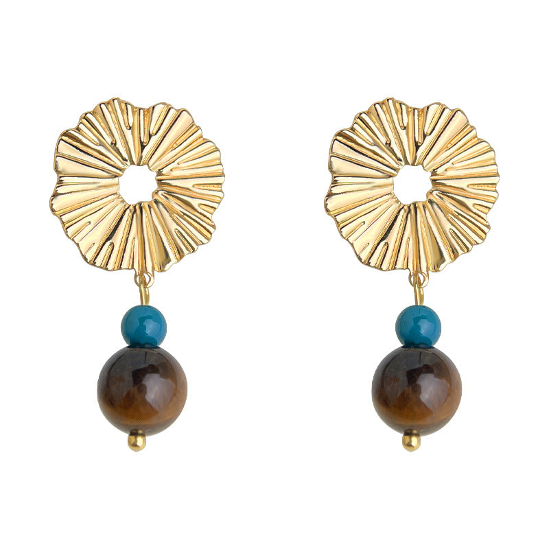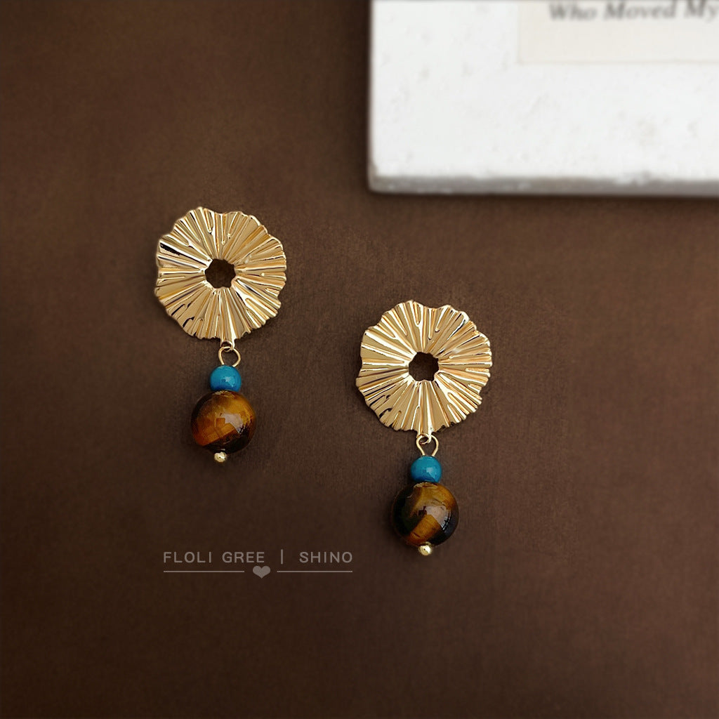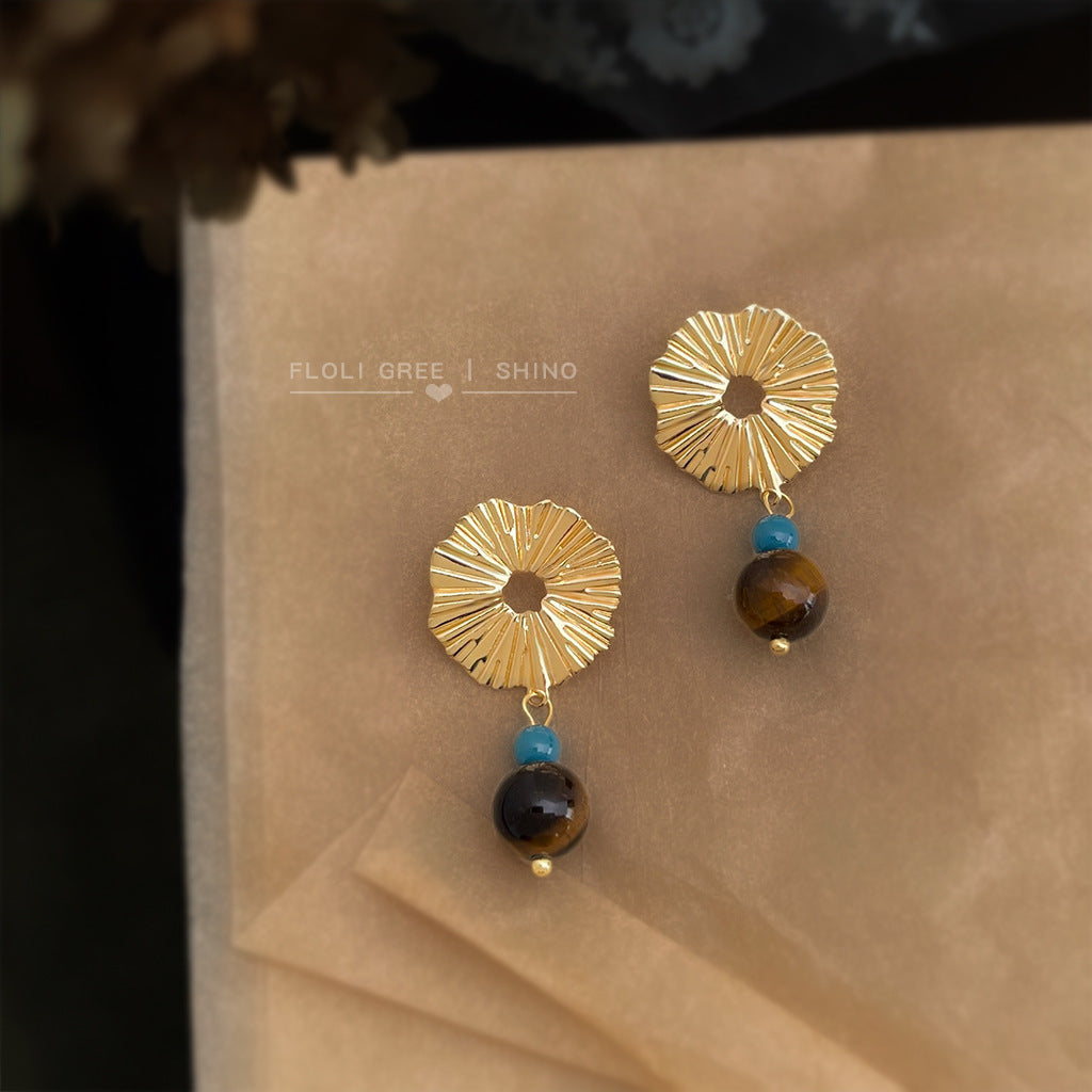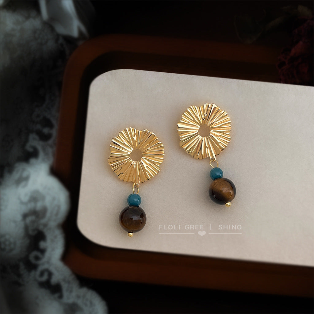 C廠【6873】文藝復古時尚高級感天然石虎眼石小眾設計個性新款耳環女耳環 25.10-1