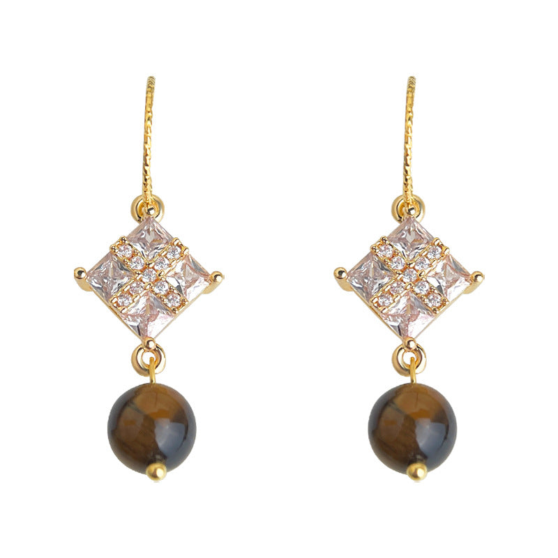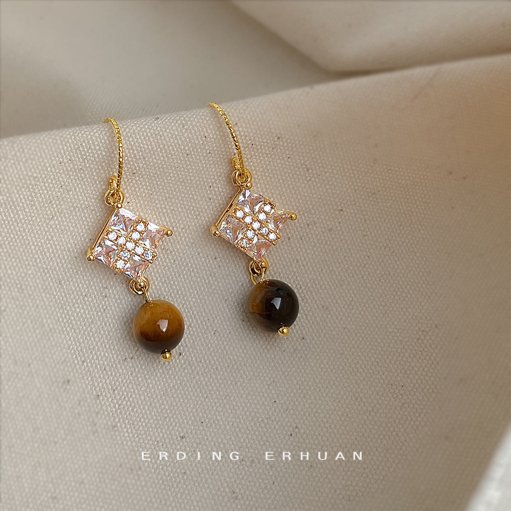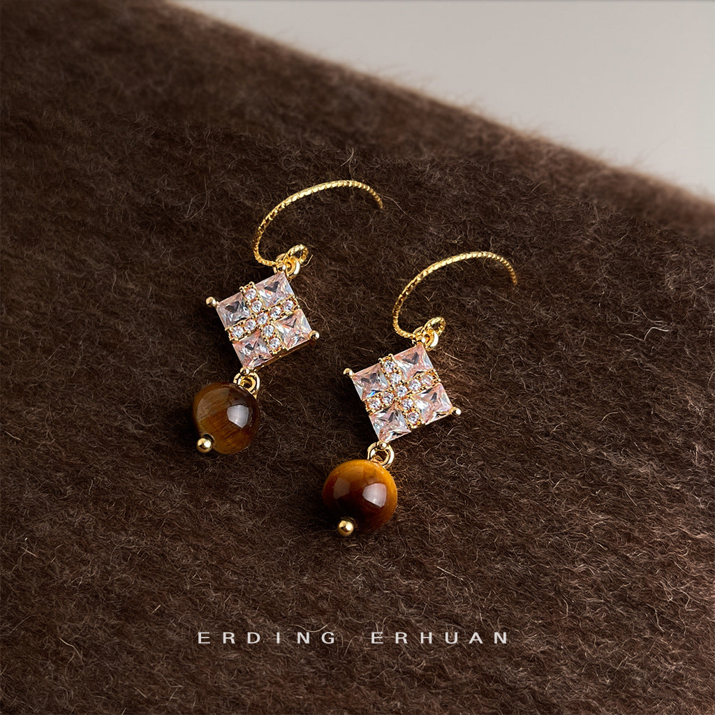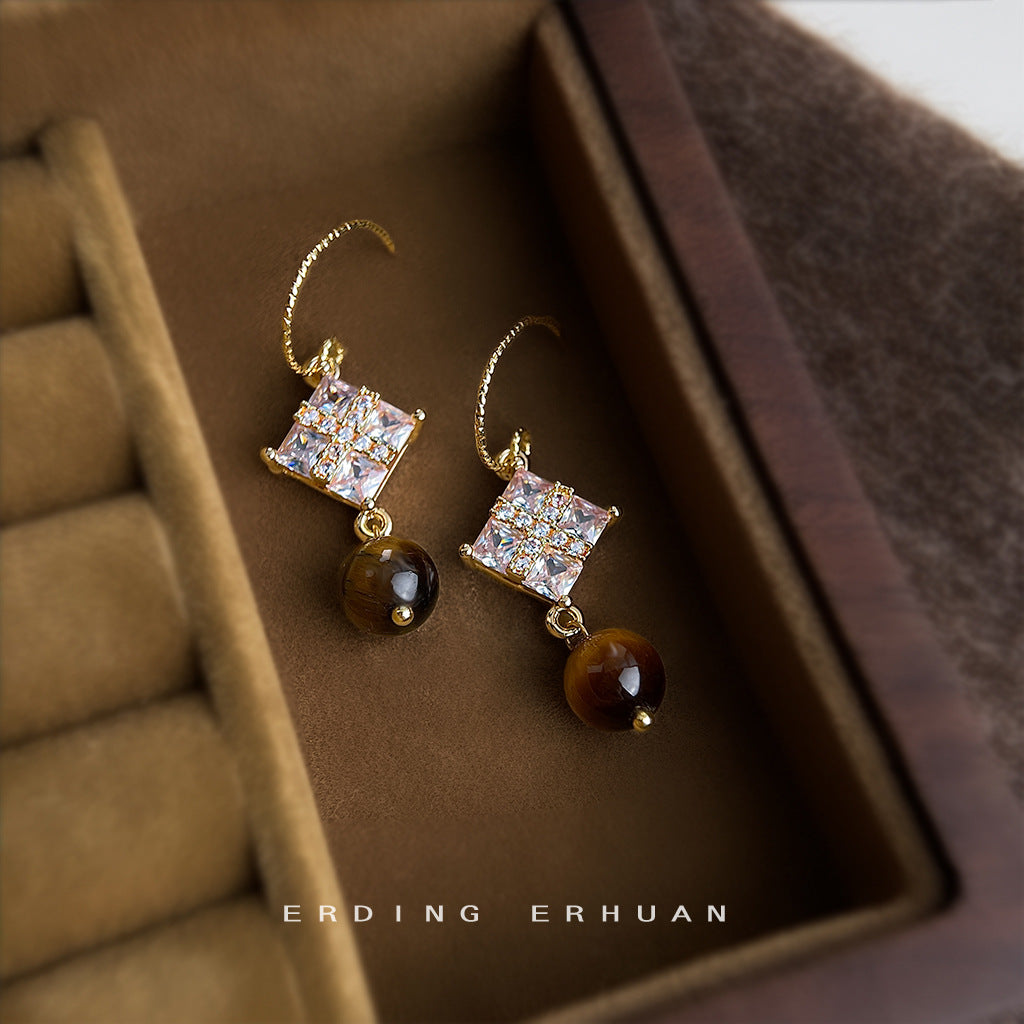 C廠【6874】微鑲鋯石秋冬新款天然石虎眼石美拉德風時尚高級感耳飾耳環女 25.10-1