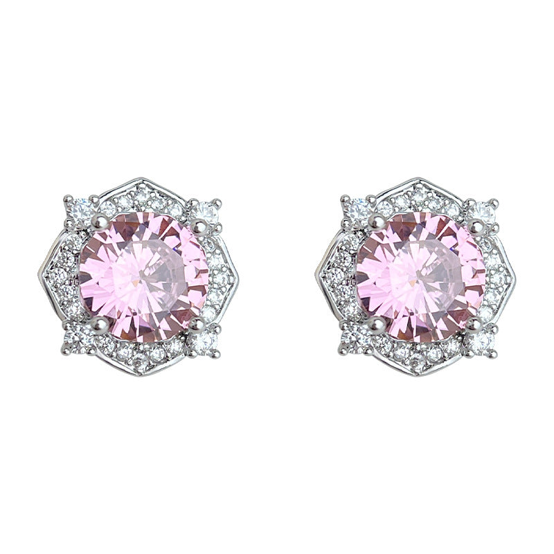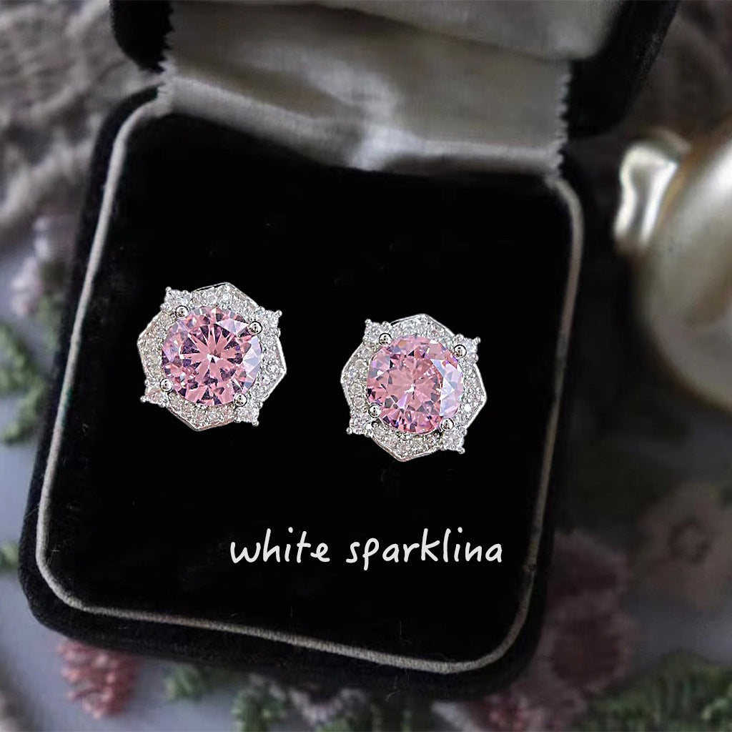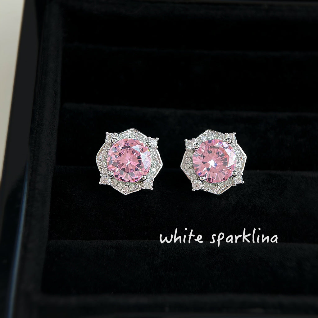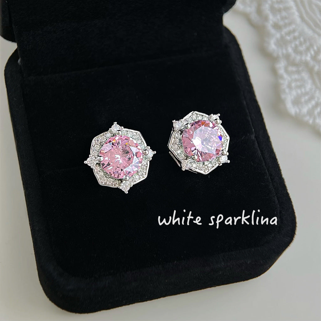 C廠【6877】小香風高級感925銀針微鑲粉鋯石幾何氣質優雅通勤新款耳飾女 耳環 25.10-1
