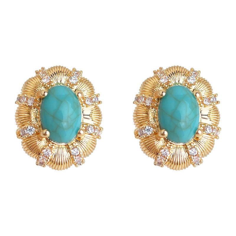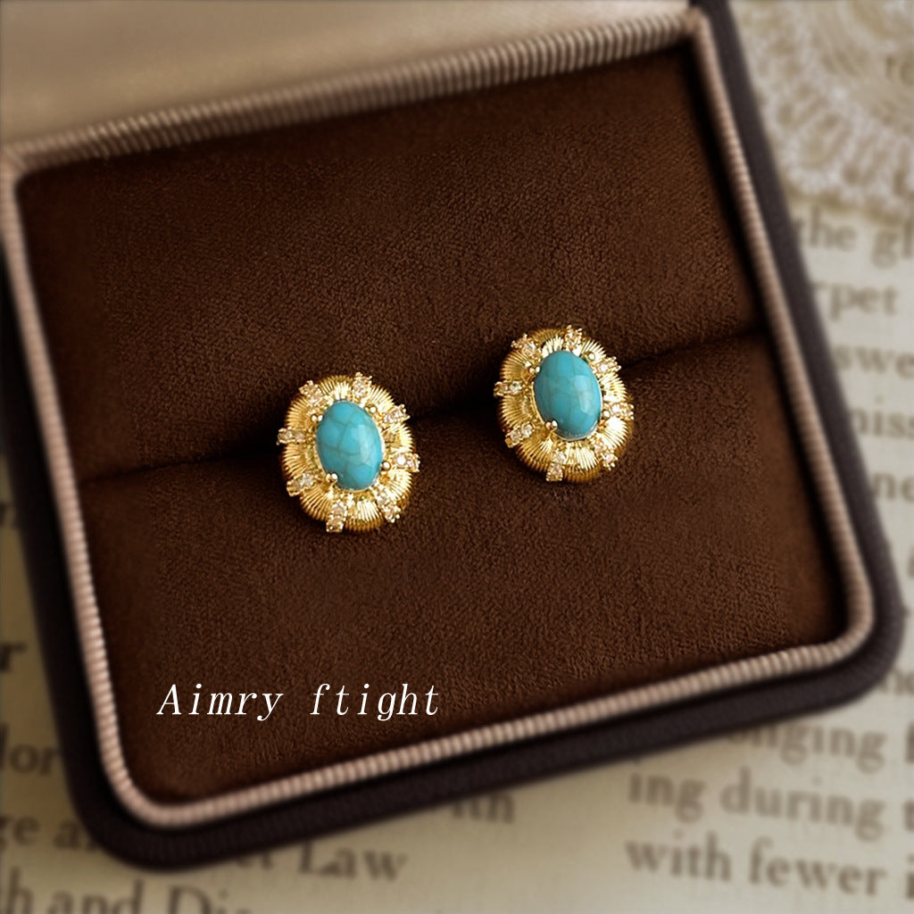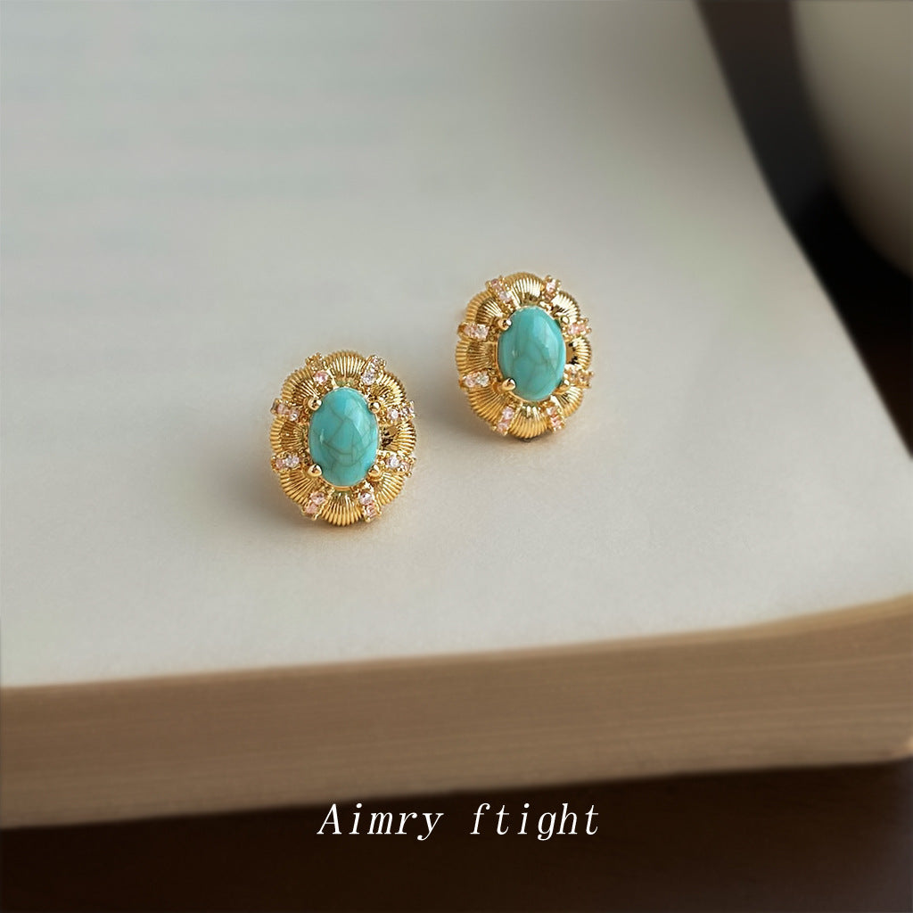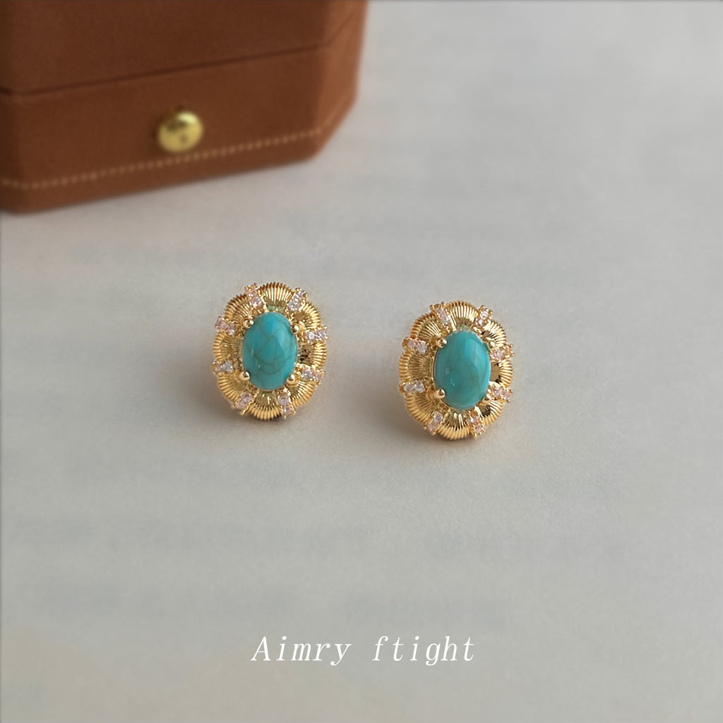 C廠【6880】文藝復古高級感橢圓鵝蛋合成鬆石新款微鑲鋯石耳環 925銀針耳飾女 25.10-1