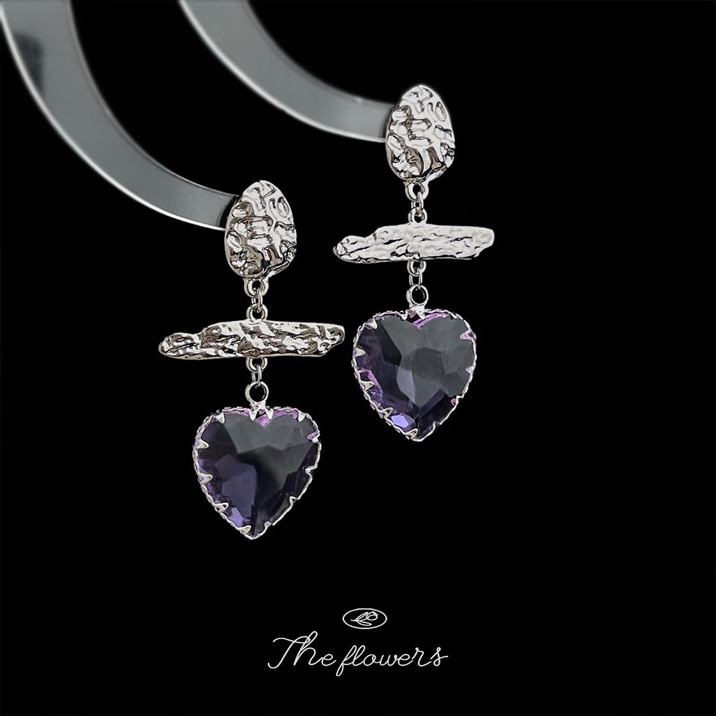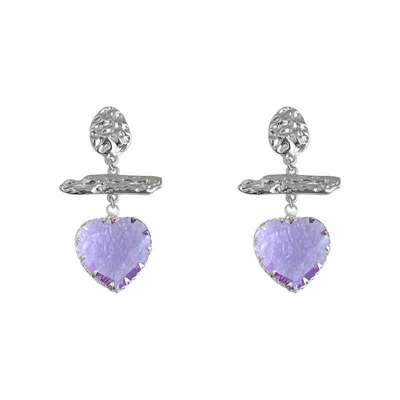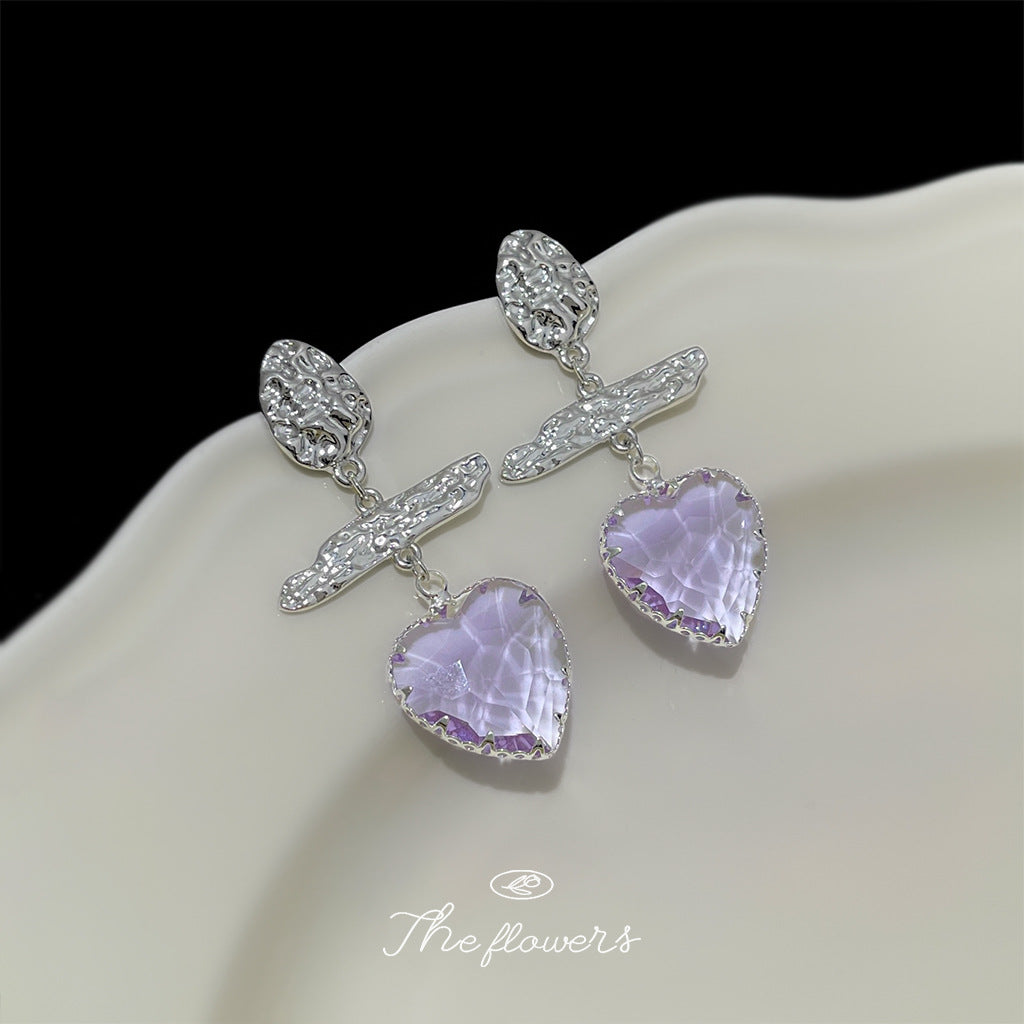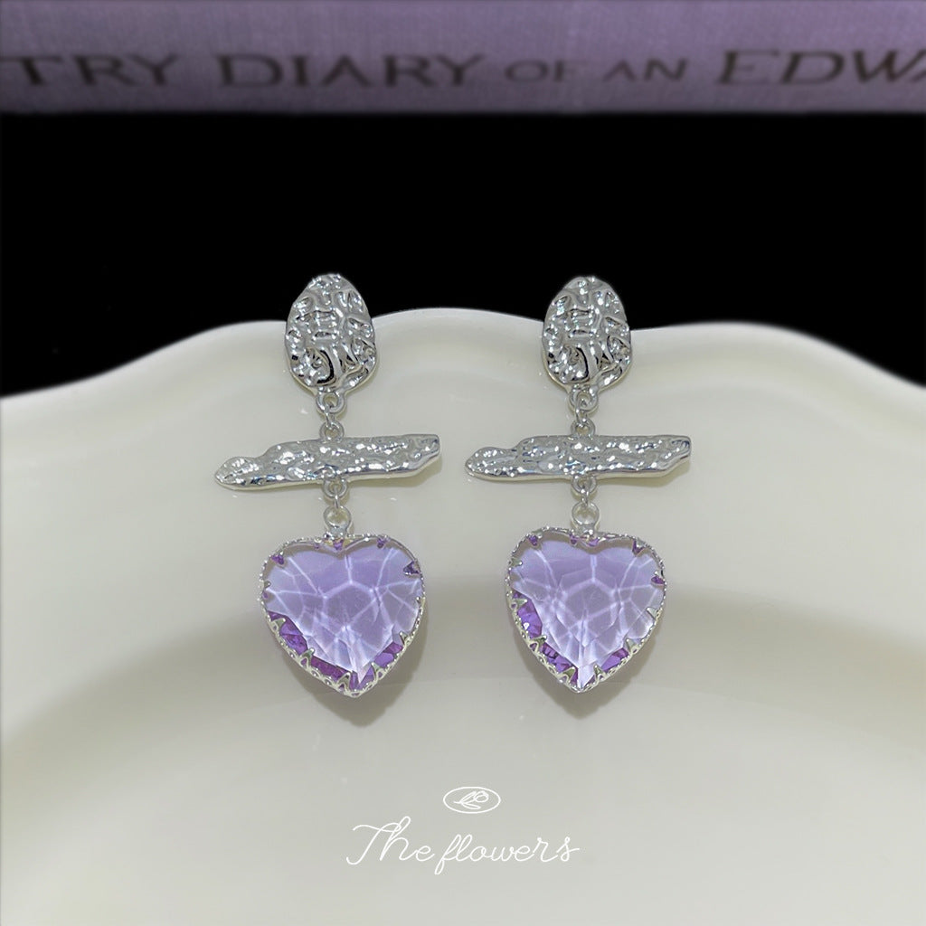 C廠【6891】實物很美~清透高級感玻璃愛心水晶淡紫色氣質新款耳環耳環女 25.10-2