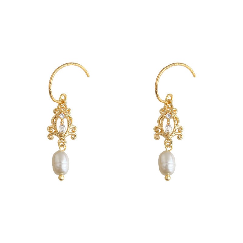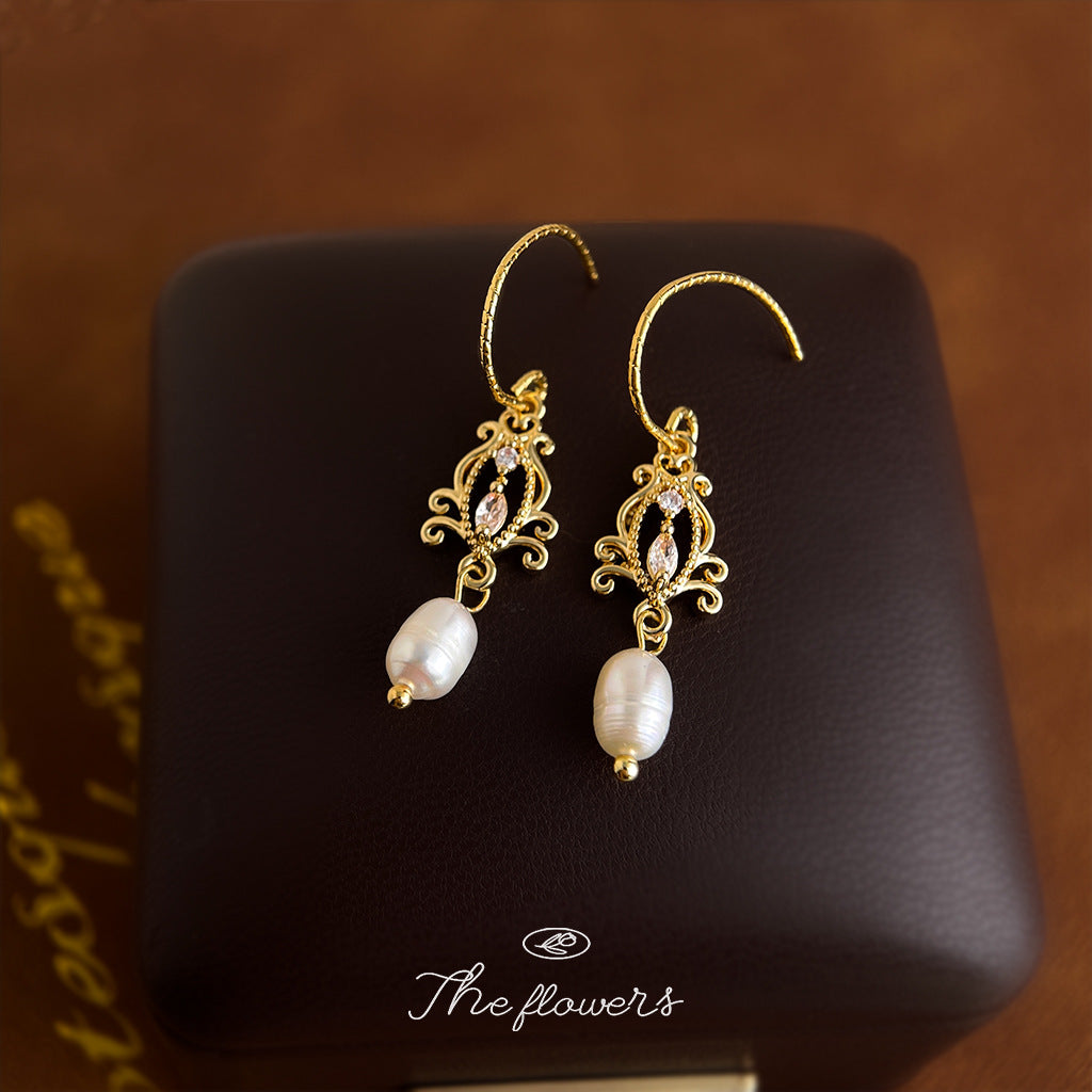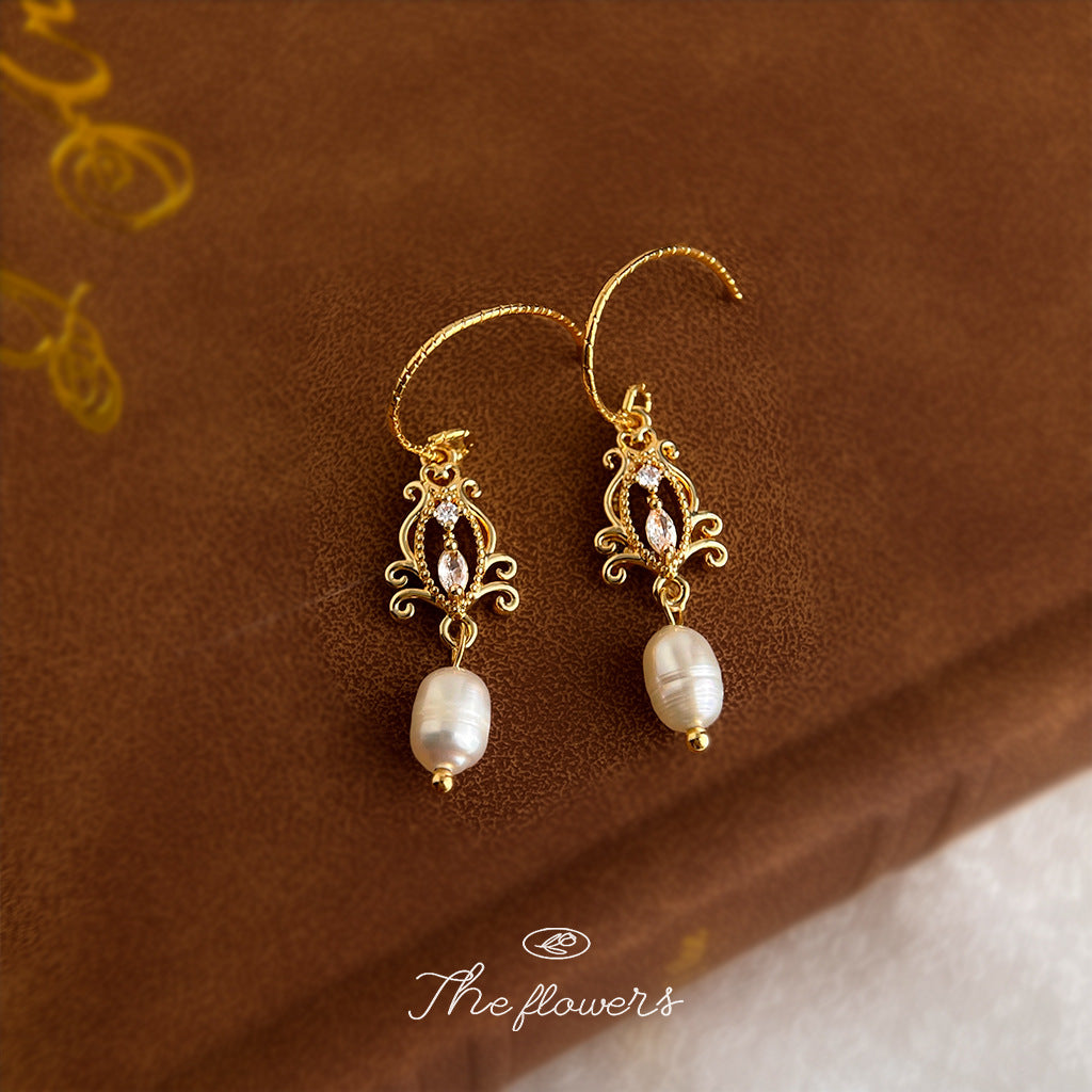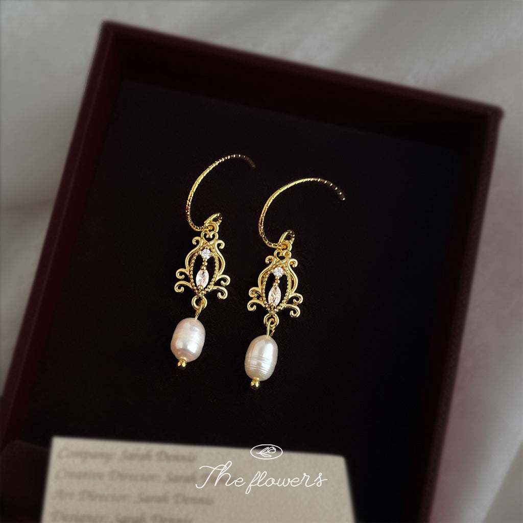 C廠【6893】淡水珍珠微鑲鋯石文藝復古宮廷風新款鏤空法式耳環新款耳環女 25.10-2
