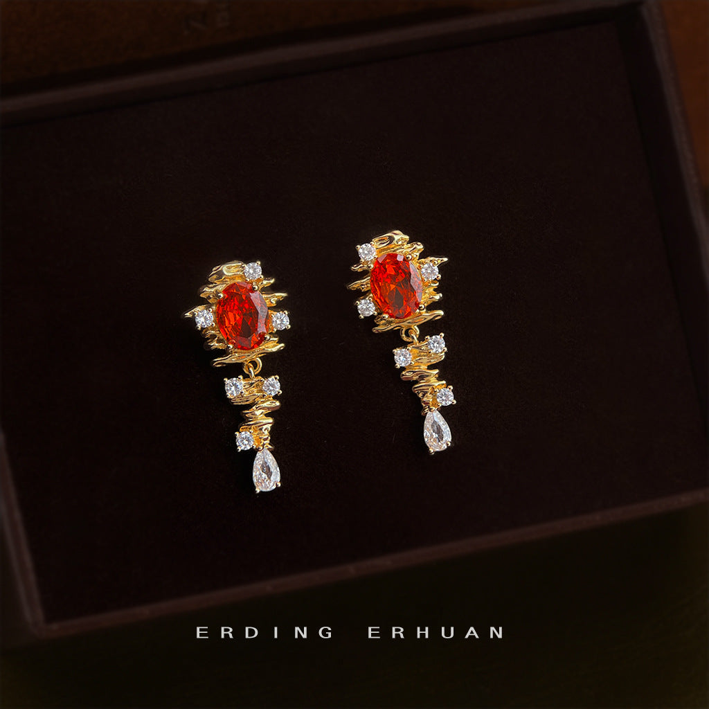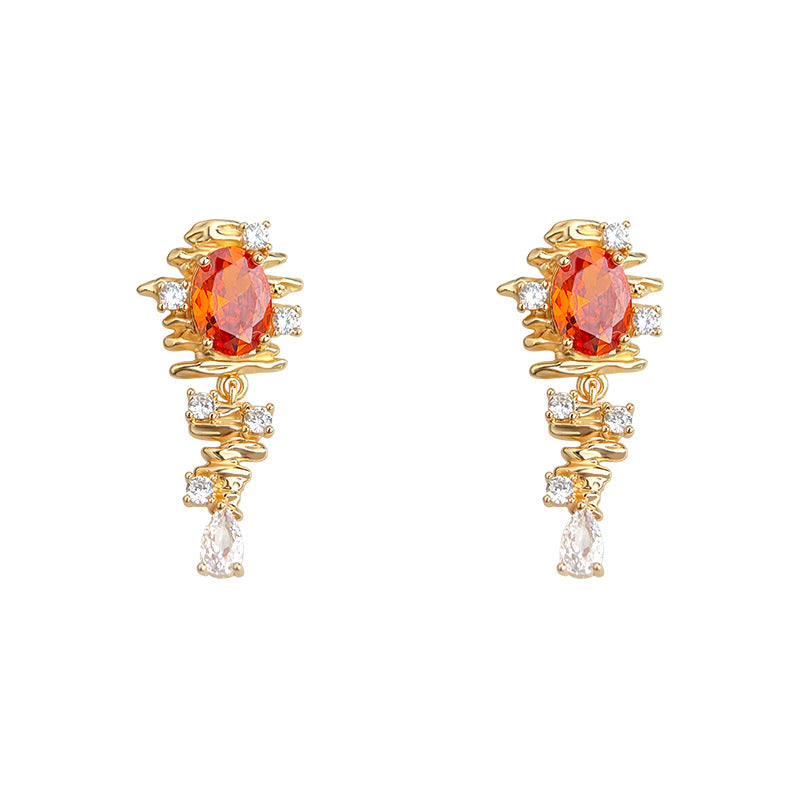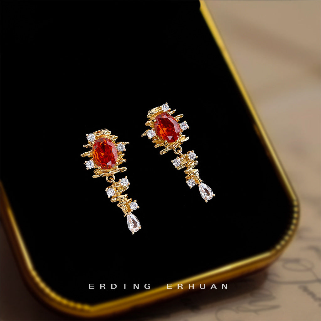 C廠【6896】原創設計時尚高級感秋冬橘紅鋯石文藝復古耳環S925銀針耳環女 25.10-2