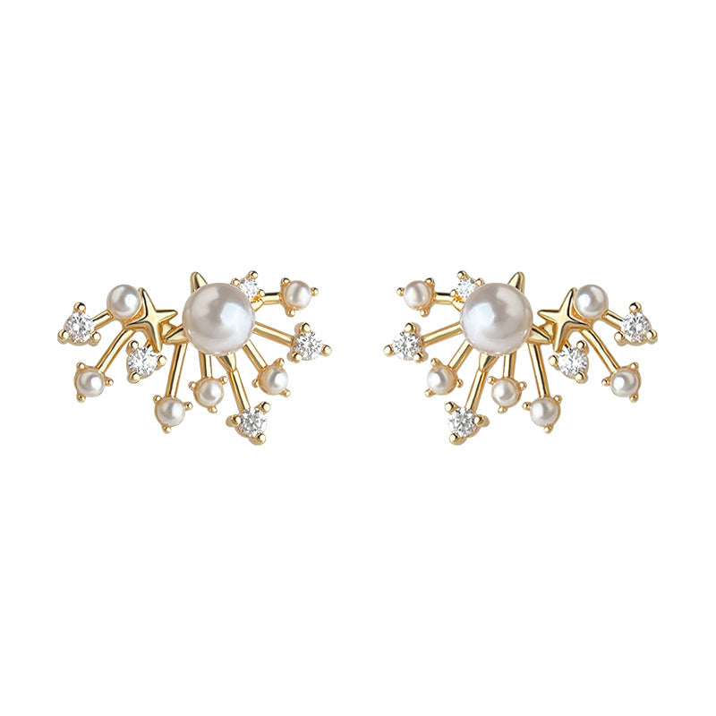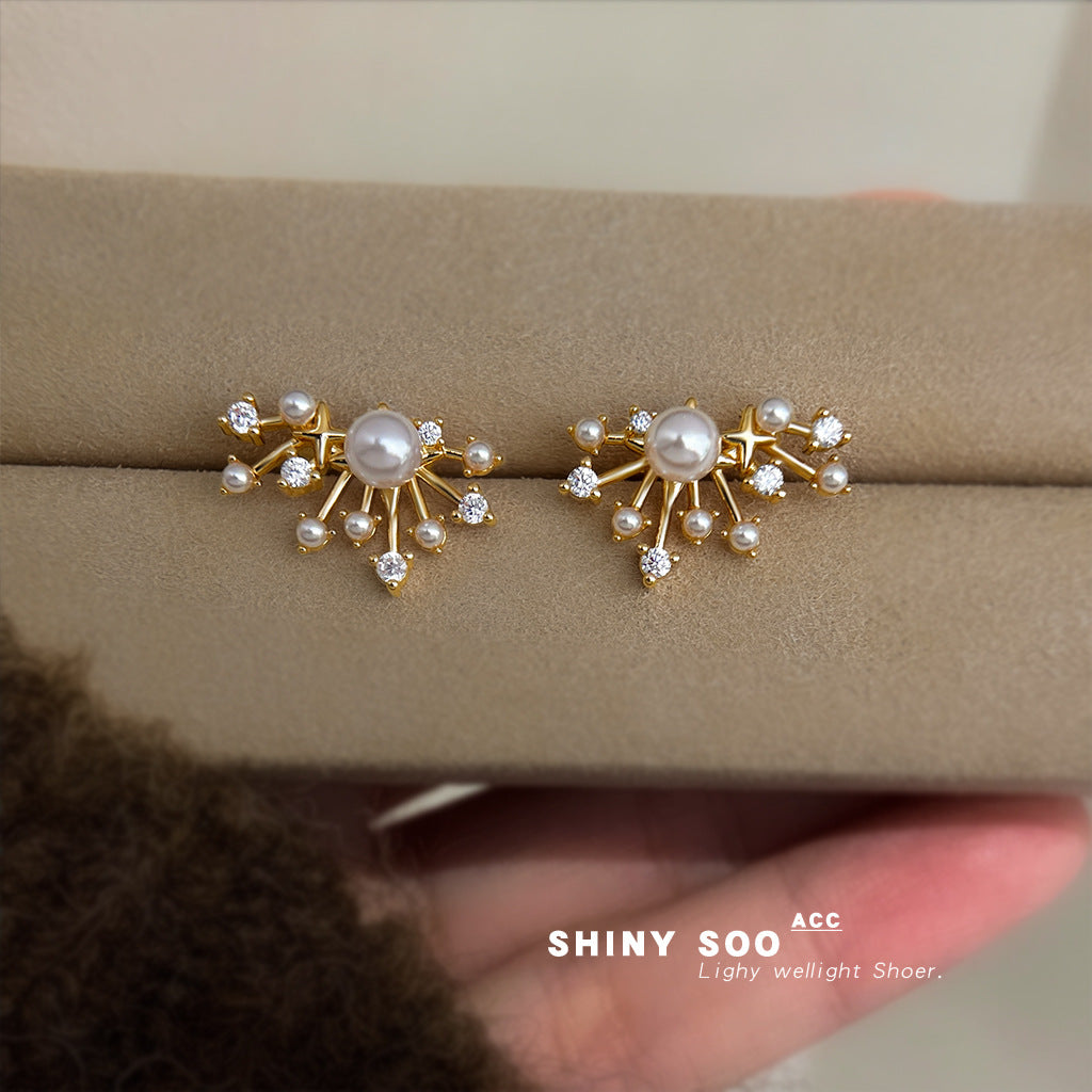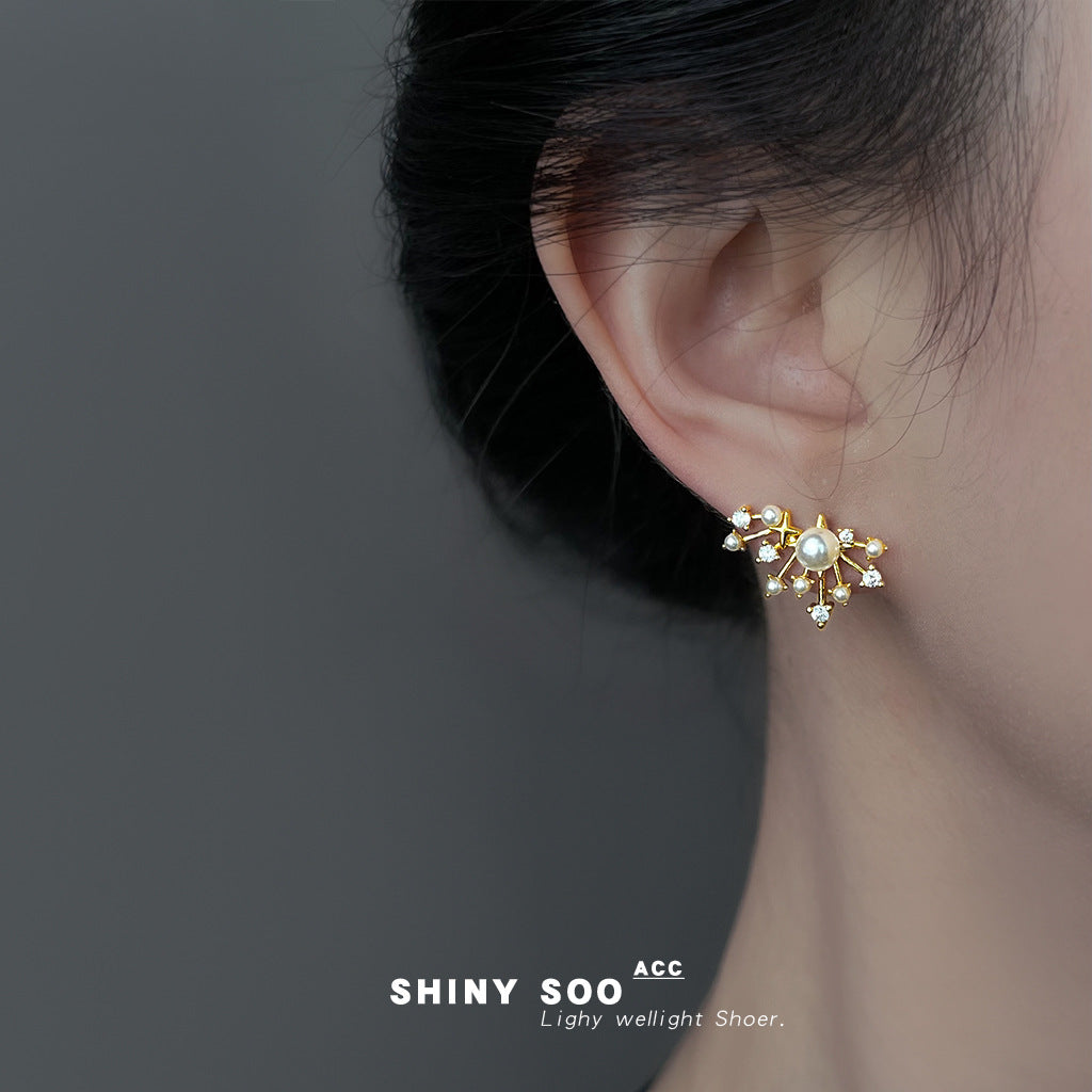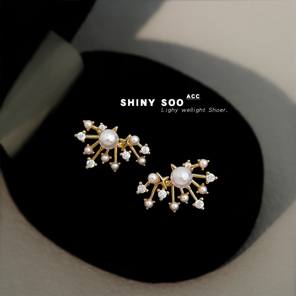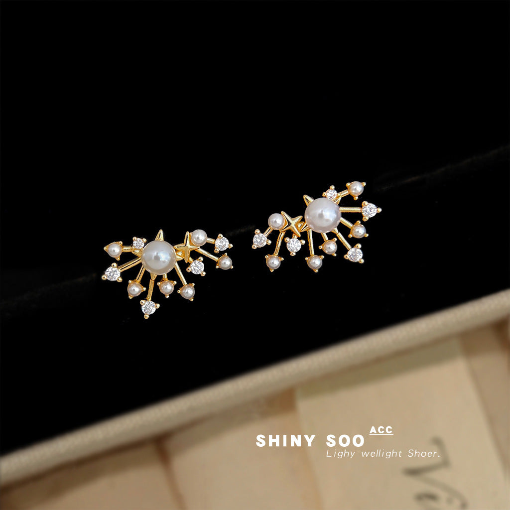 C廠【6900】煙火鑲鋯石時尚高級感新款925銀針滿天星耳環女 氣質個性耳飾 25.10-2