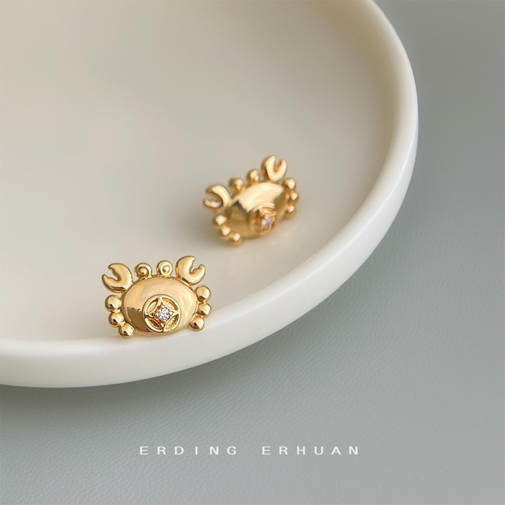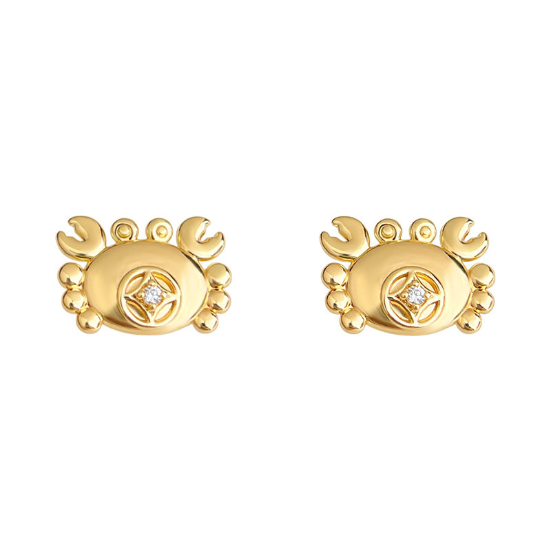 C廠【6903】元寶蟹~原始設計微鑲鋯石925銀針鍍14K簡約時尚通勤新耳飾 耳環 25.10-3