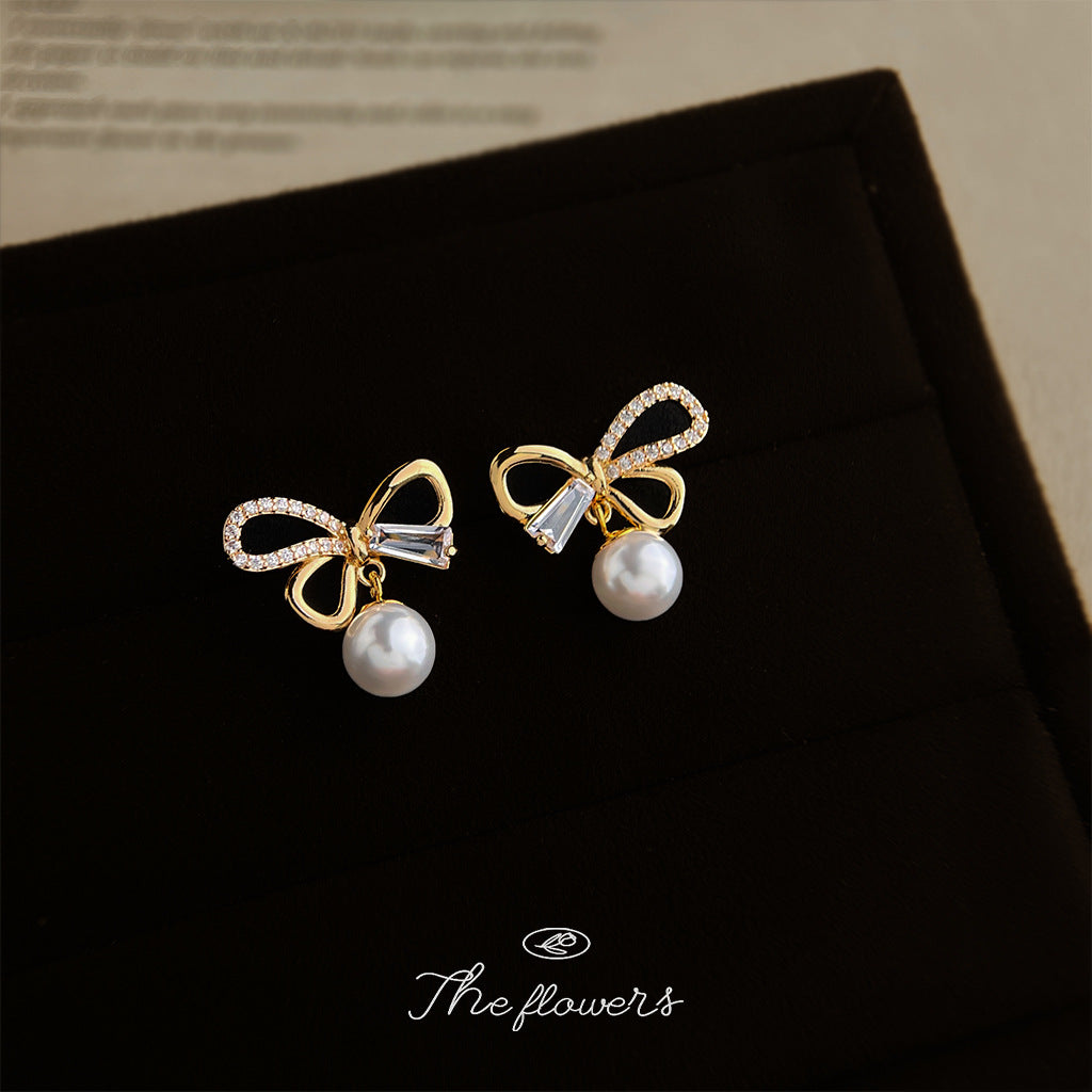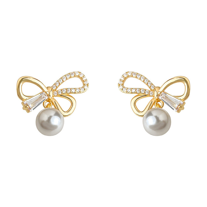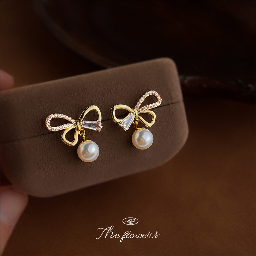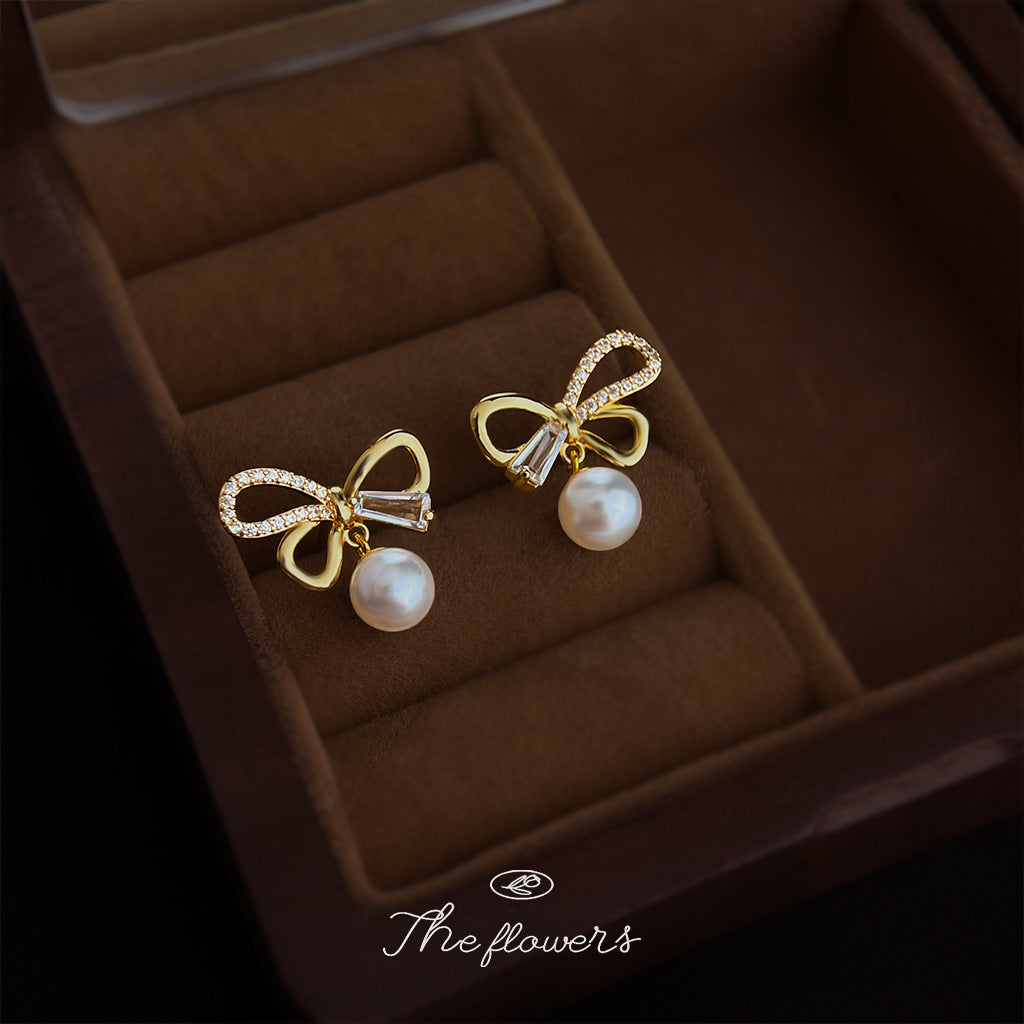 C廠【6908】原始微鑲鋯石925銀針鍍14K簡約時尚高級感通勤新款蝴蝶結耳飾耳環 25.10-2