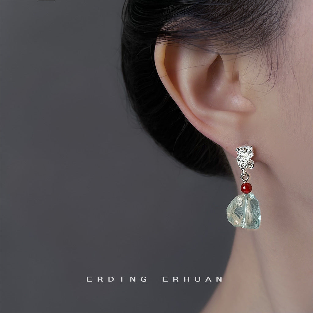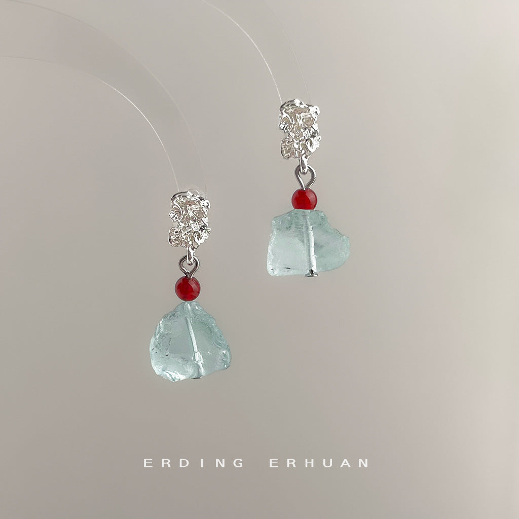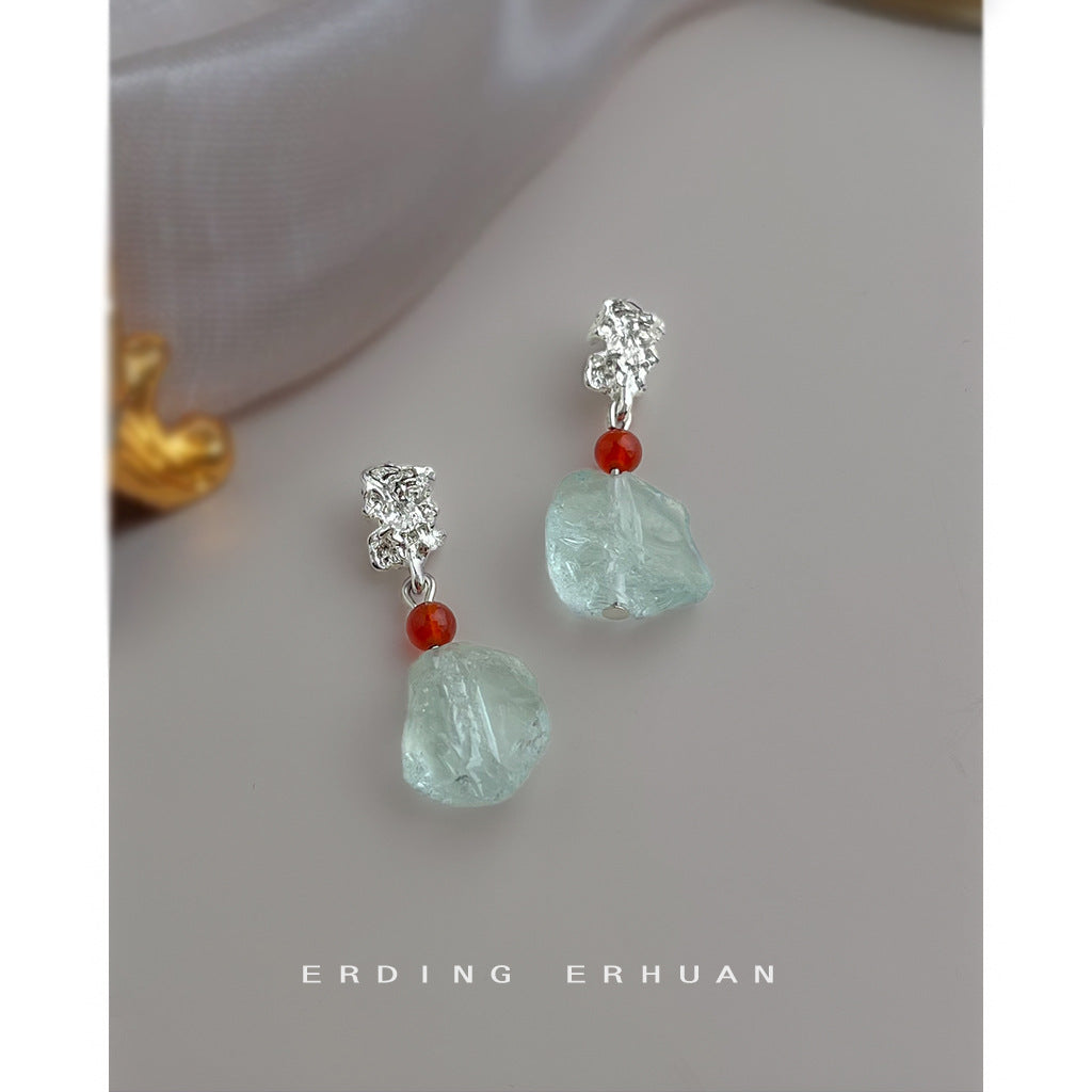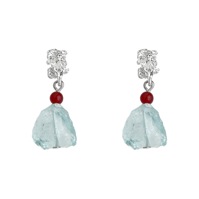 A廠【6921】清冷感水透海藍水晶天然石時尚清新甜美碎石耳環度假風新款耳環女 25.10-3