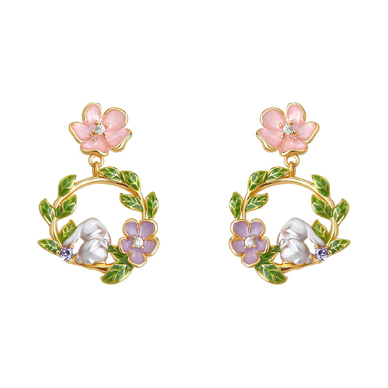 C廠【6922】原創森系童話故事! 925銀針彩繪花環兔子可愛甜美小香風耳飾 耳環 25.10-4
