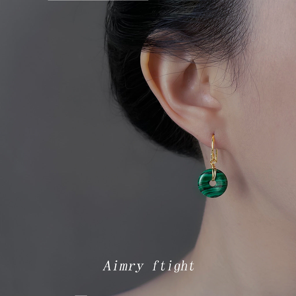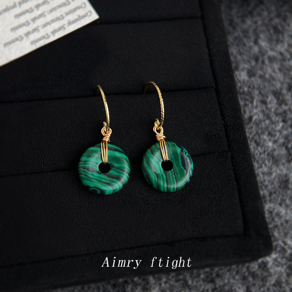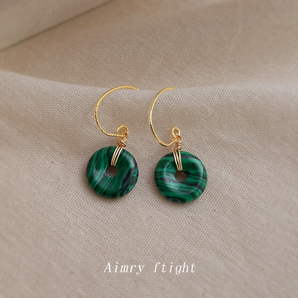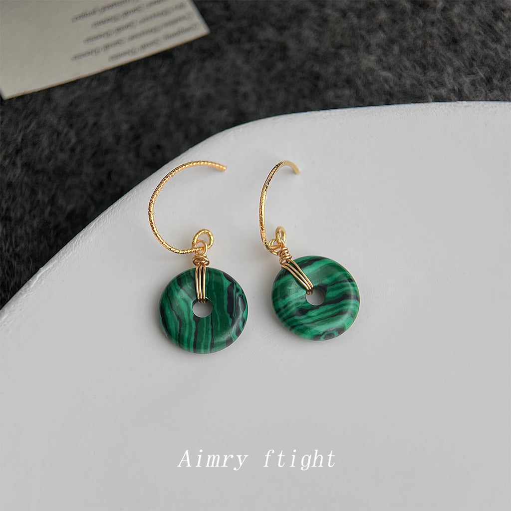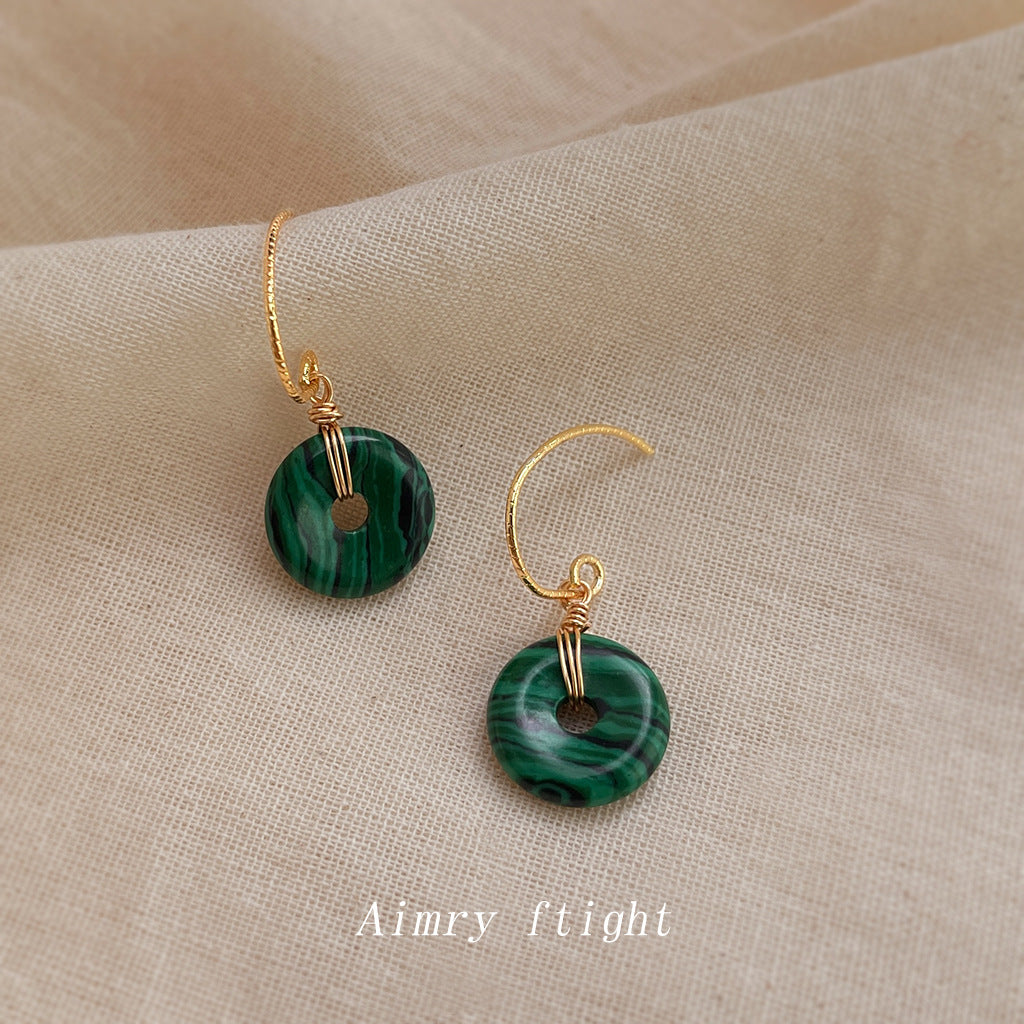 C廠【6940】文藝復古國潮民族風景區飾品平安扣合成孔雀石祖母綠耳飾耳環 25.10-3