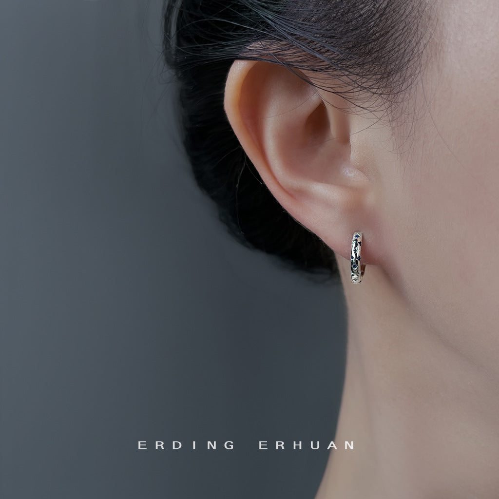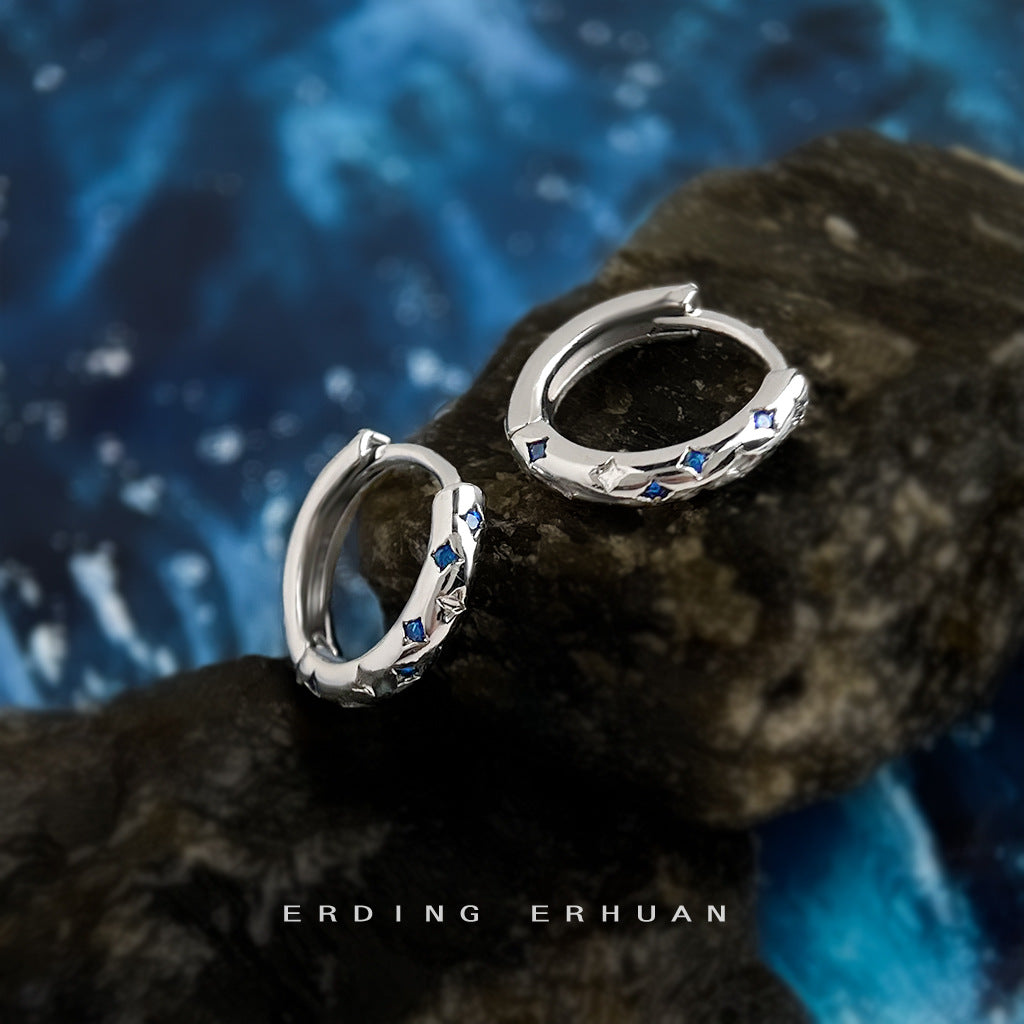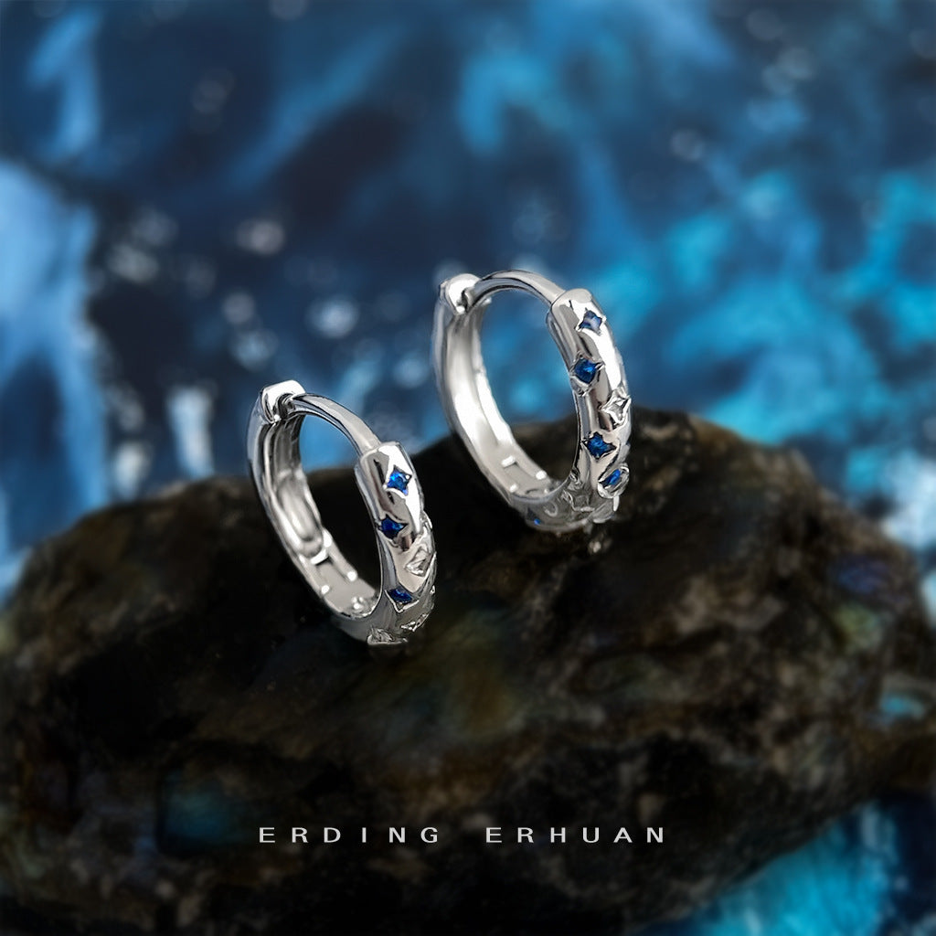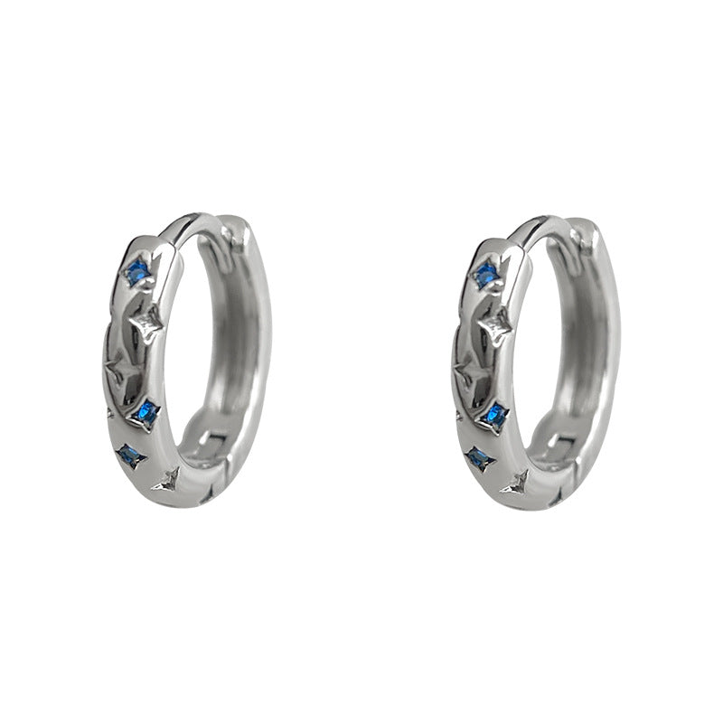 C廠【6946】時尚高級感個性甜酷風芒星藍鋯石圓形幾何百搭耳扣女氣質耳環耳環 25.10-4