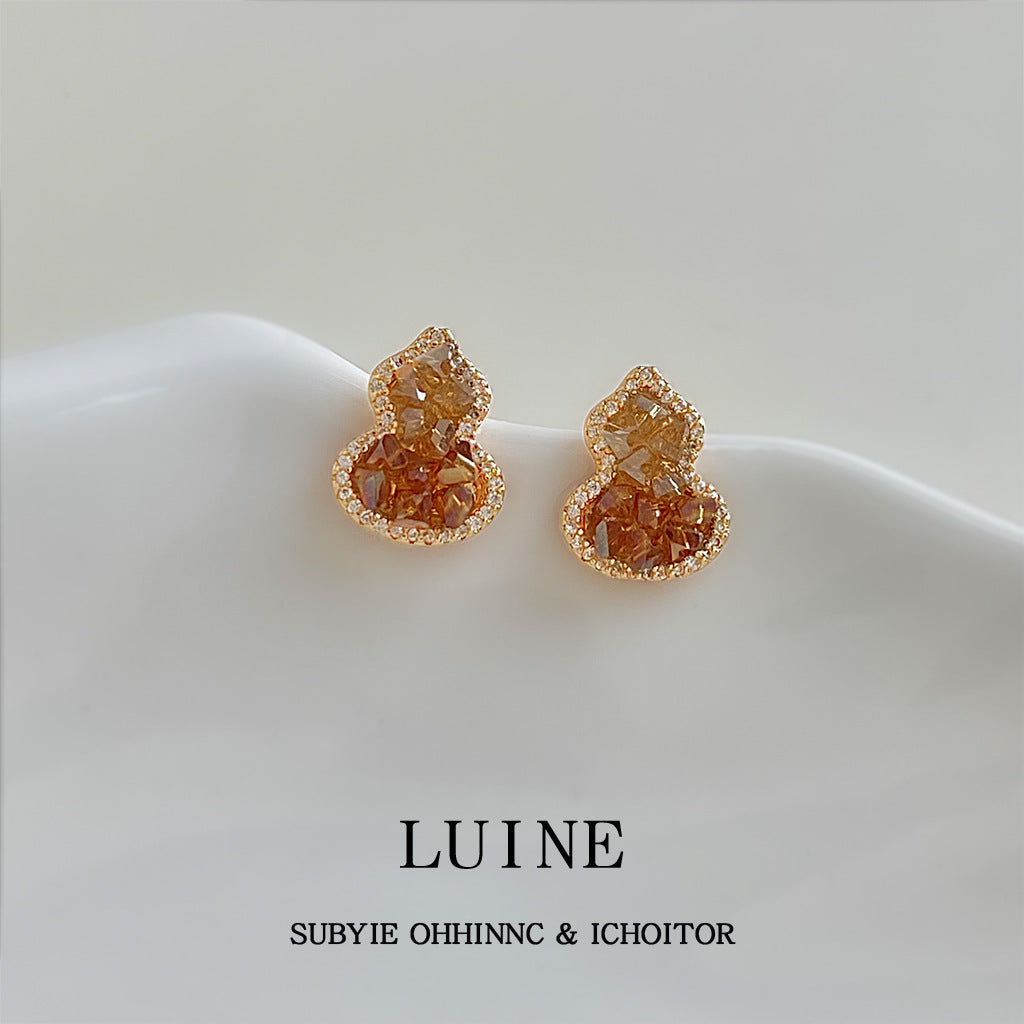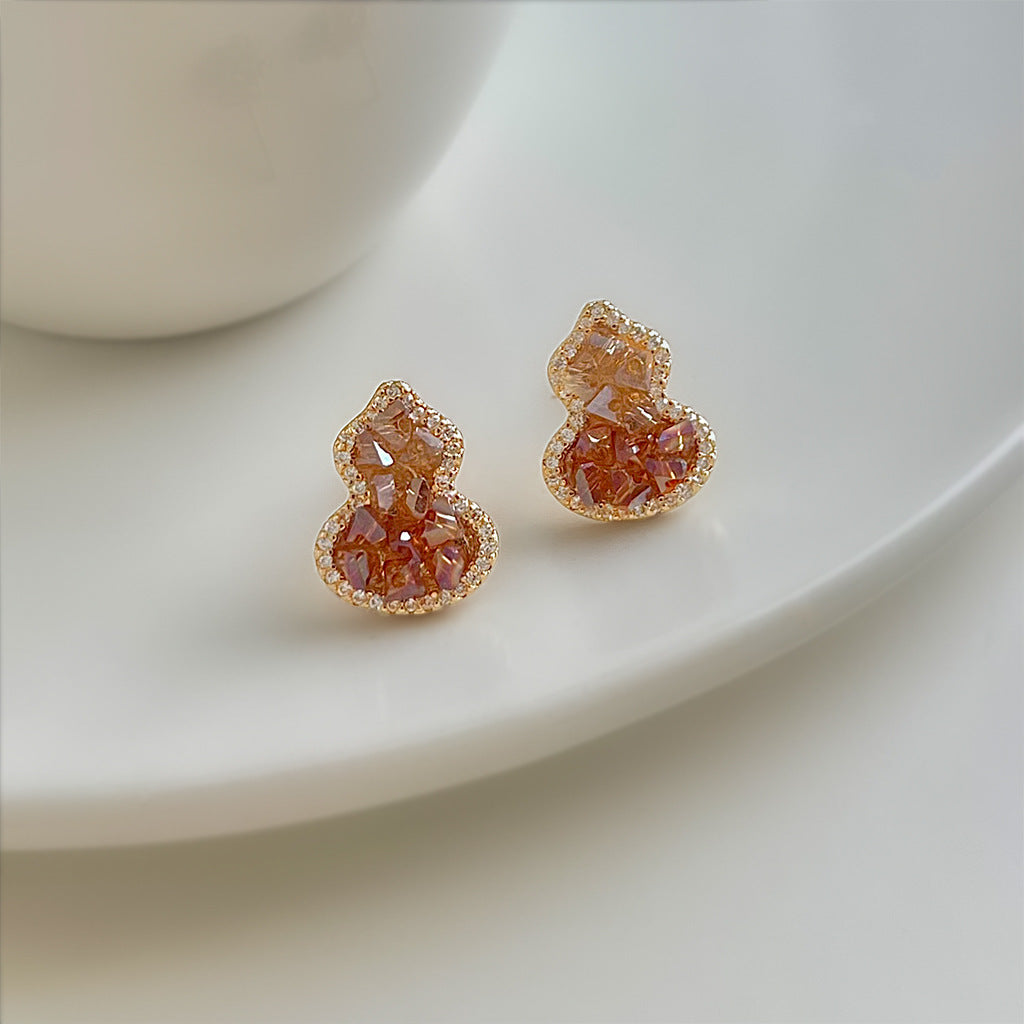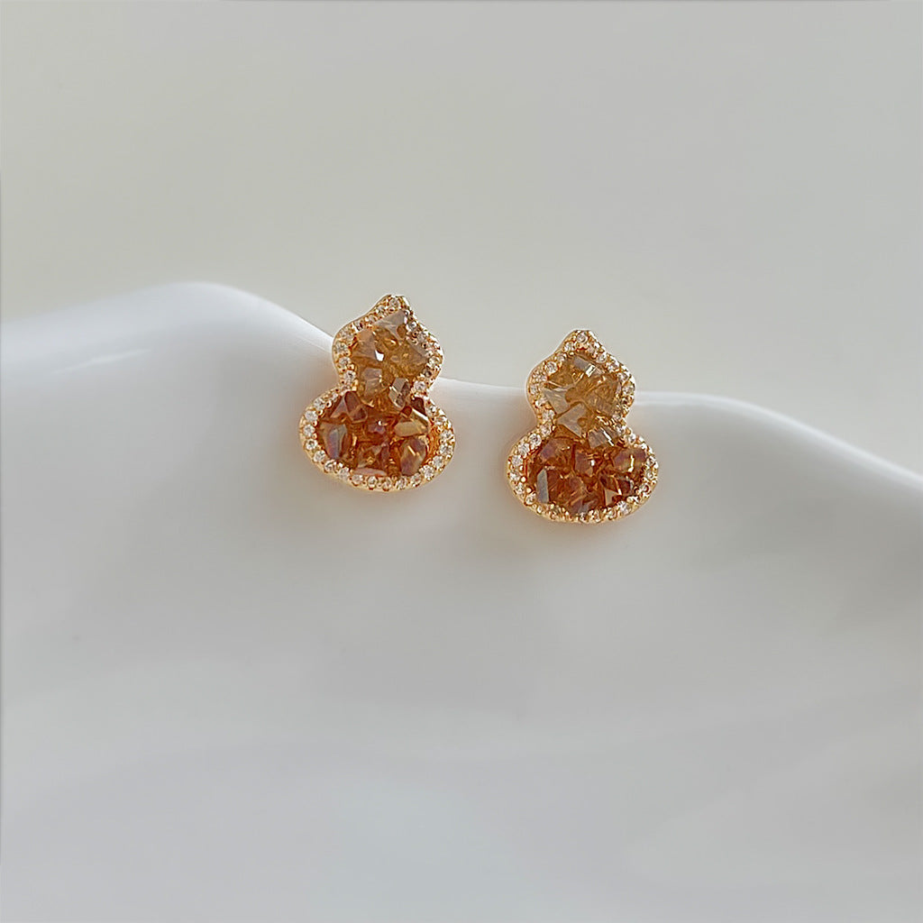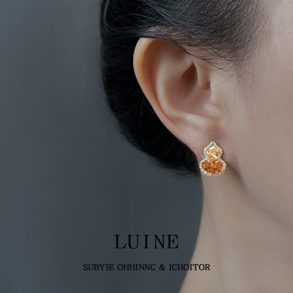C廠【6949】閉眼入!好賣!微鑲鋯石925銀針水晶葫蘆耳環橙色漸變香檳色耳飾 25.10-4