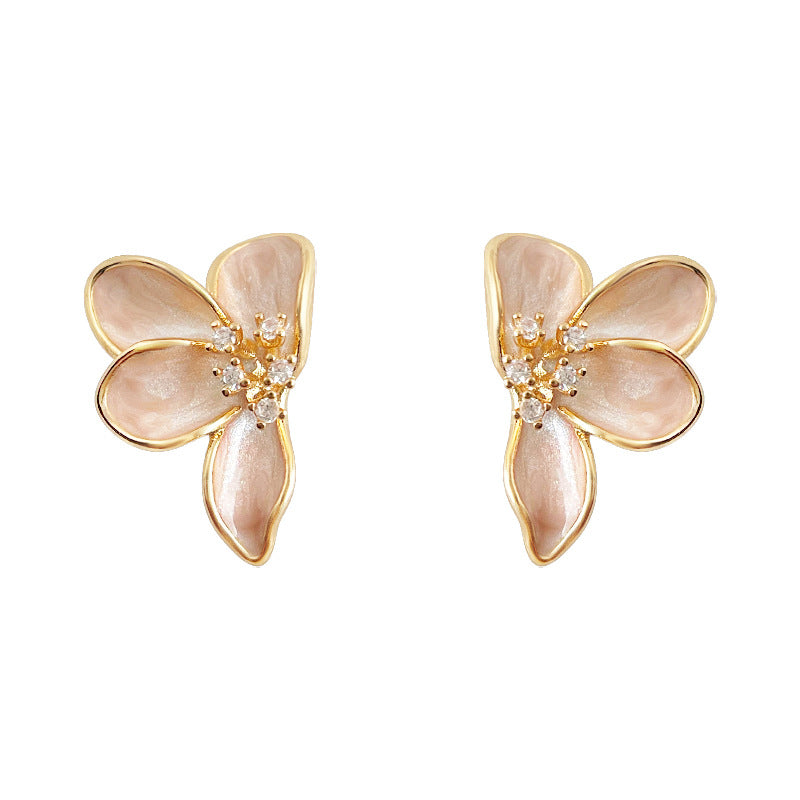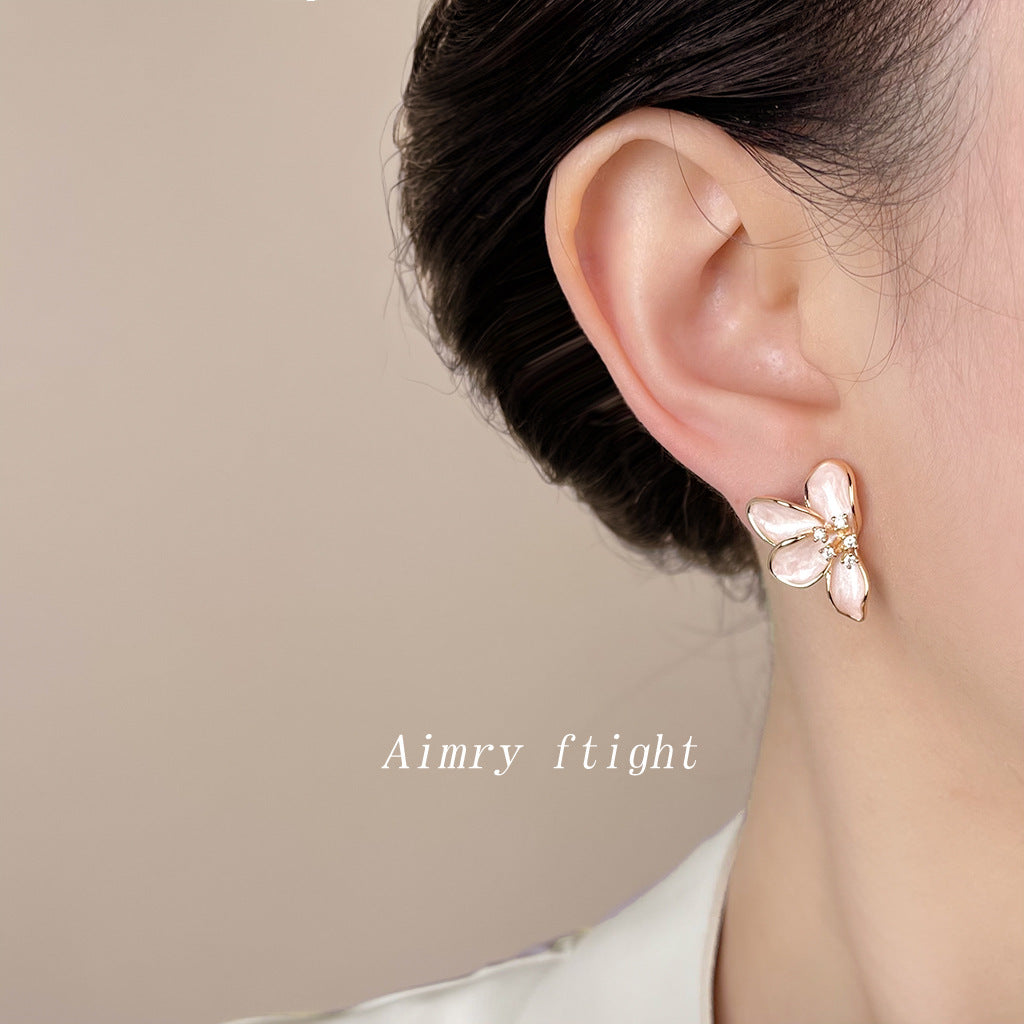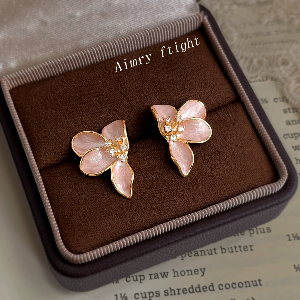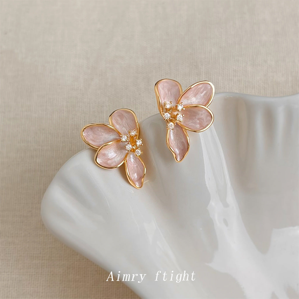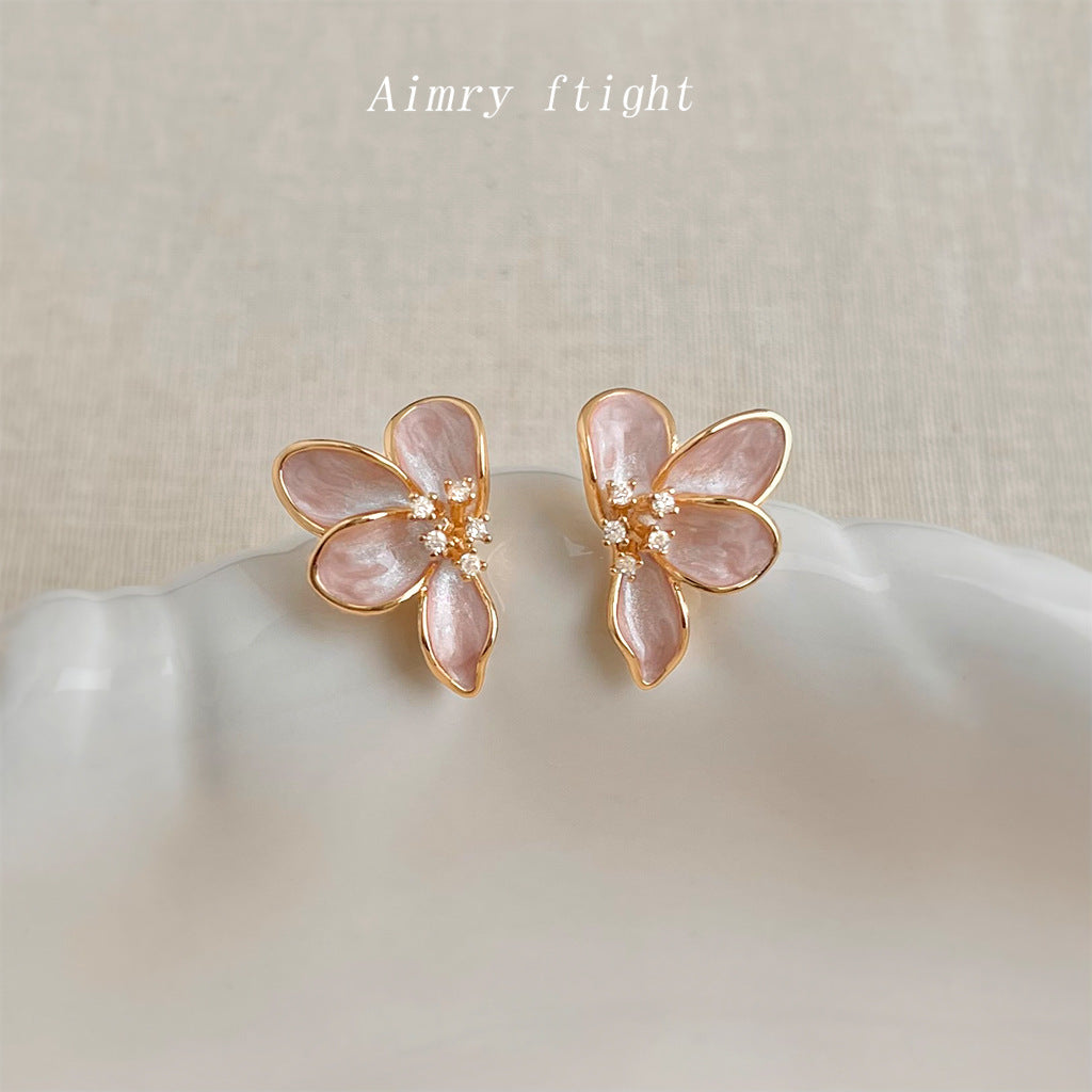 C廠【6950】溫柔氣質微鑲鋯石925銀針清新甜美小香風琺瑯滴釉花朵耳環 耳飾女 25.10-5