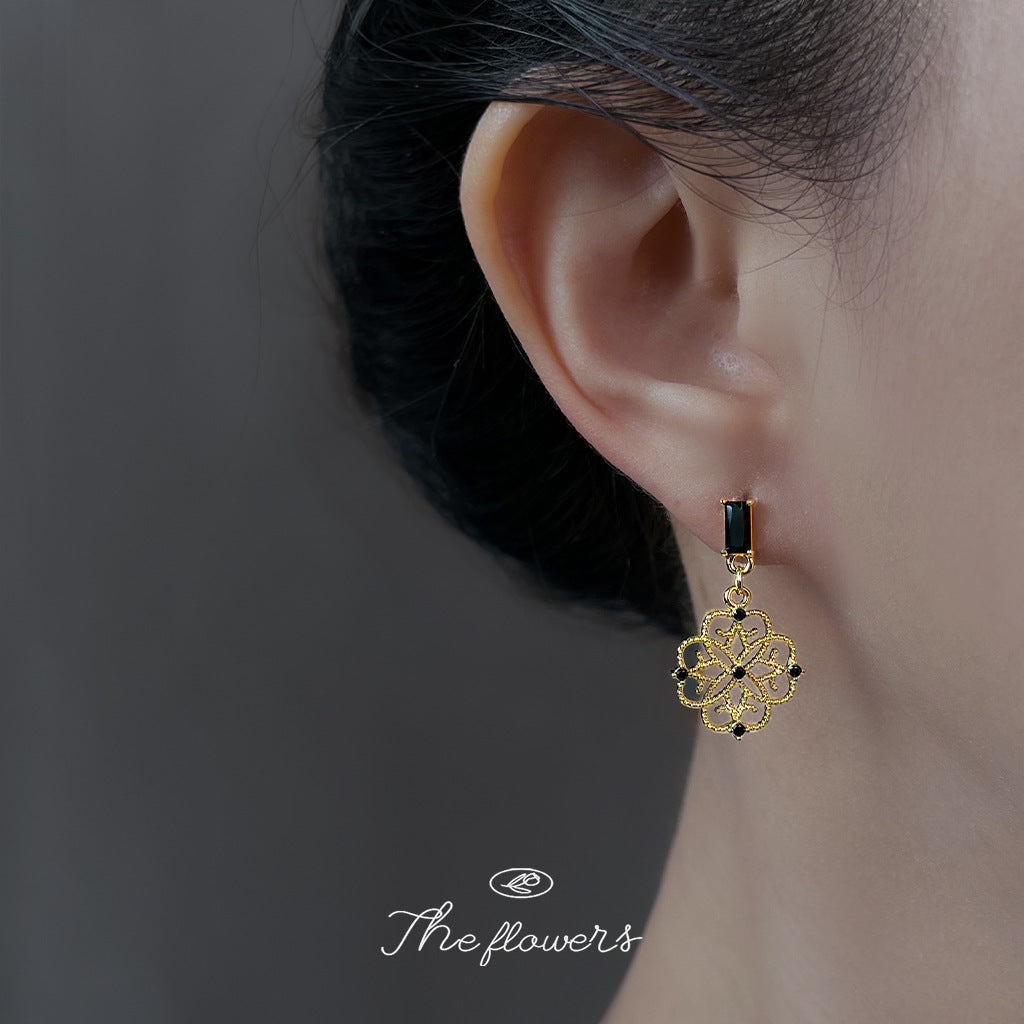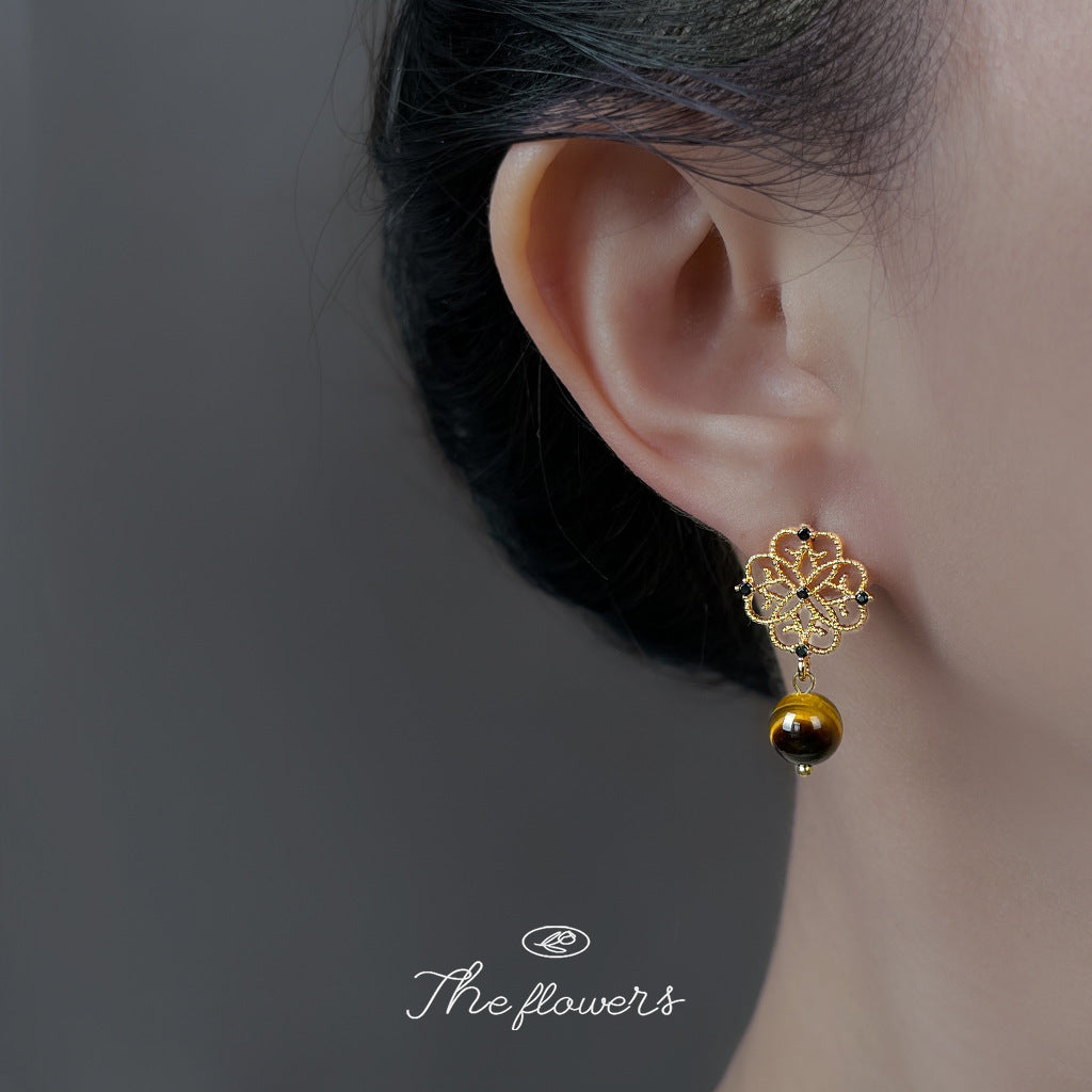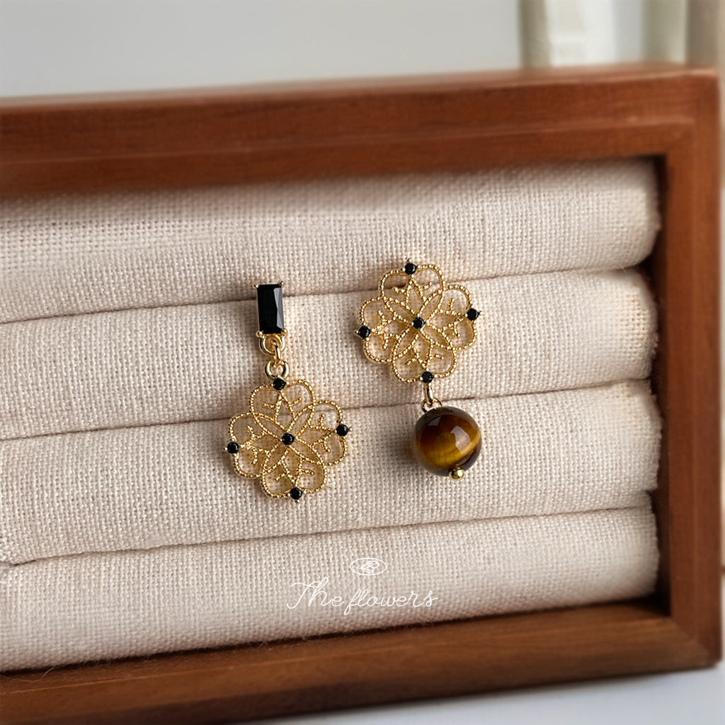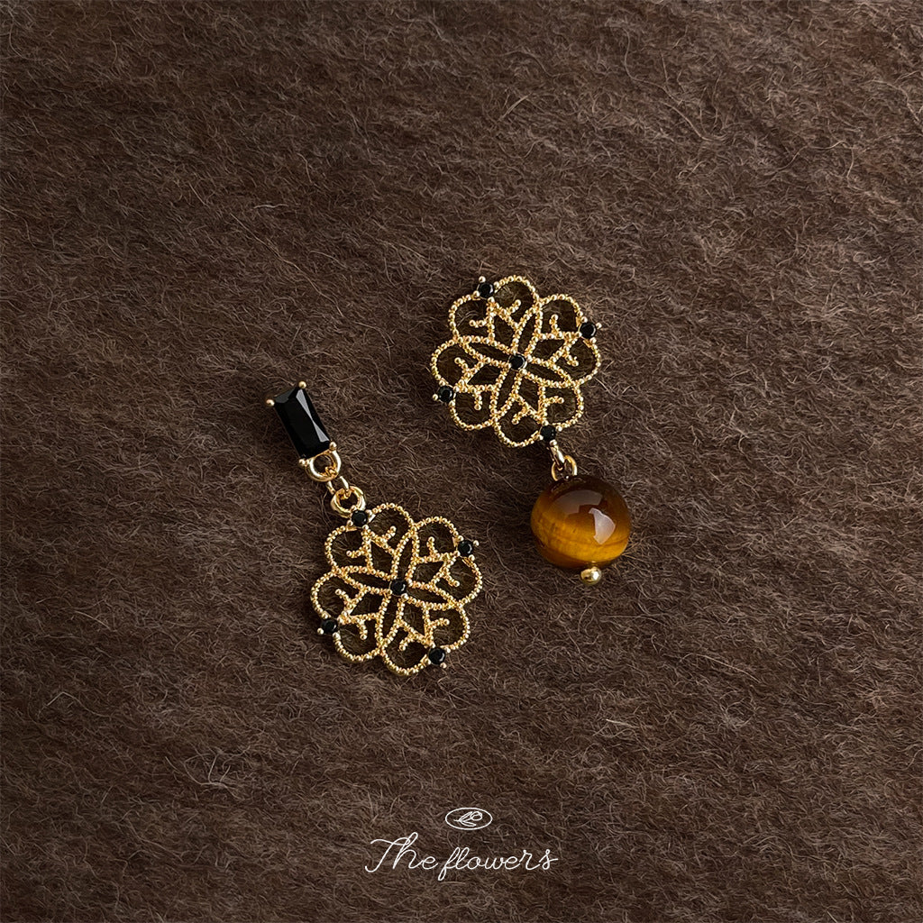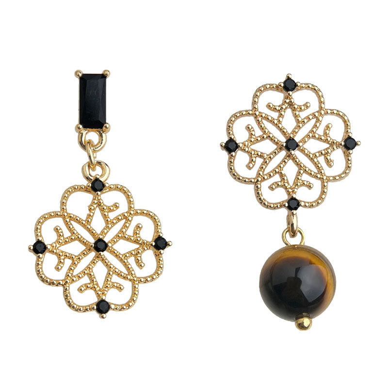 C廠【6952】高級感虎眼石微鑲鋯石925銀針不對稱設計時尚紋理幾何耳飾 耳環女 25.10-4