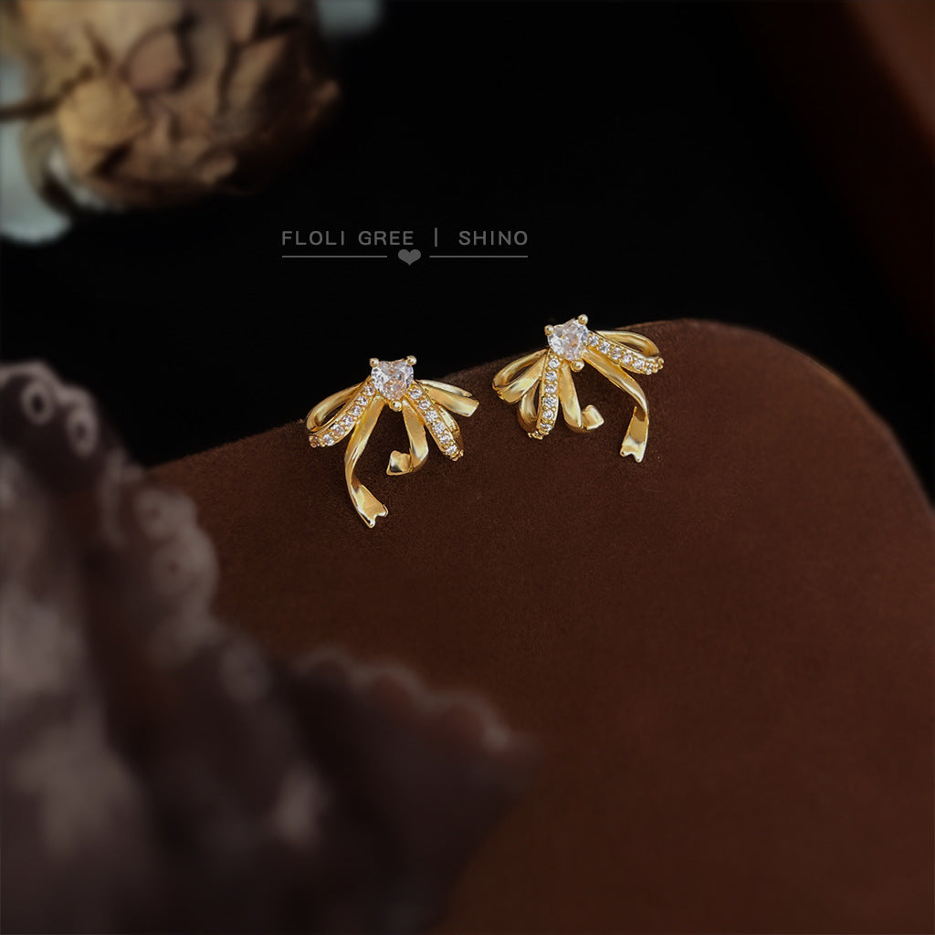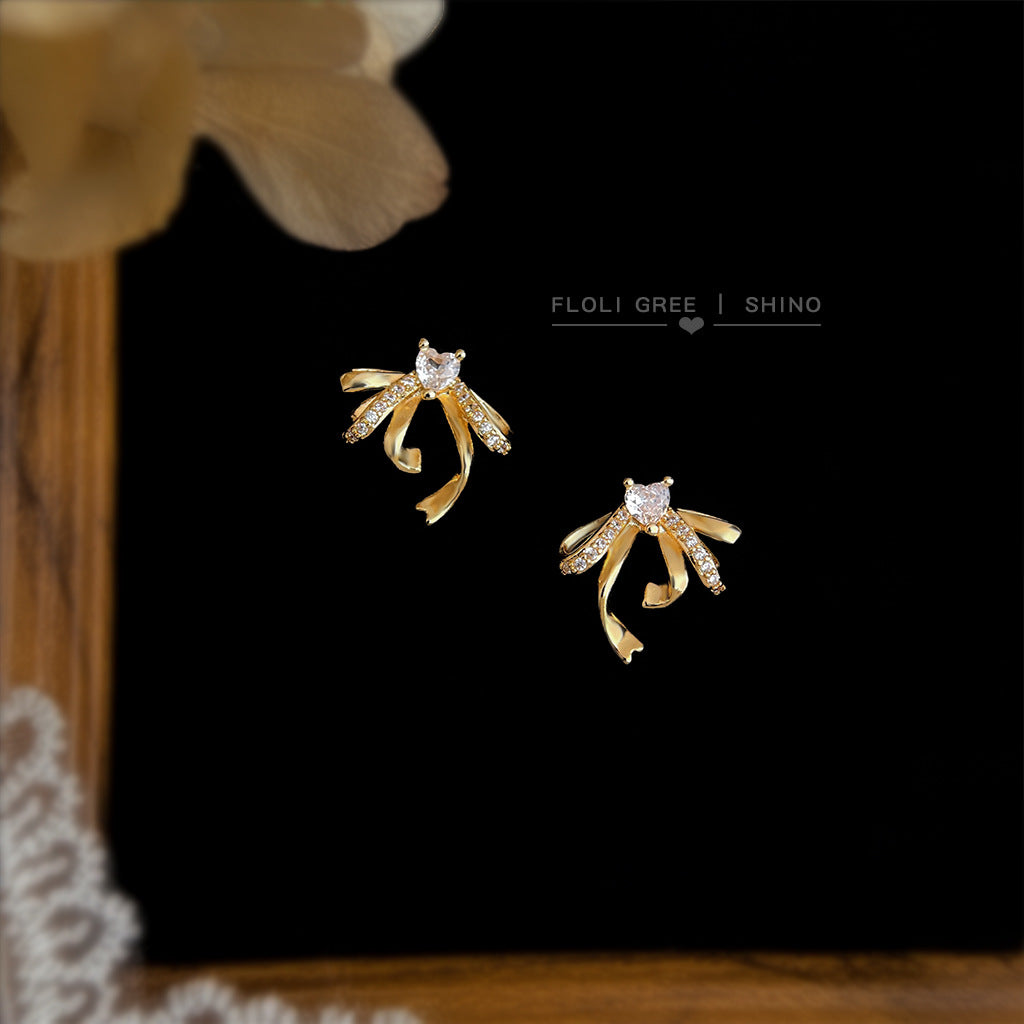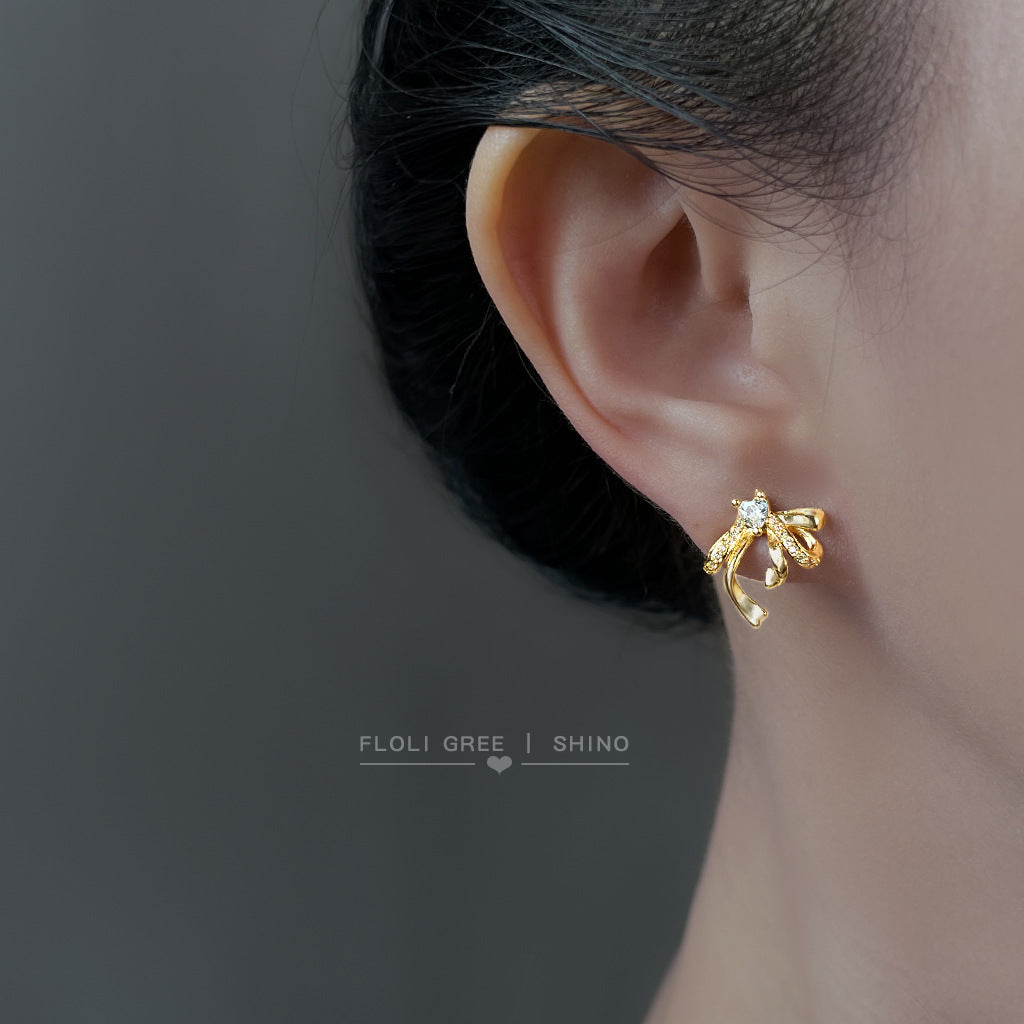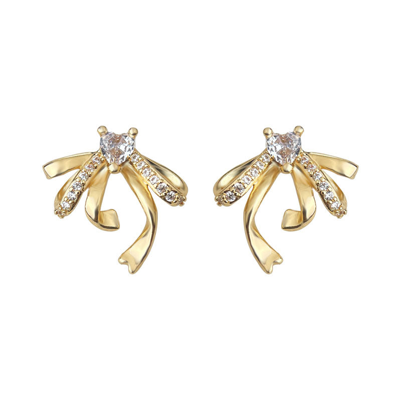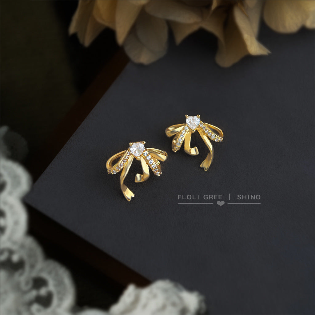 C廠【6953】微鑲鋯石立體飄帶蝴蝶結鋯石925銀針耳環 時尚高級感新款耳飾 25.10-4