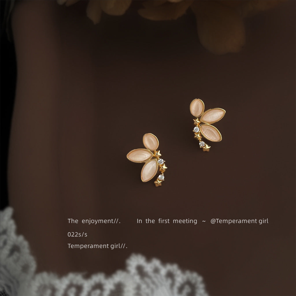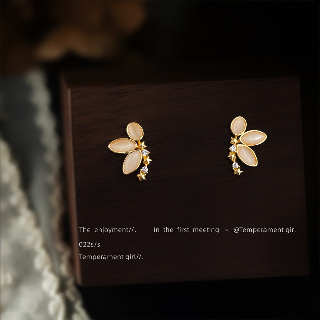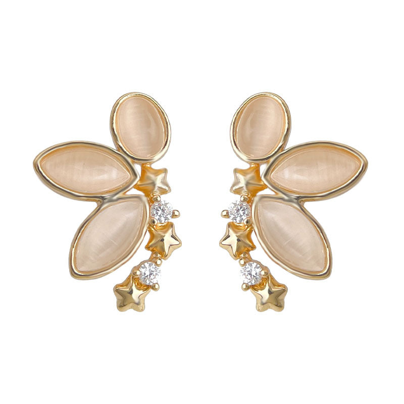 C廠【6959】原創設計玻璃貓眼石925銀針微鑲鋯石時尚高級感蝴蝶耳環耳飾 25.10-4