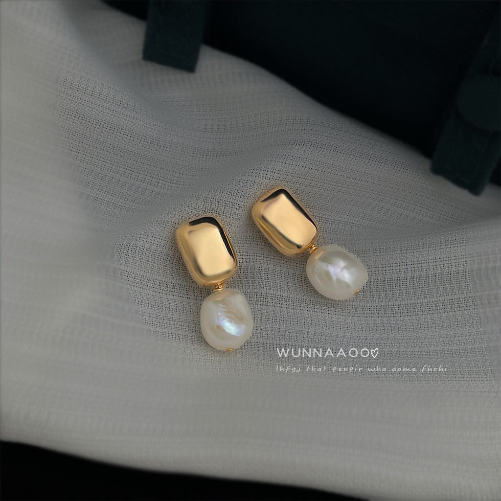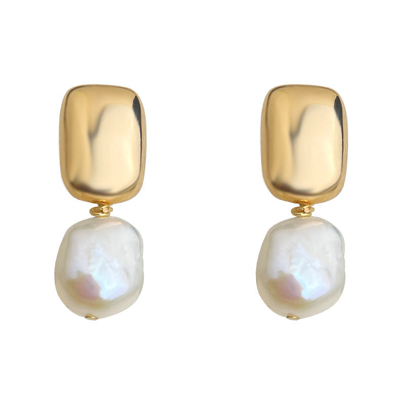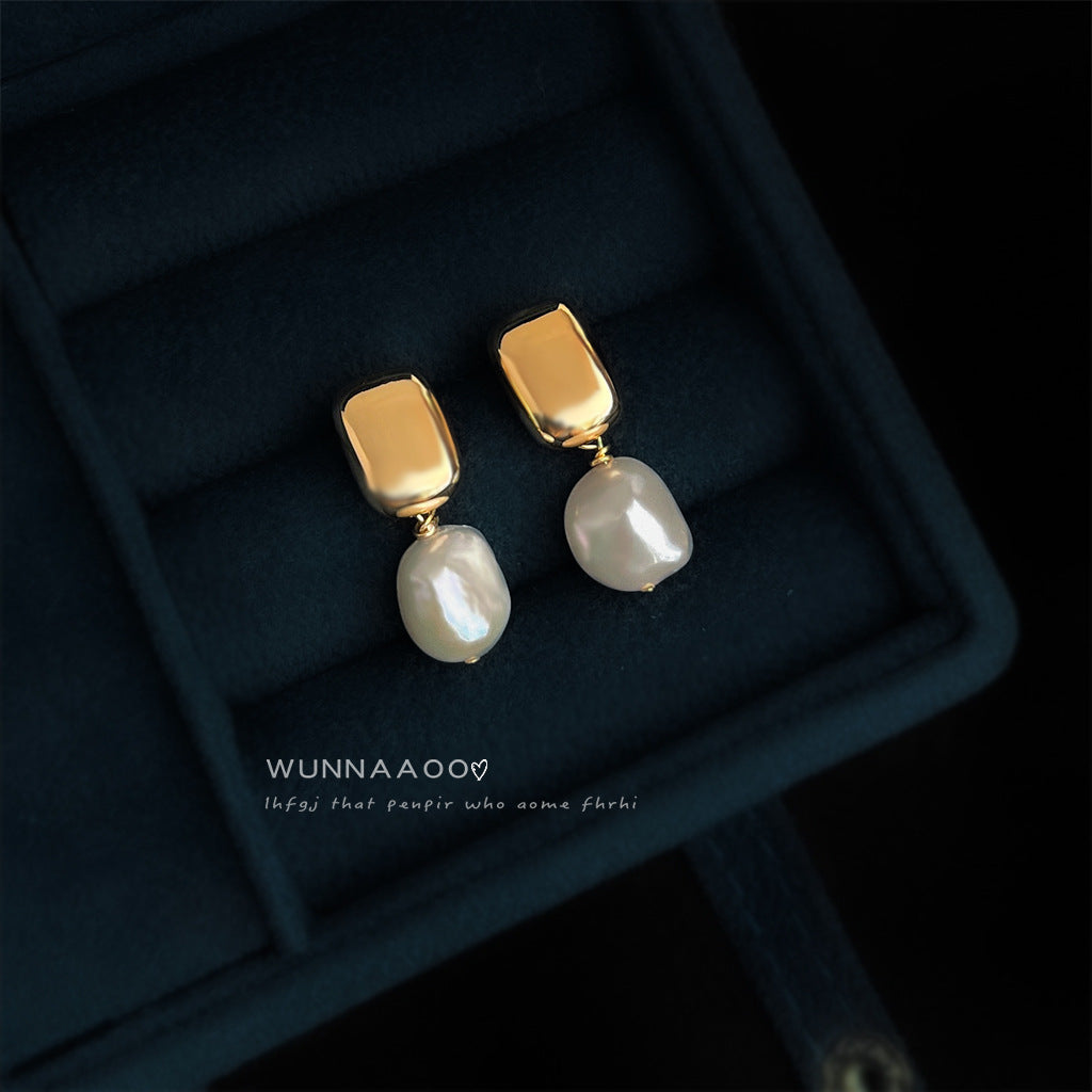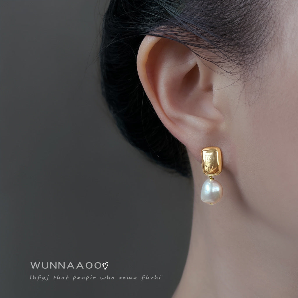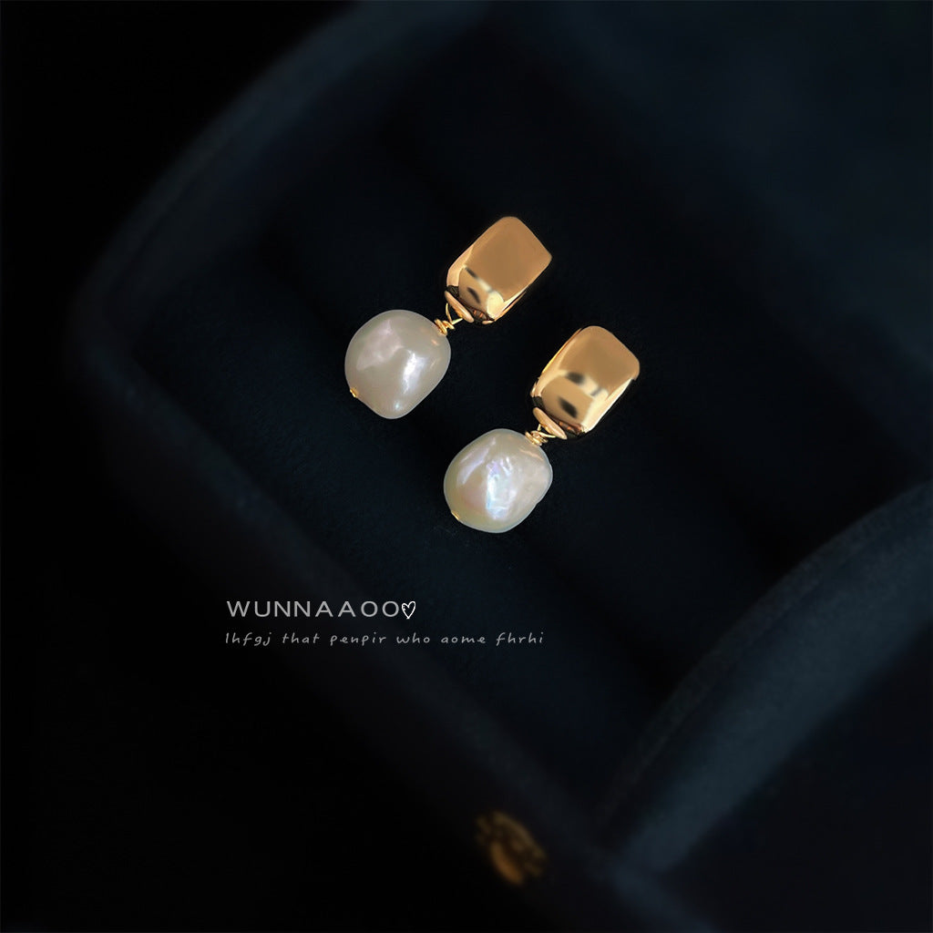 C廠【6963】巴洛克淡水珍珠不規則異形時尚通勤簡約手工耳環女鍍14K 新款耳環 25.10-4