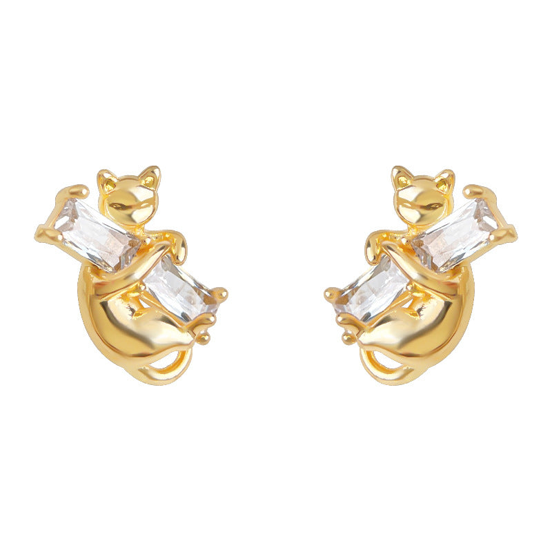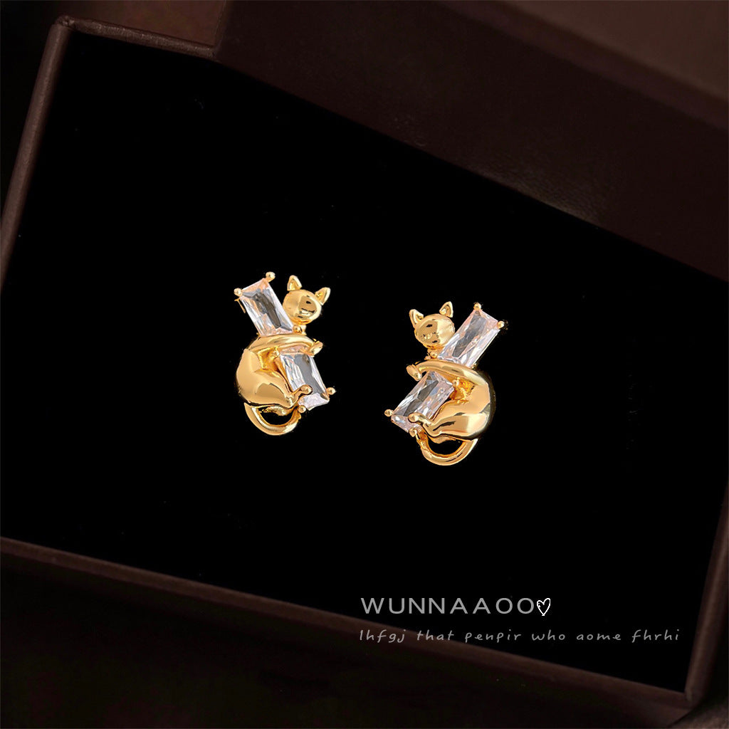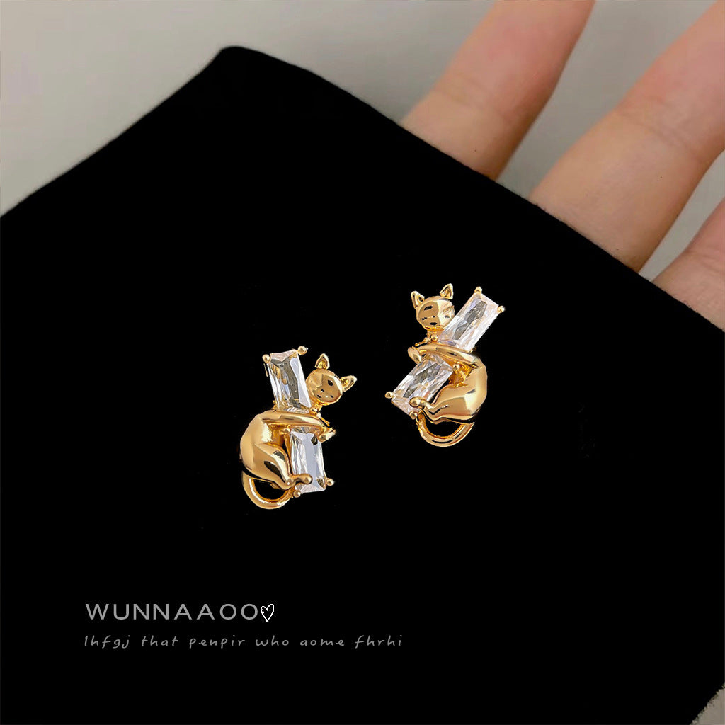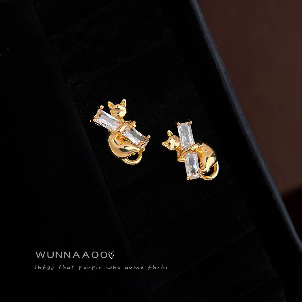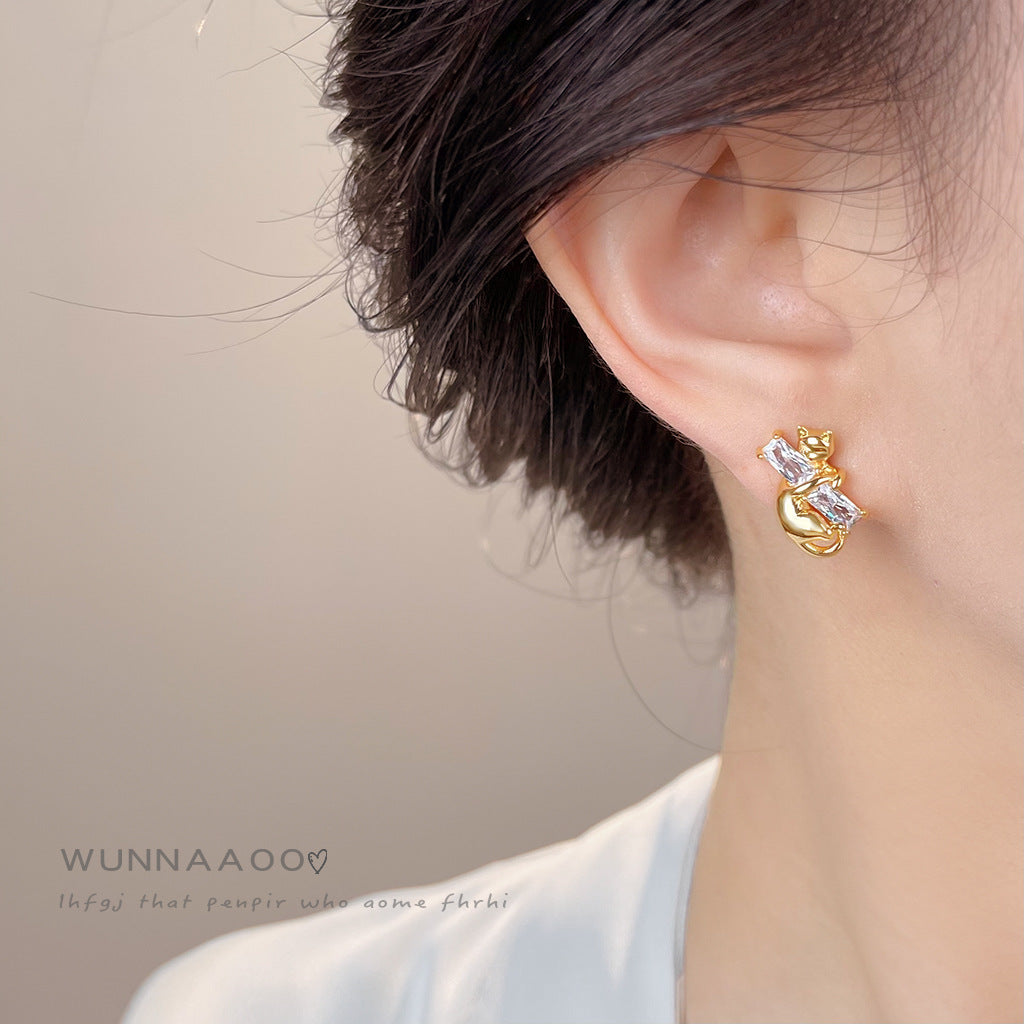 C廠【6991】原創貓咪鑲嵌鋯石925銀針耳環高級感個性小眾ins設計師耳飾耳環女 25.10-5