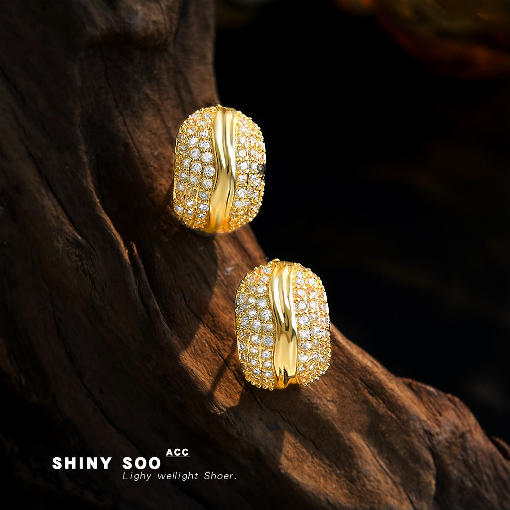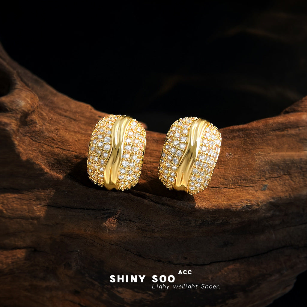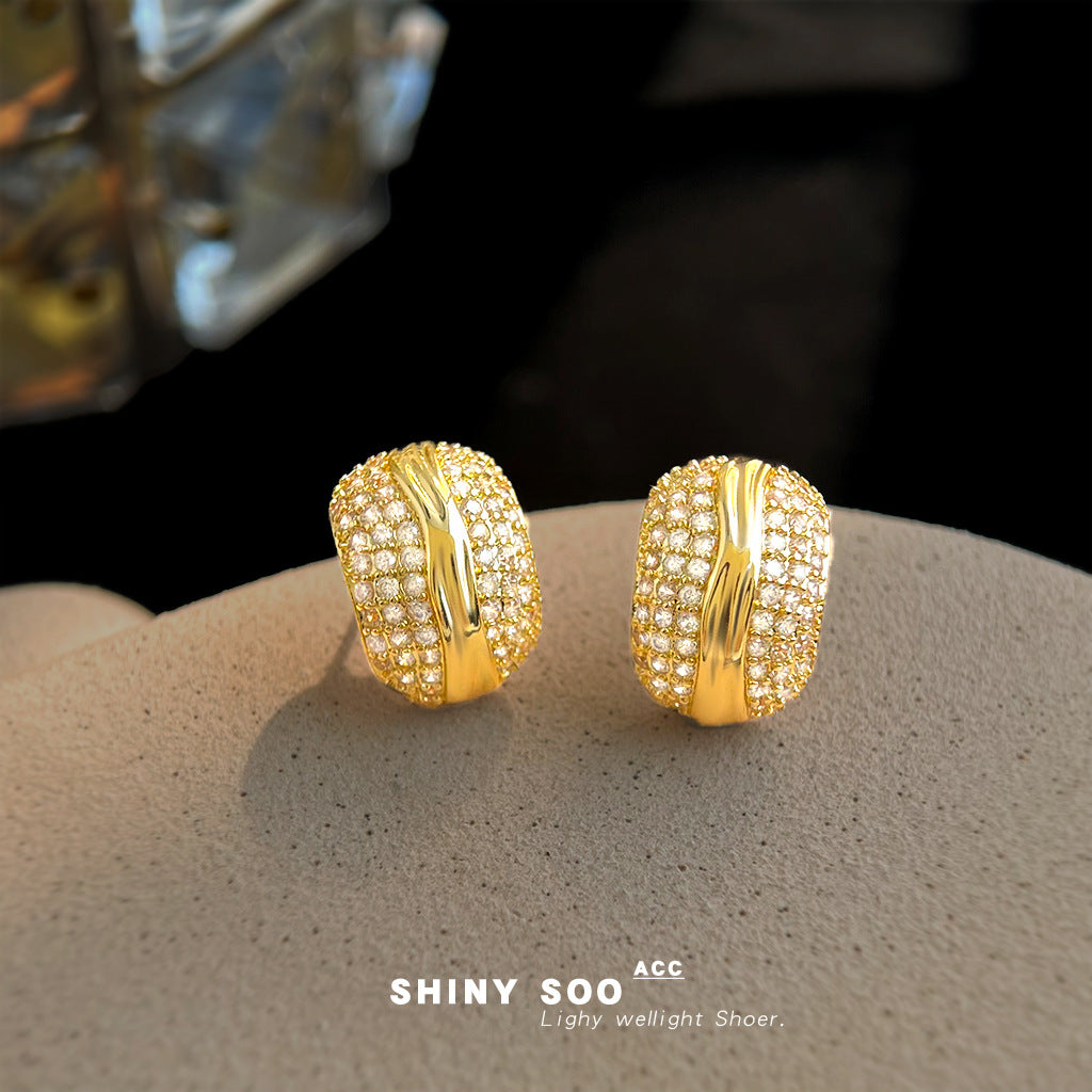 C廠【6992】老錢風滿鋯實物很閃時尚高級感925銀針簡約通勤百搭幾何耳環 耳飾 25.11-1
