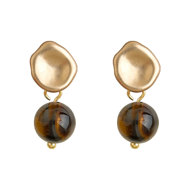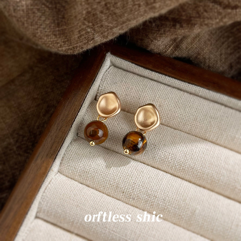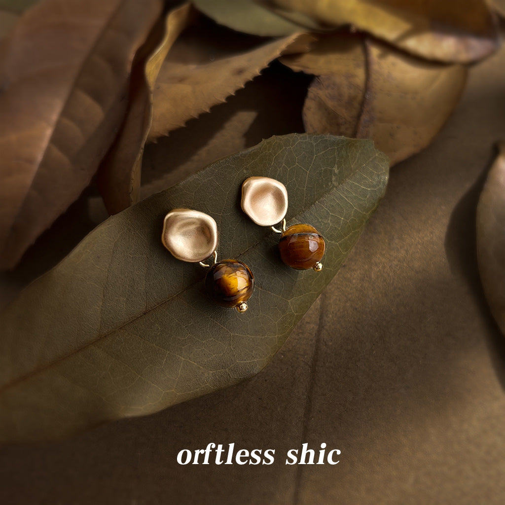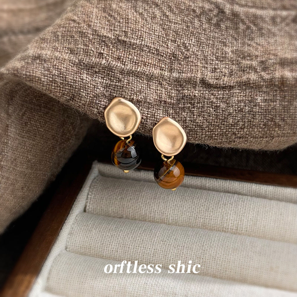 C廠【6994】文藝復古天然石虎眼石925銀針時尚高級感簡約圓形幾何耳環耳環女 25.10-5