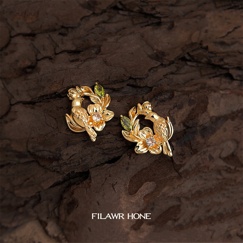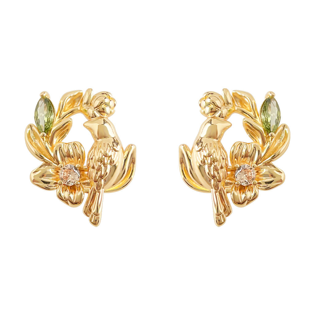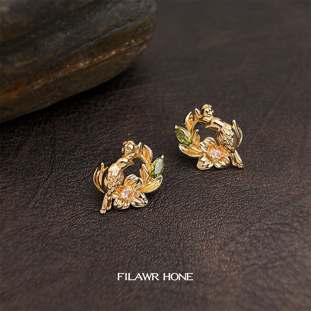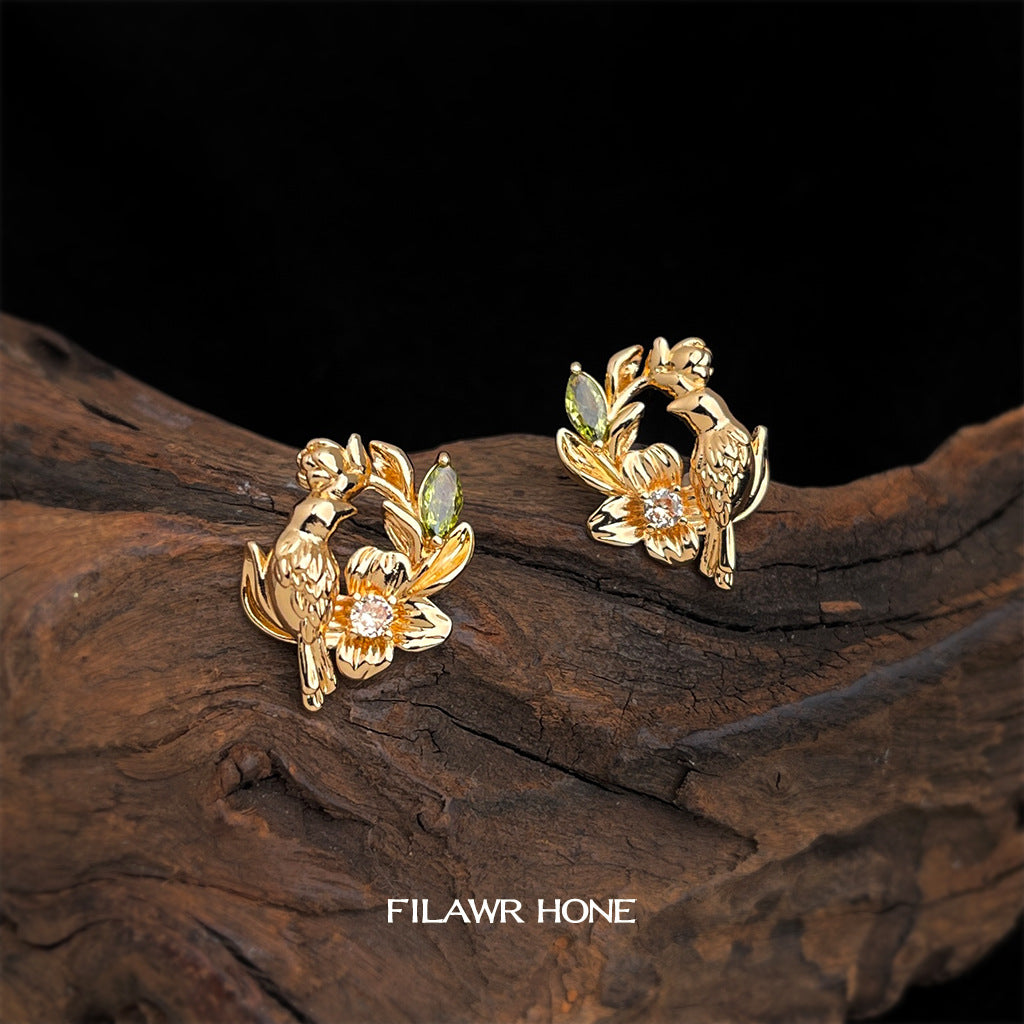C廠【7036】原創輕奢風時尚高級感925銀針設計感花環鳥耳環新款耳環飾品 25.11-1