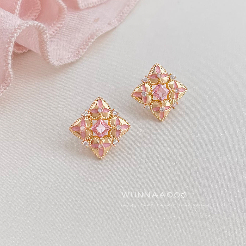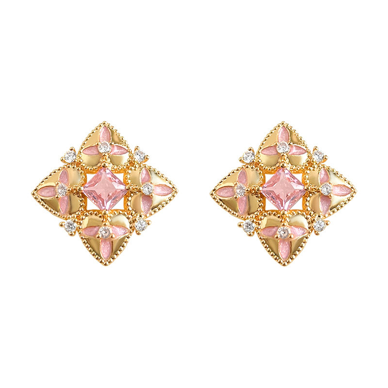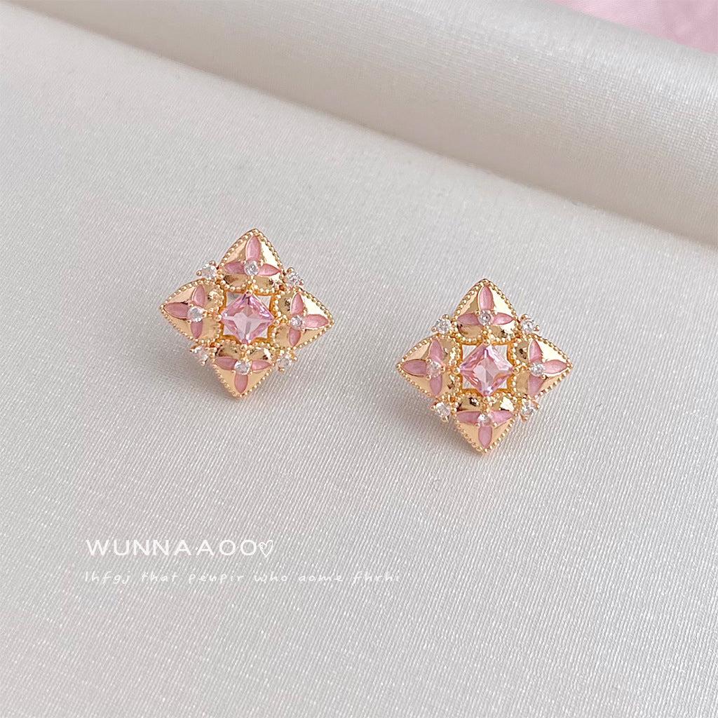 C廠【7044】原創設計微鑲鋯石925銀針彩繪幾何方形時尚輕奢風高級感耳飾 25.11-2