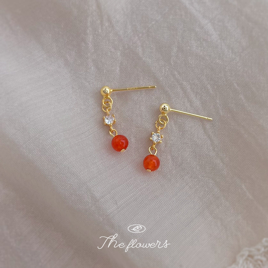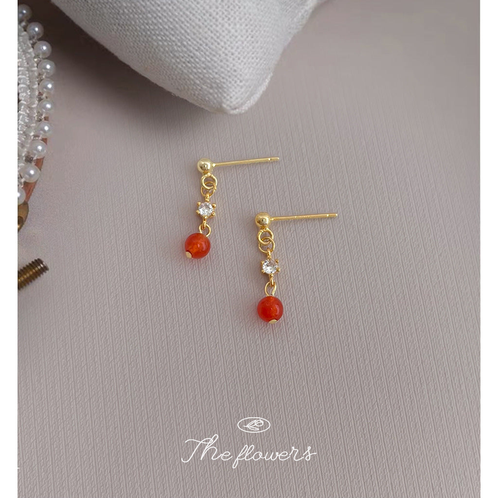 C廠【7052】迷你版簡約小巧紅瑪瑙手工藝設計感新款耳飾鋯石輕奢風飾品 25.11-2