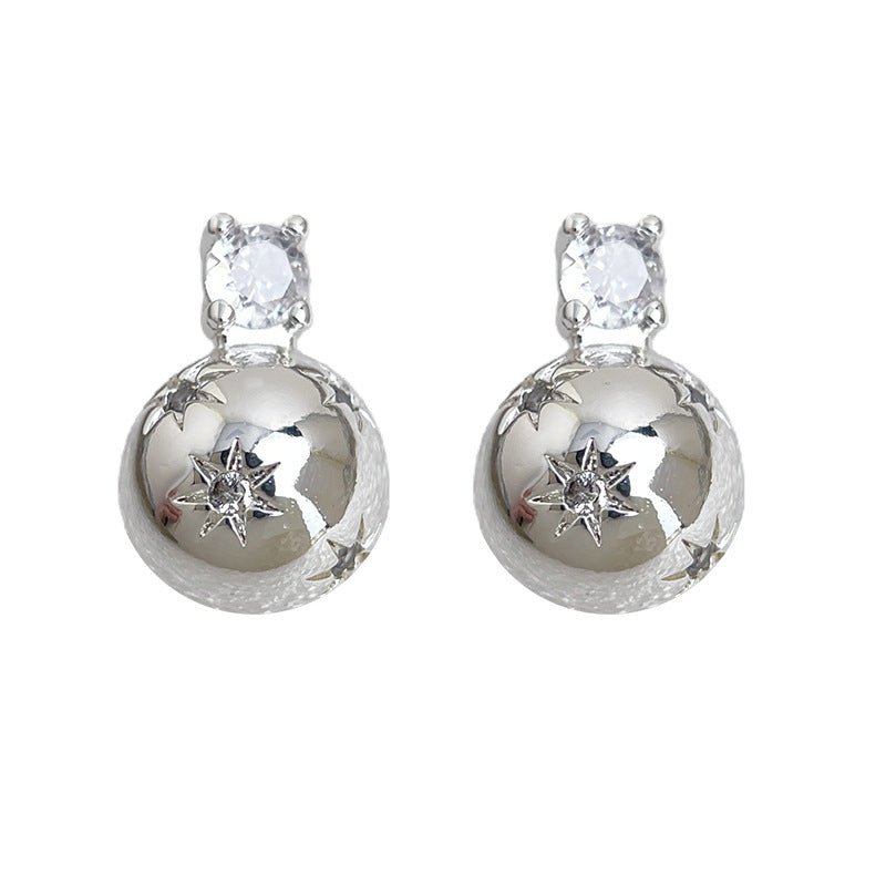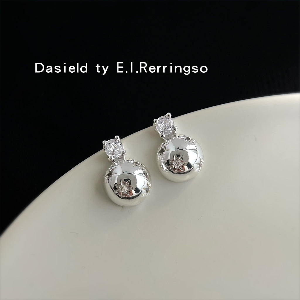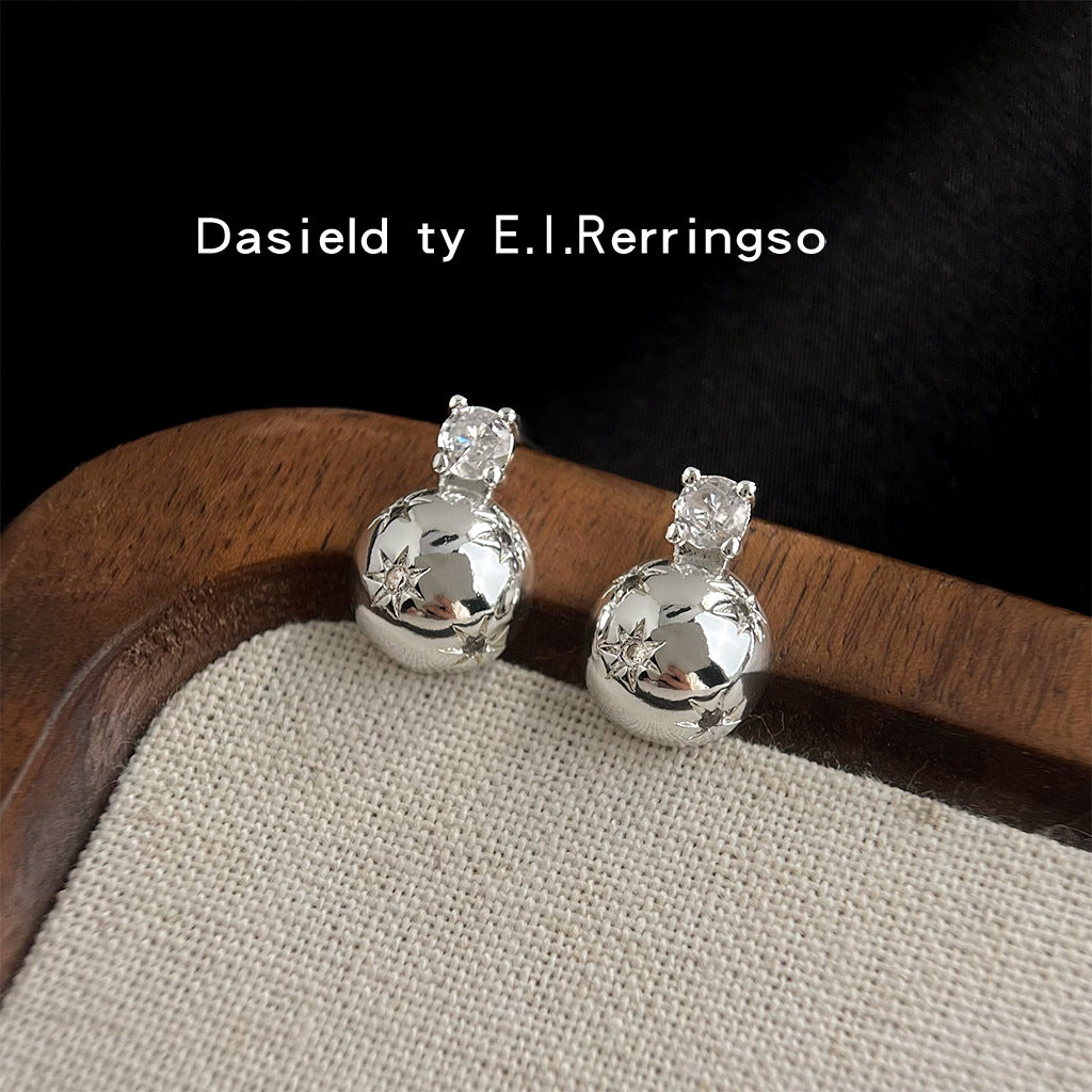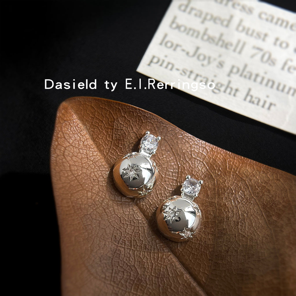 C廠【7056】甜酷風微鑲鋯石芒星925銀針半圓幾何高級感個性新款 25.11-2