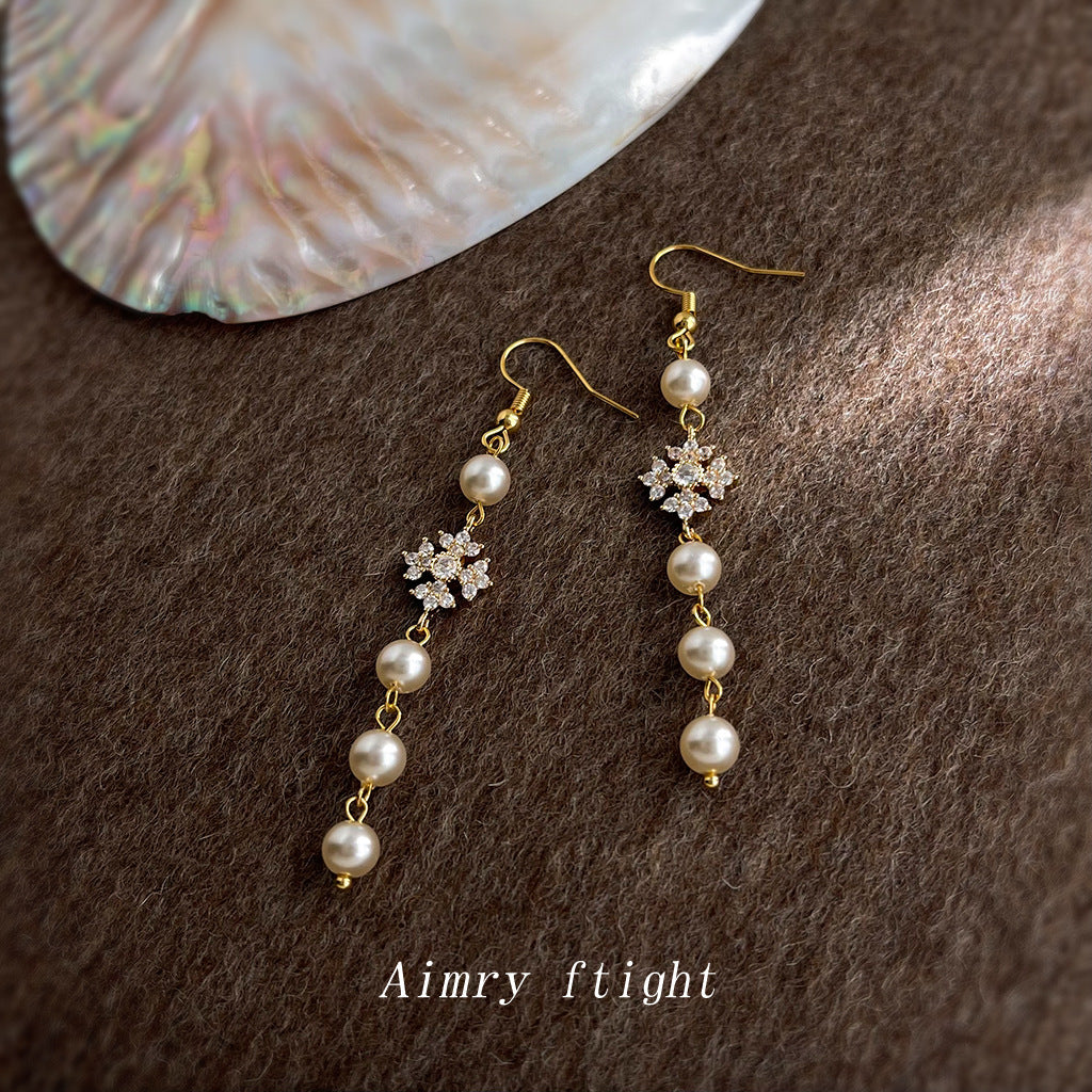 C廠【7064】微鑲鋯石法式長款珍珠流蘇手工設計感新款飾品 25.11-2