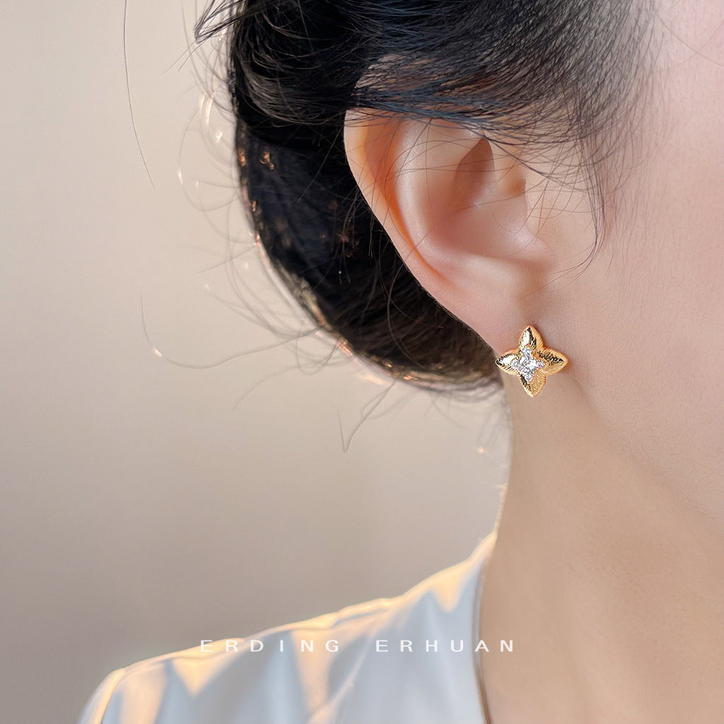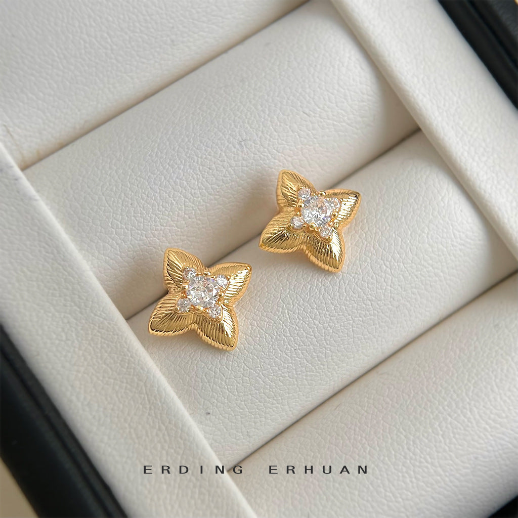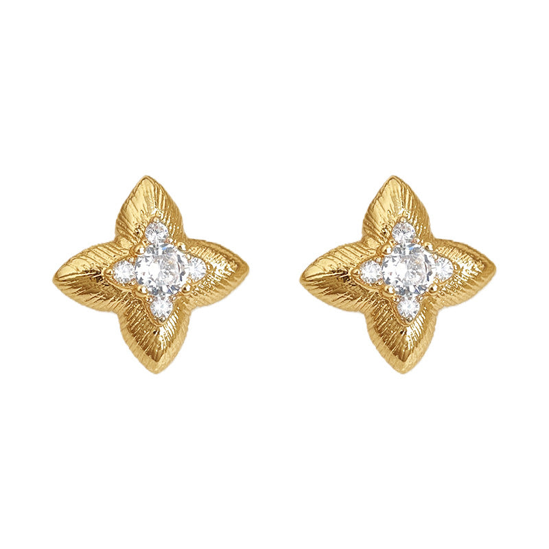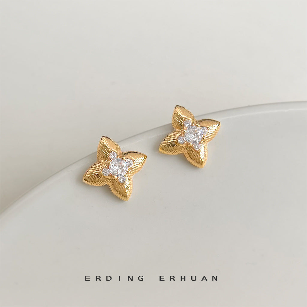 C廠【7075】老錢風時尚高級感微鑲鋯石925銀針鍍14K通勤簡約芒星 25.11-2