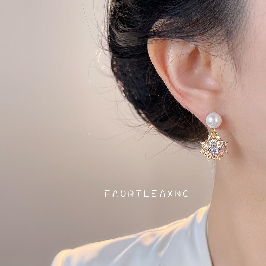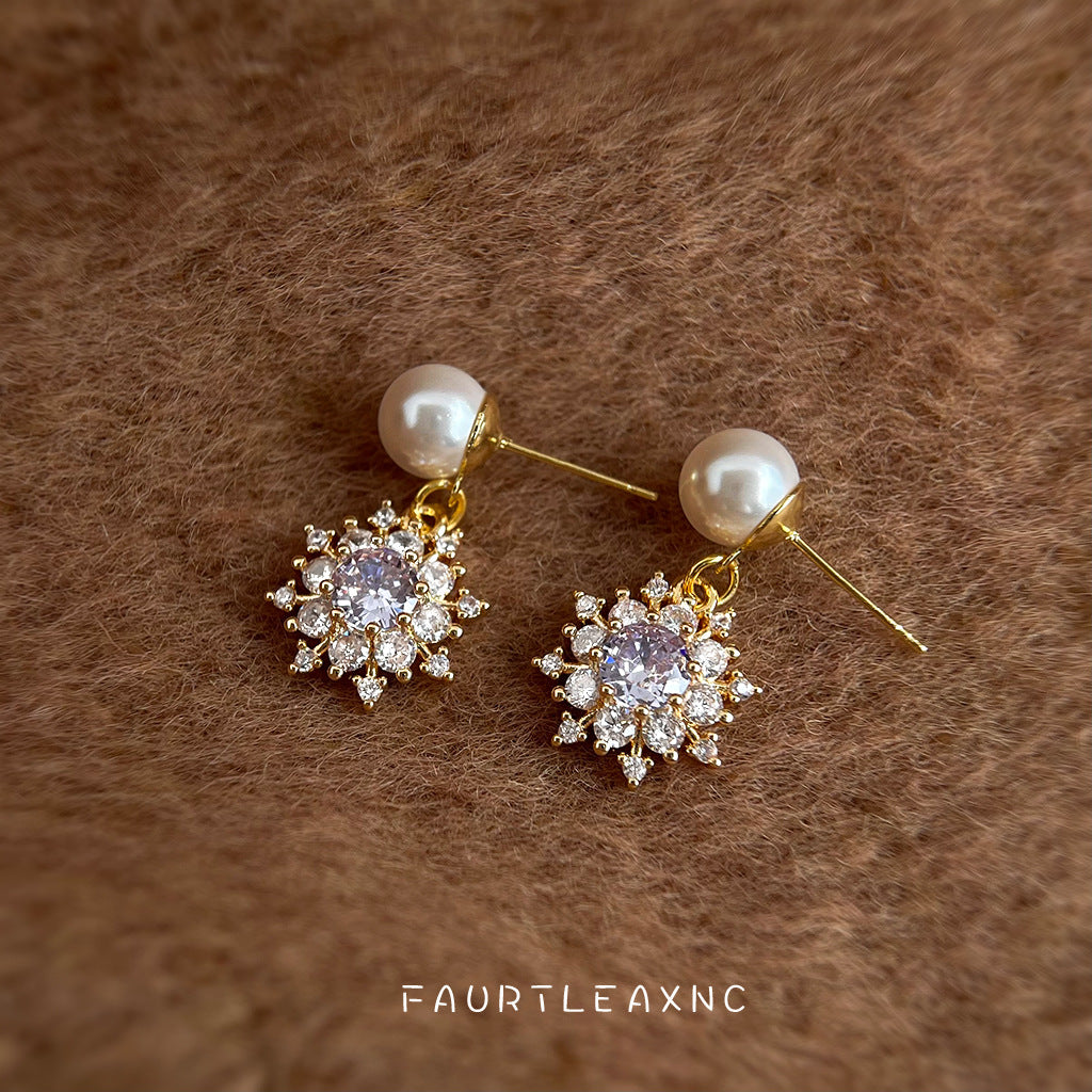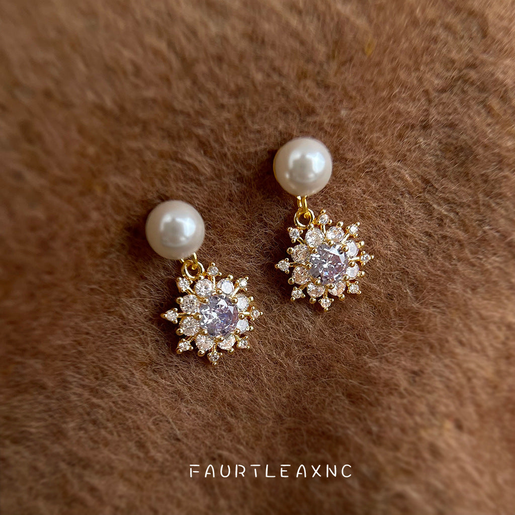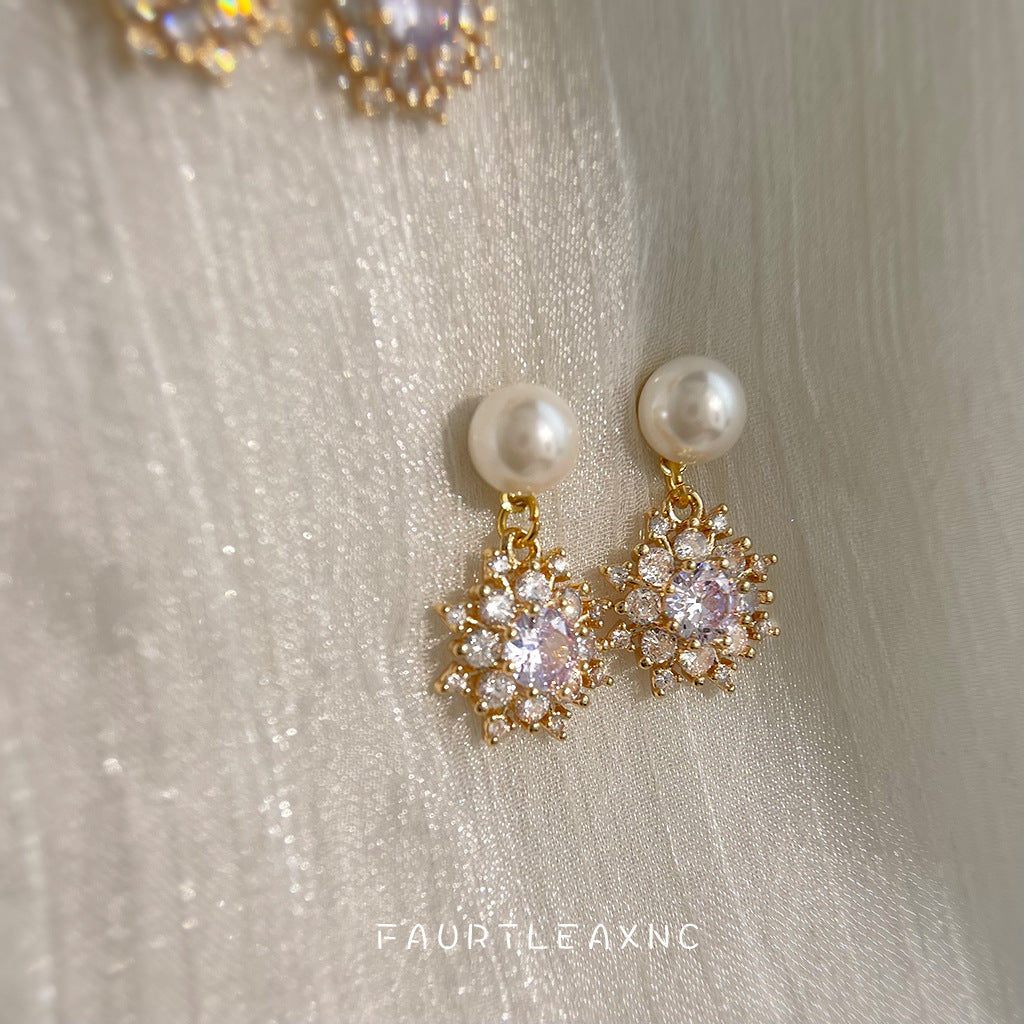 C廠【7078】時尚輕奢高級感鋯石雪花珍珠氣質唯美新款手工耳飾 25.11-2