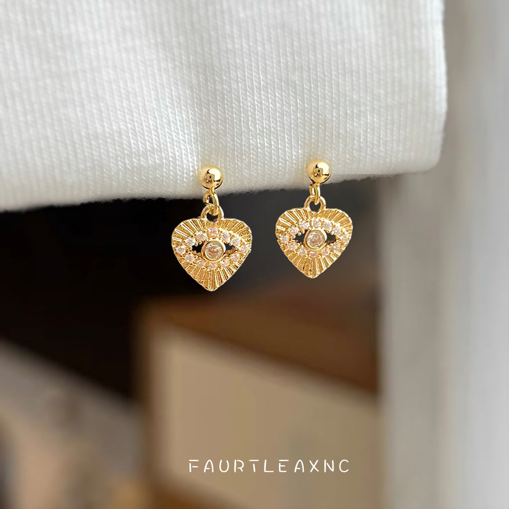 C廠【7082】實物很小迷你簡約小巧微鑲鋯石眼睛愛心時尚通勤飾品 25.11-2
