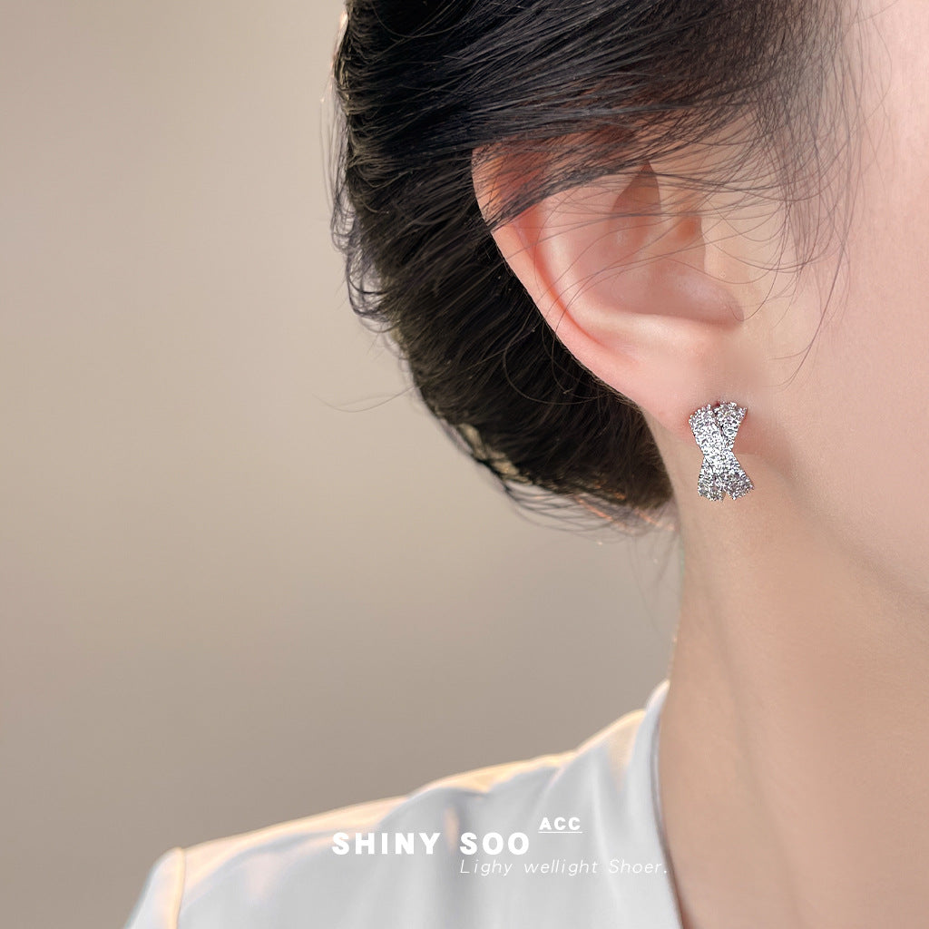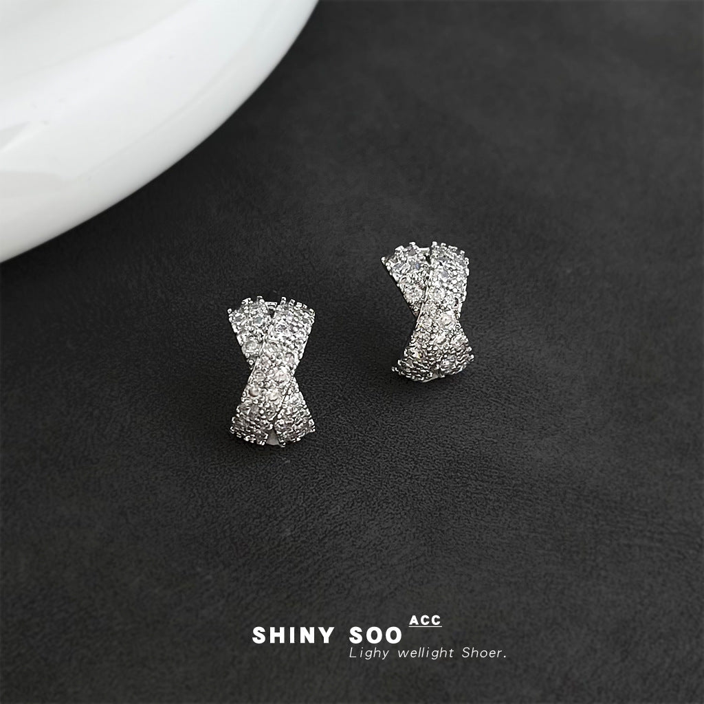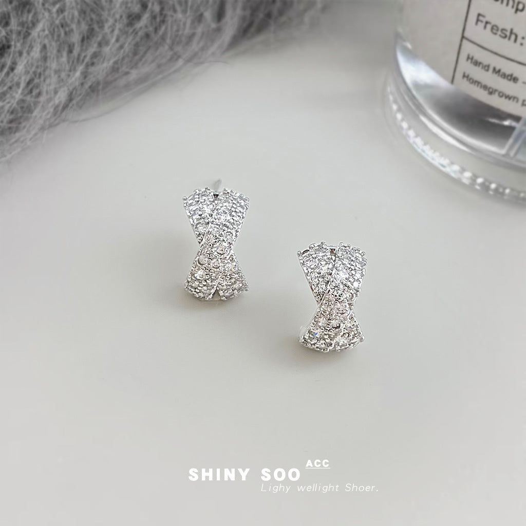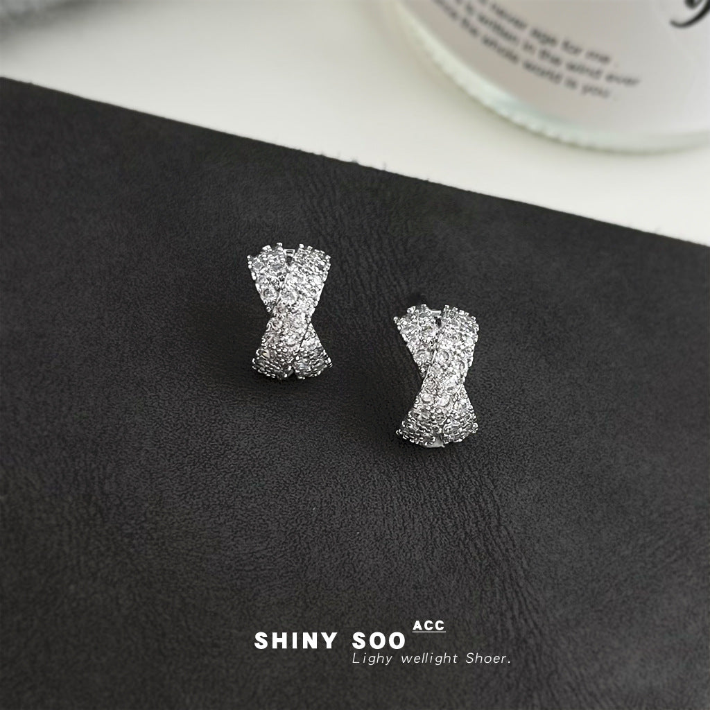 A廠【7088】實物很閃鑲嵌鋯石幾何輕奢風簡約高級感s925銀針新款耳環 25.11-3