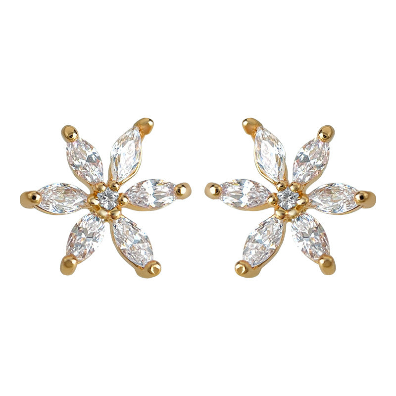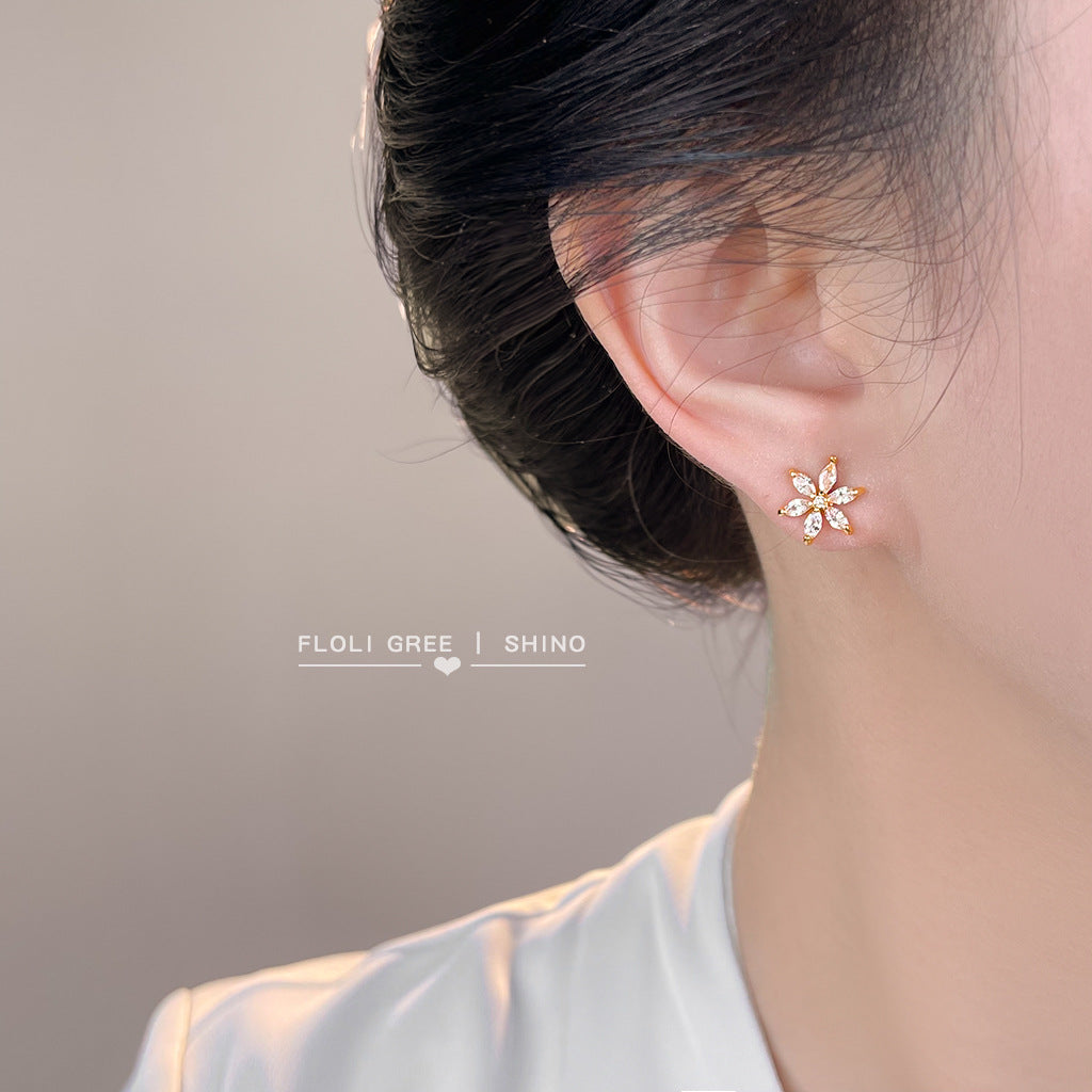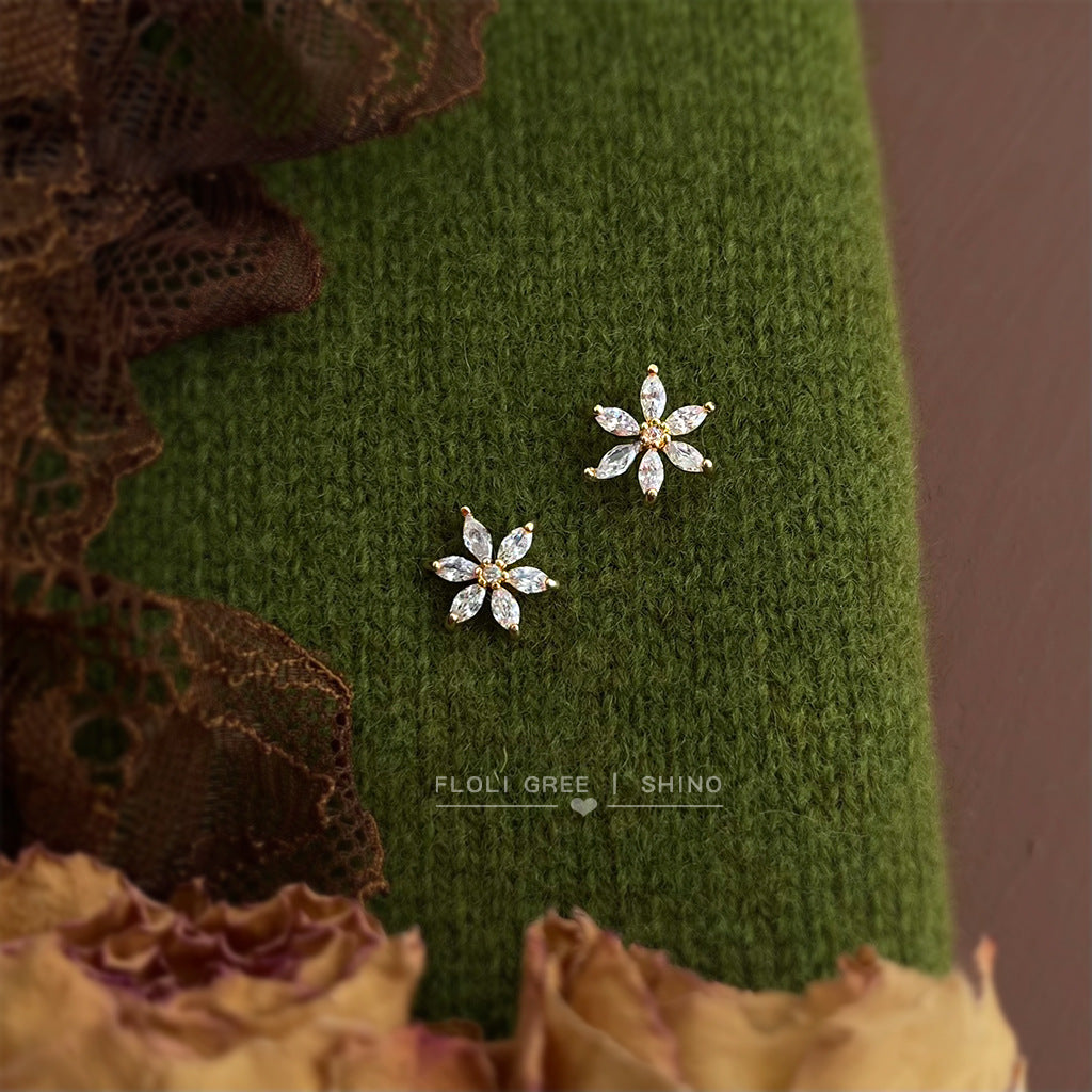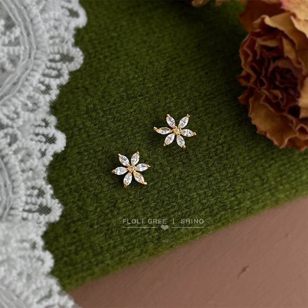 A廠【7099】清新甜美學院風簡約小巧時尚通勤百搭鋯石花朵小耳環耳飾飾品 25.11-3