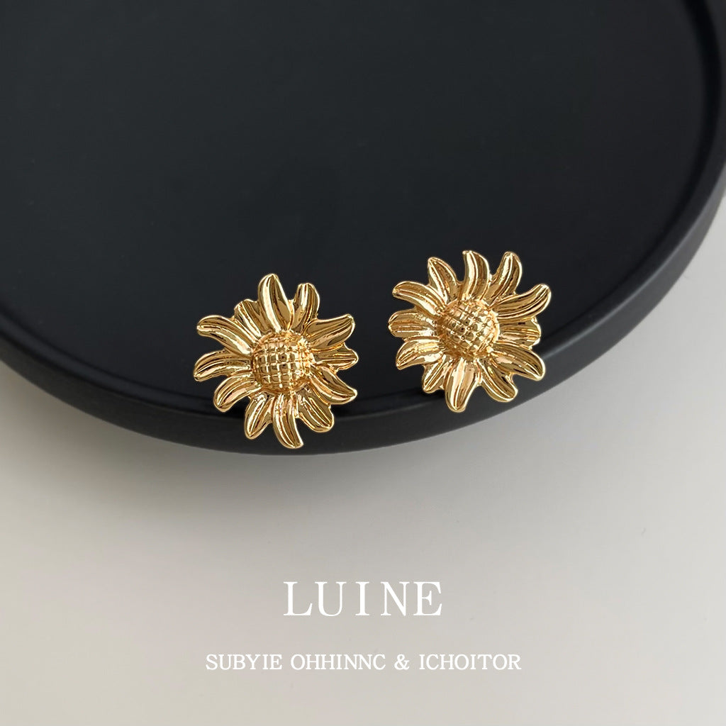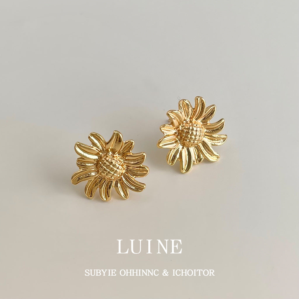 A廠【7100】簡約時尚高級感雛菊花朵中古風耳環女氣質新款文藝復古向日葵耳飾 25.11-3