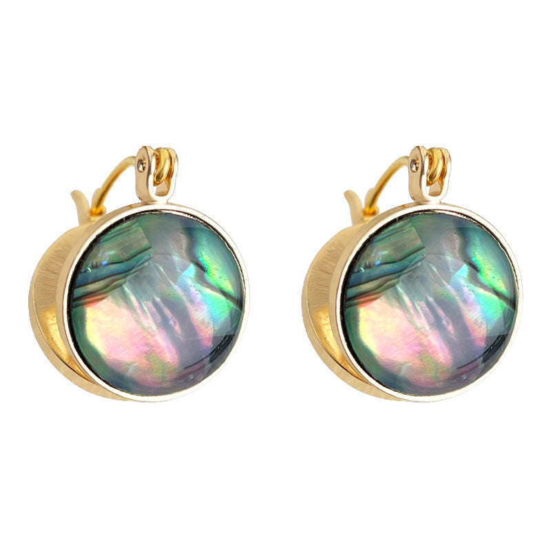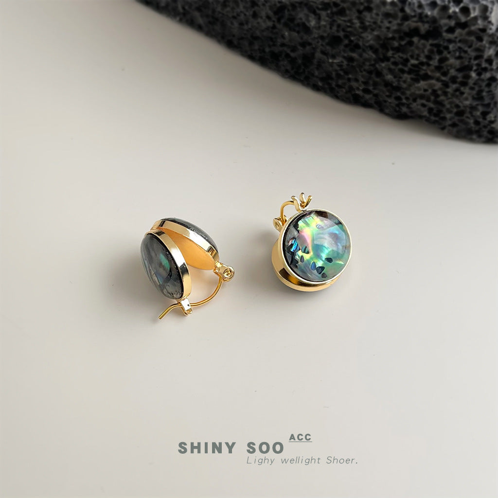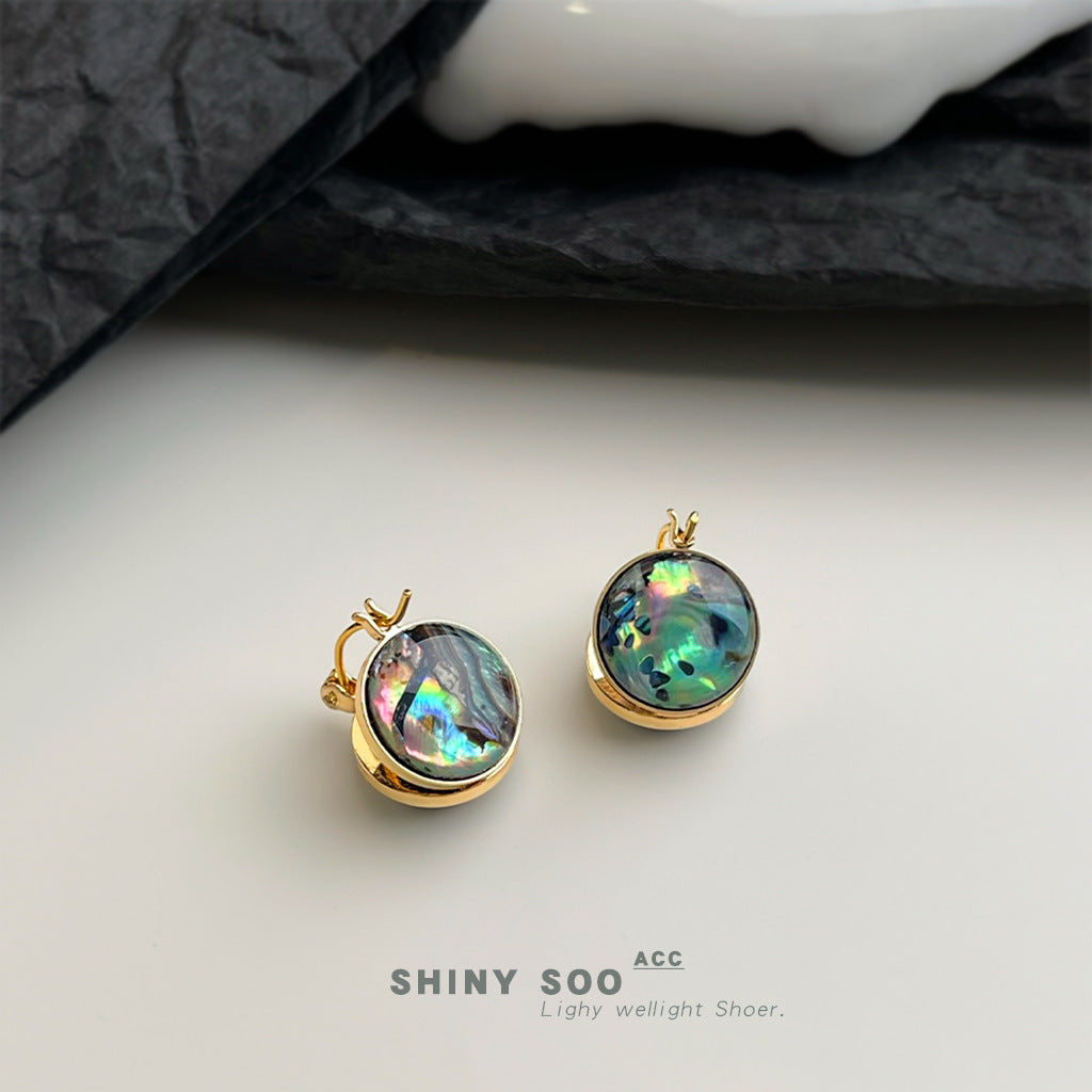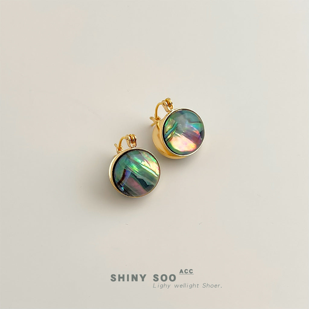 A廠【7101】鮑魚貝!時尚高級感輕奢風中古圓形幾何雙面耳飾貝殼耳環飾品 25.11-4