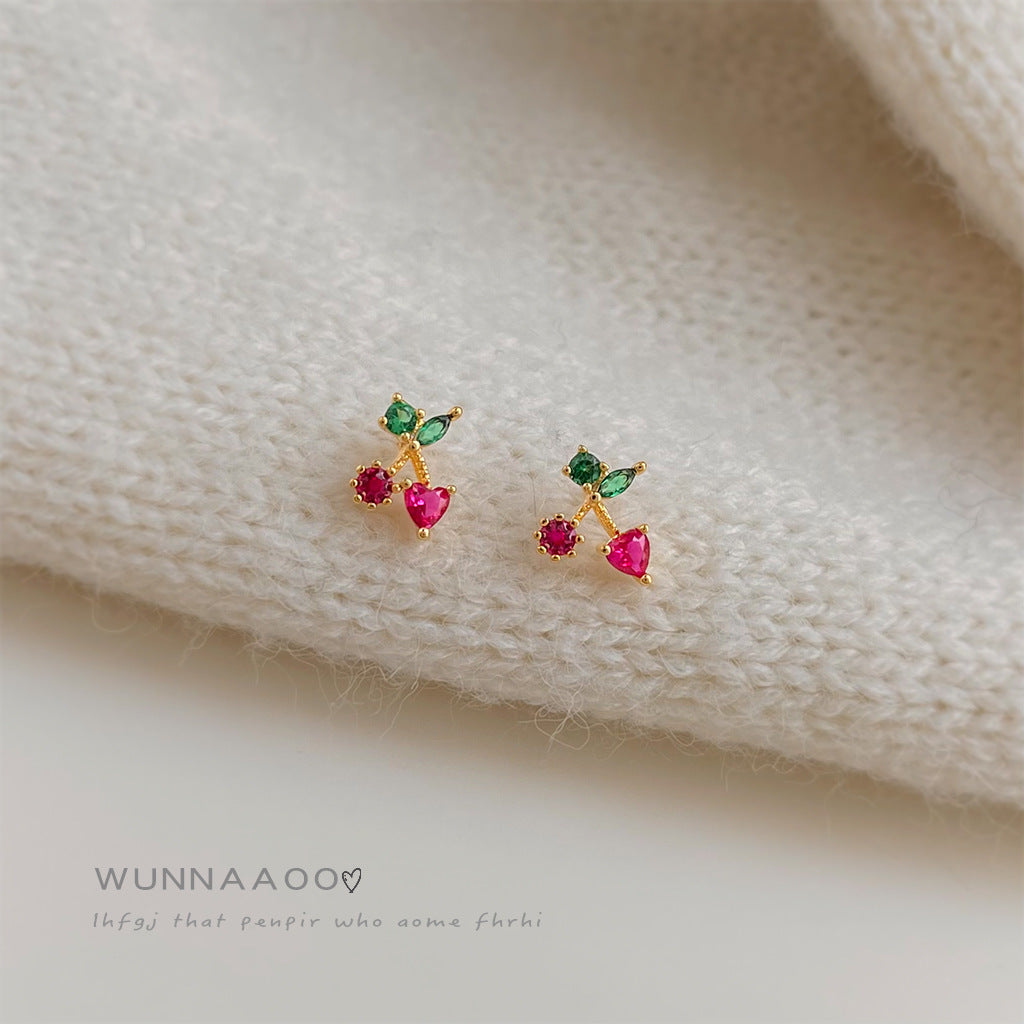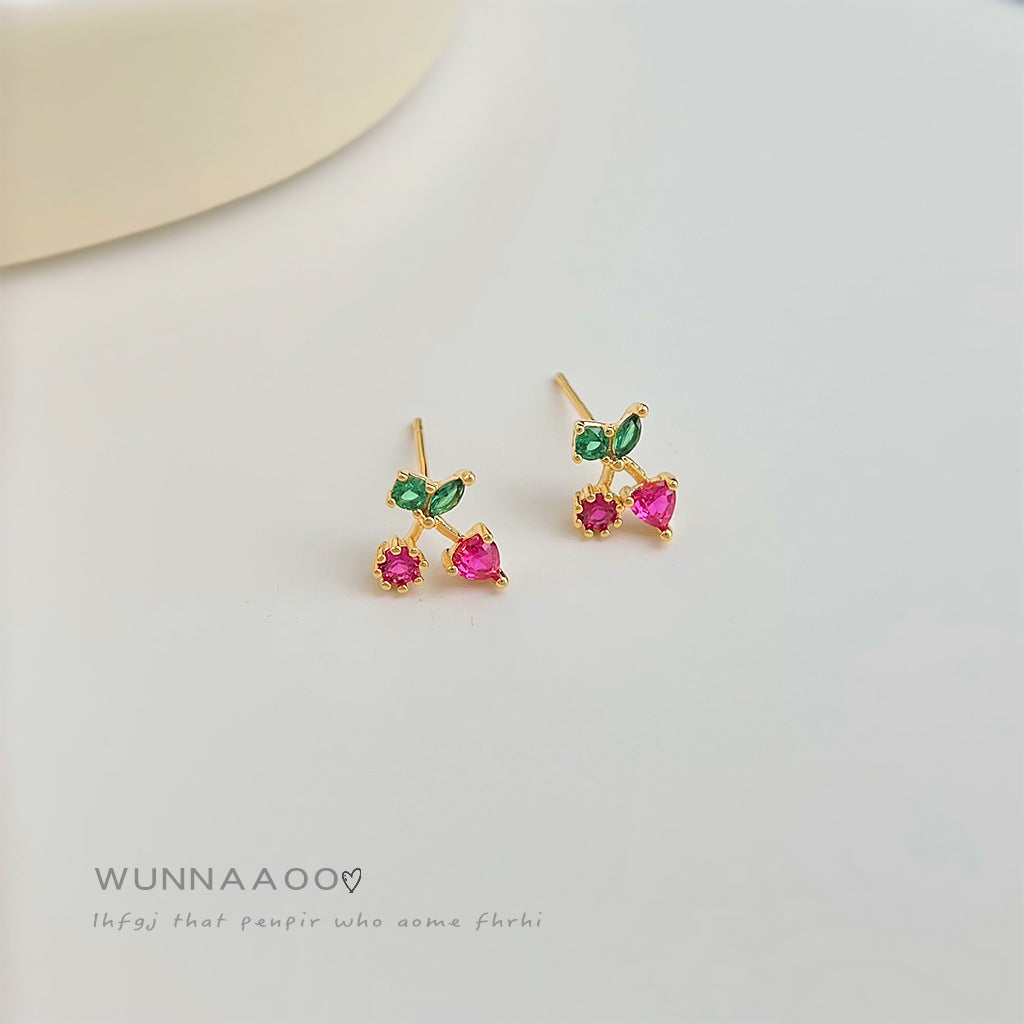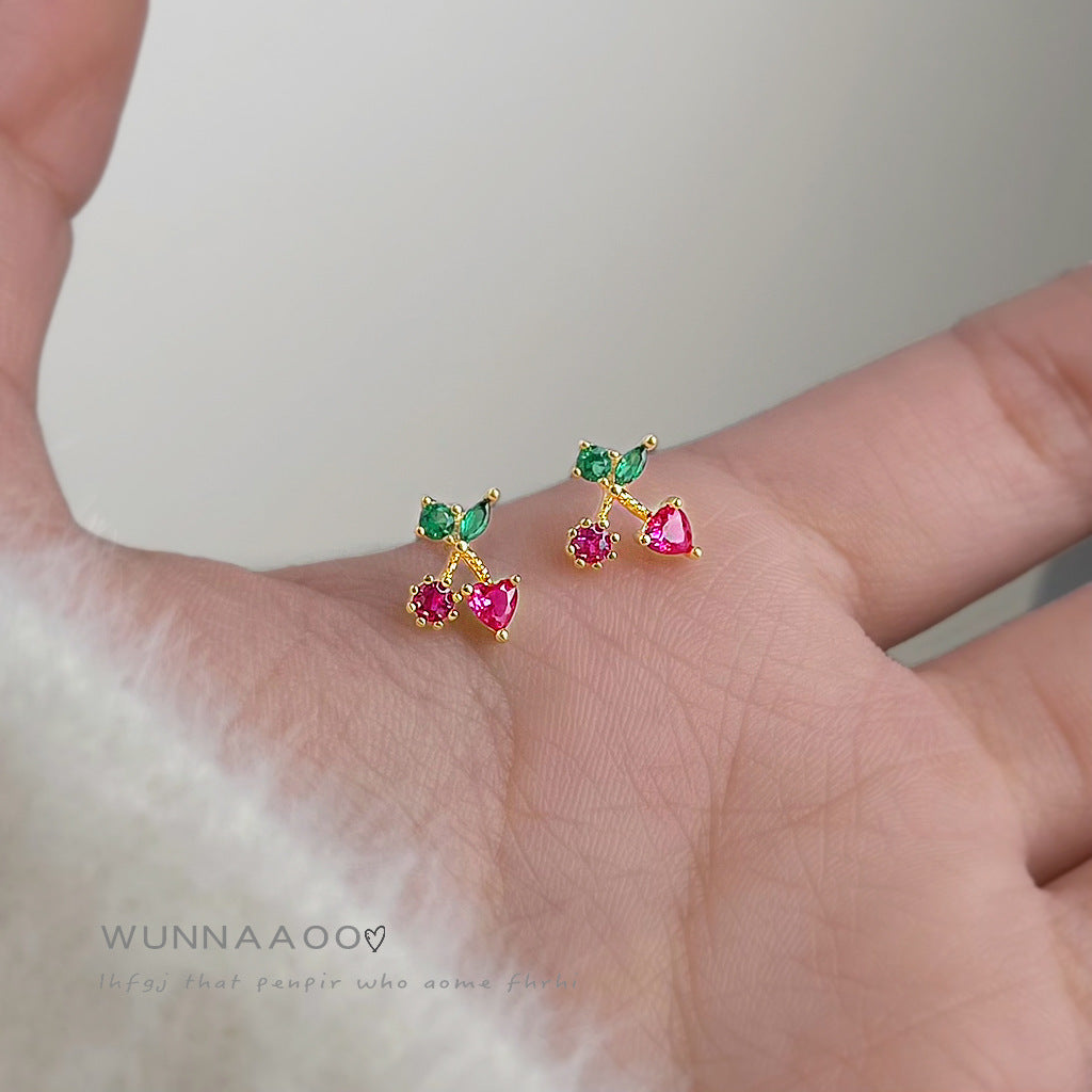 A廠【7111】迷你可愛清新甜美微鑲鋯石小櫻桃耳環925銀針新款跨境 耳飾女 25.11-3