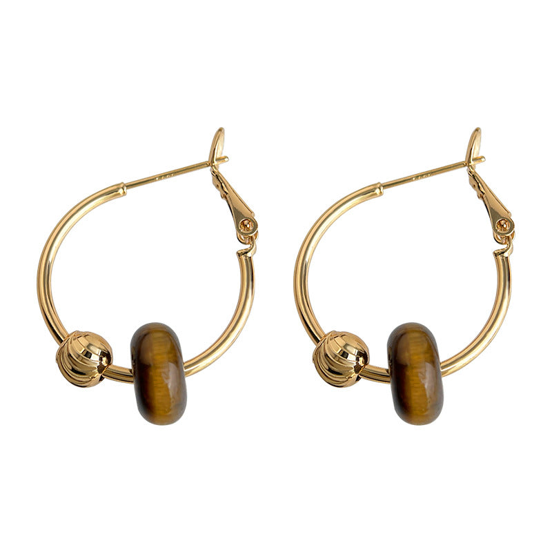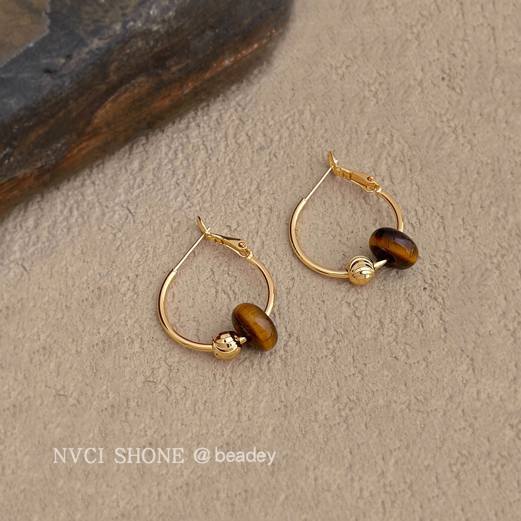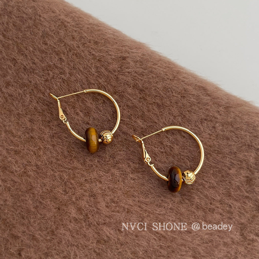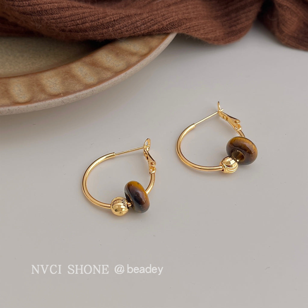 A廠【7113】文藝復古天然石虎眼石圓形幾何銀針高級感耳環女圈新款耳環 25.11-3