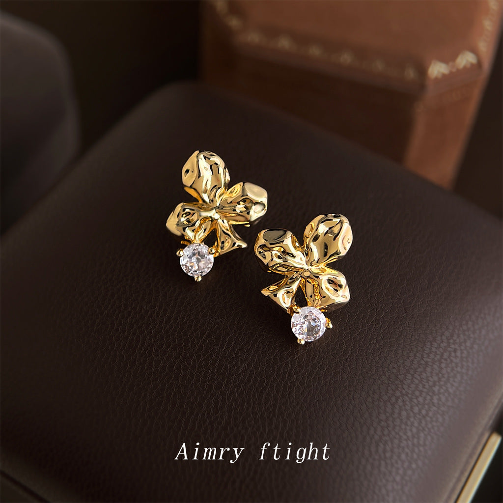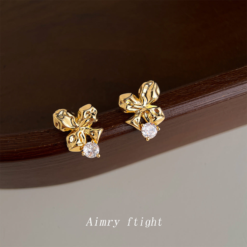 A廠【7137】原創梅花微鑲鋯石925銀針鍍14K時尚通勤簡約個性新款耳環耳環 25.12-1