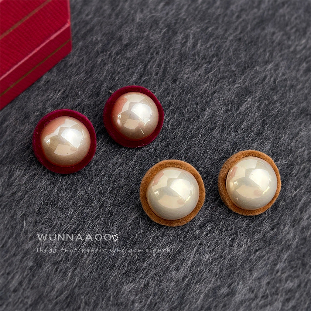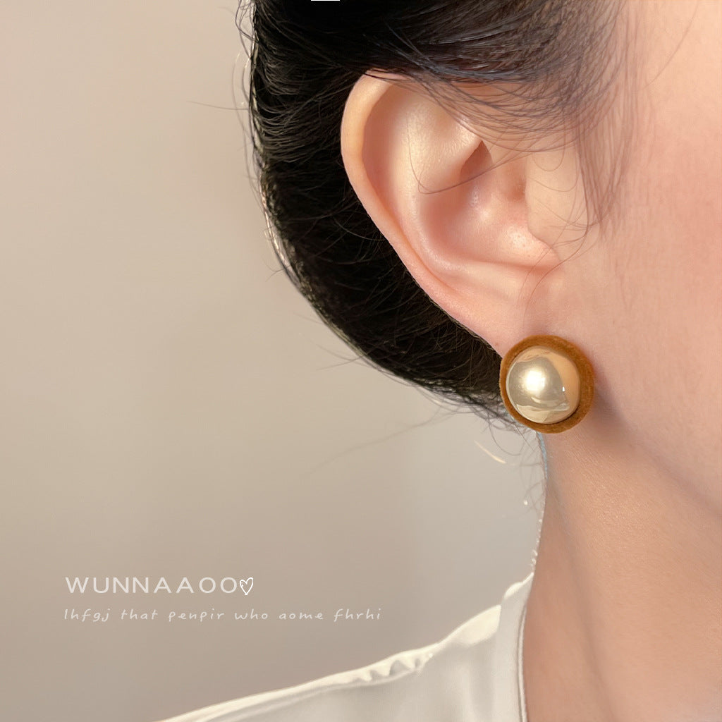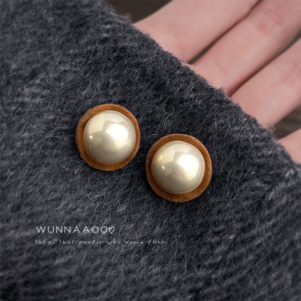 A廠【7139】秋冬爆款植絨高級感圓形幾何珍珠文藝復古新款耳飾港風耳環飾品女 25.11-4