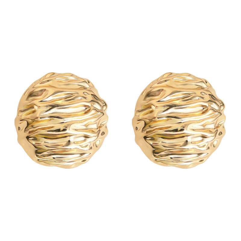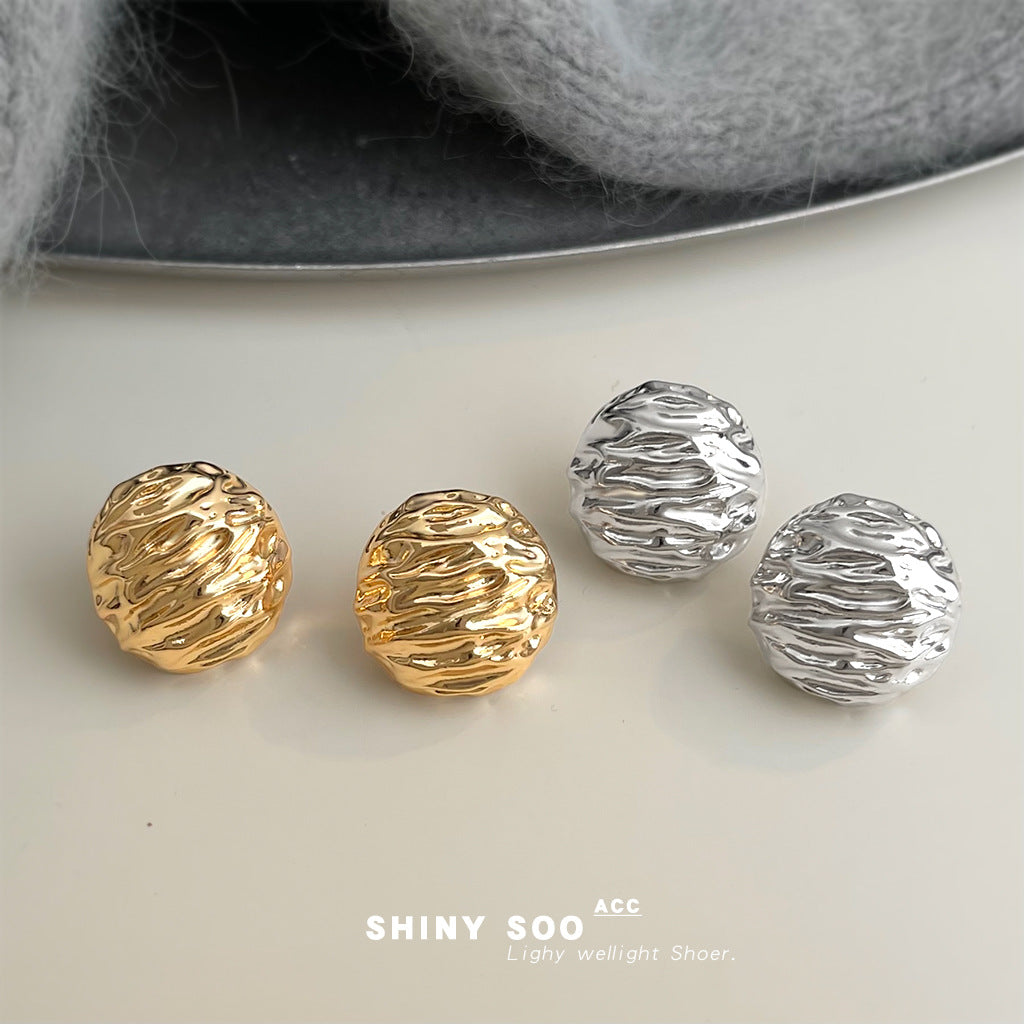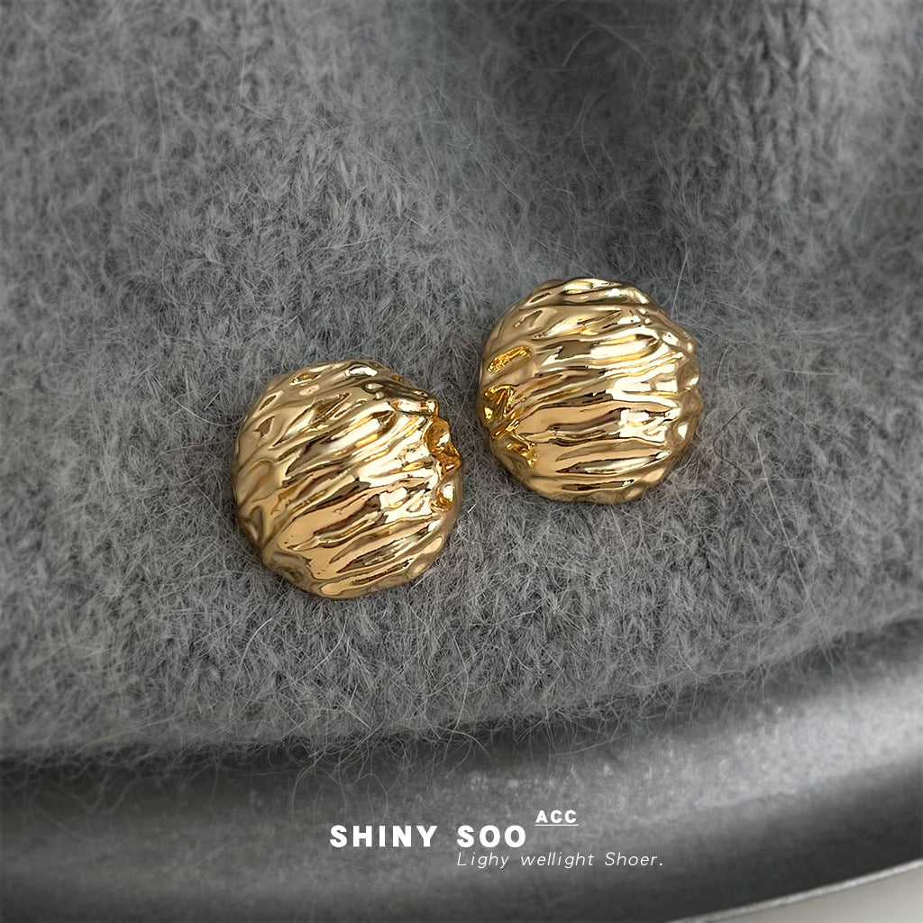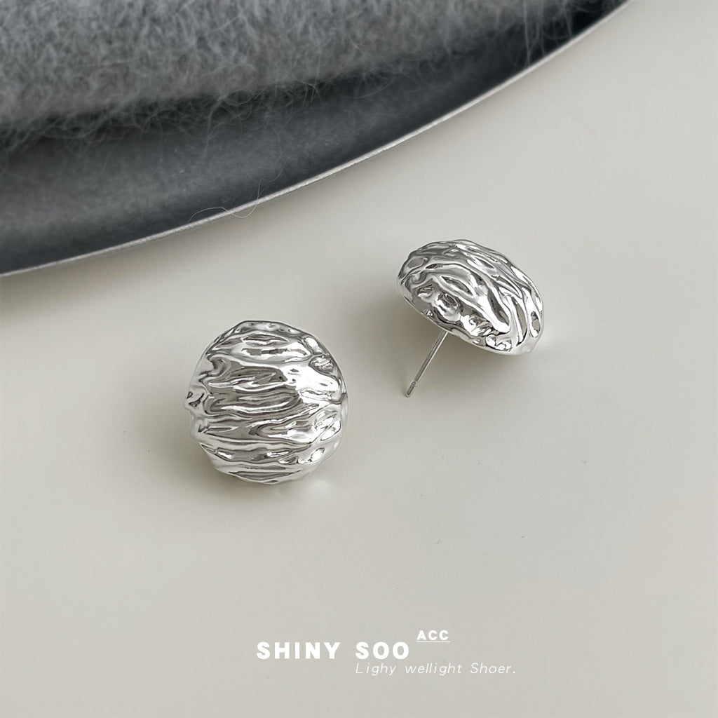 A廠【7141】小眾設計感核桃紋路時尚高級感銀針圓形幾何重工感耳飾耳環女 25.11-4