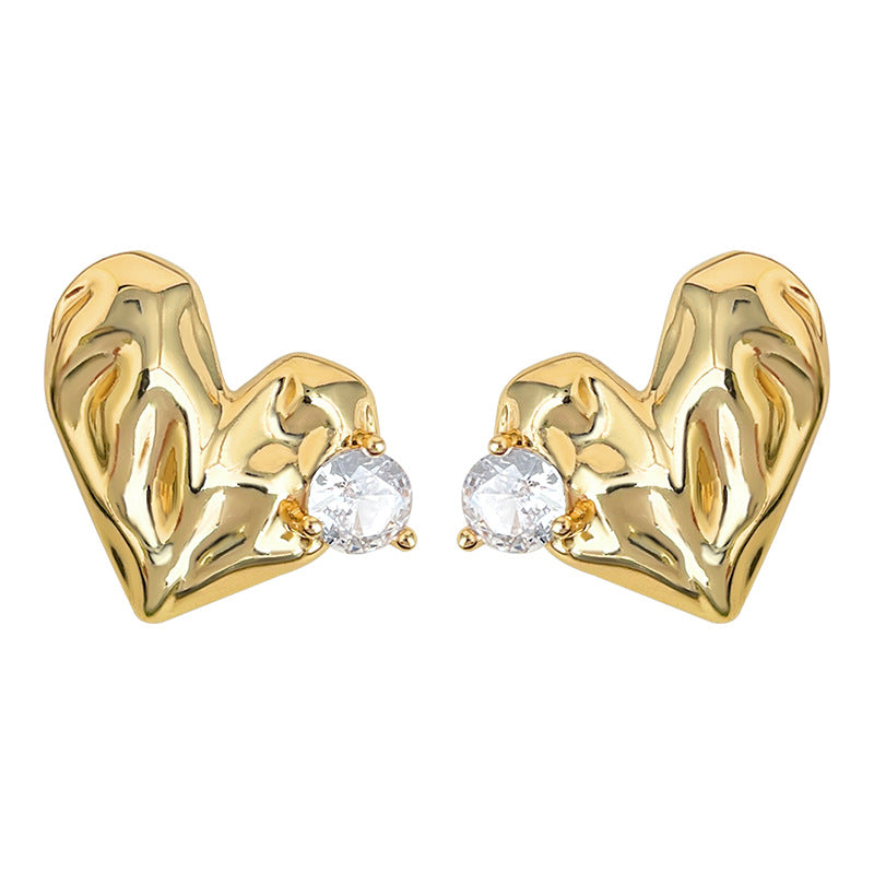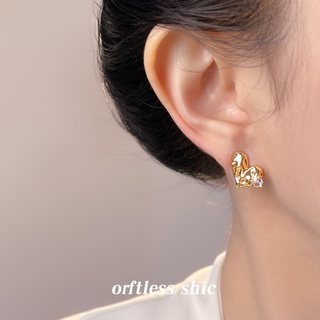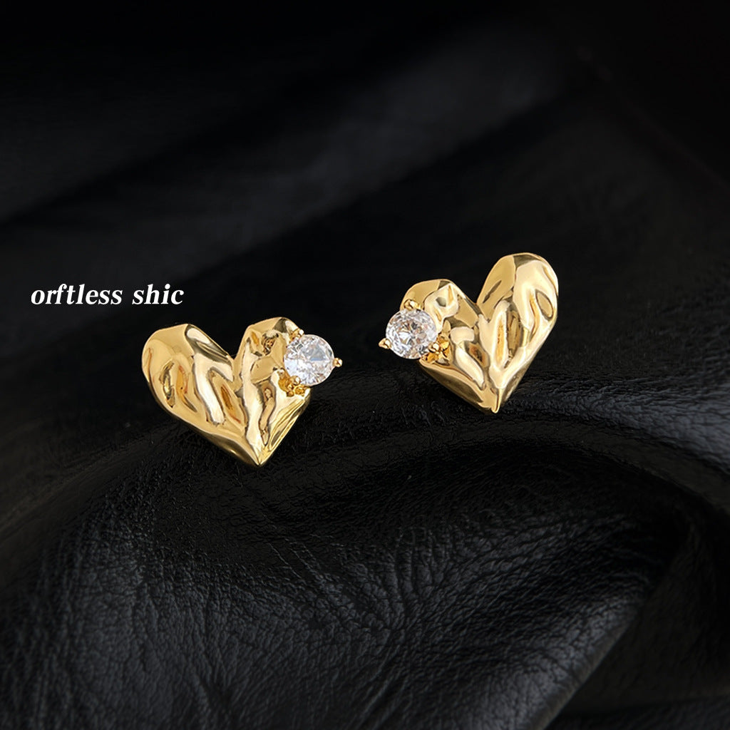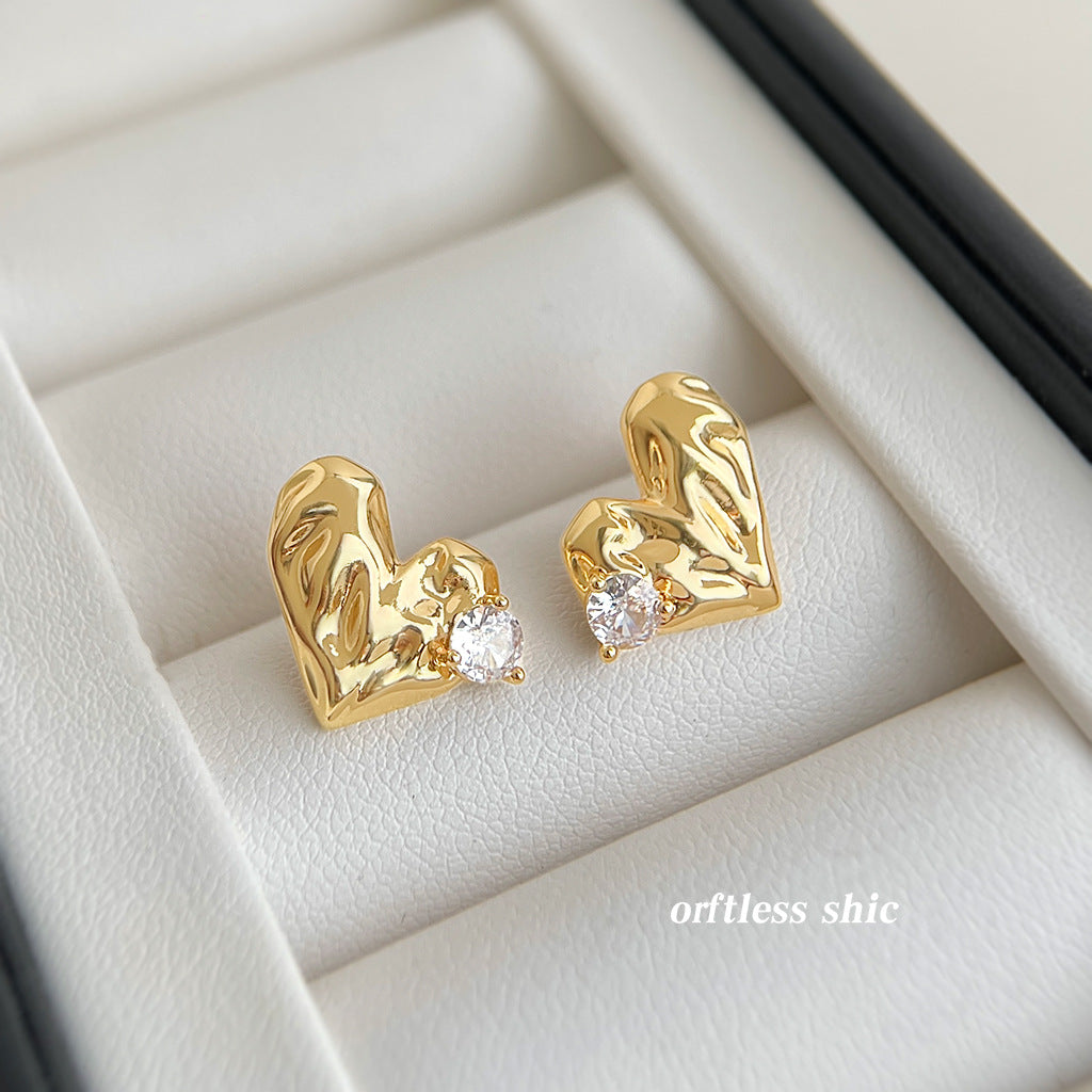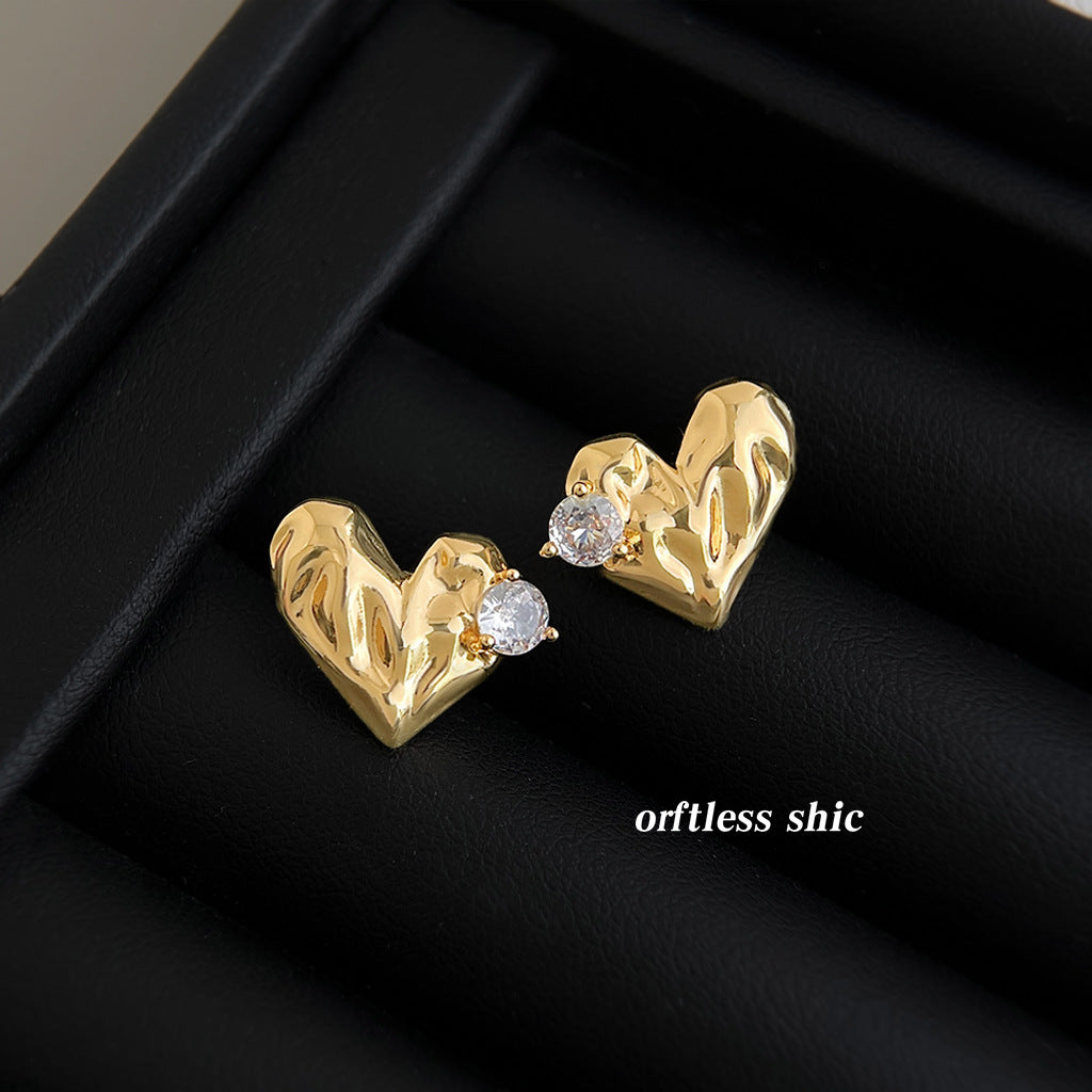 A廠【7152】原創肌理感微鑲鋯石925銀針時尚高級感輕奢風愛心耳飾耳環女 25.11-4